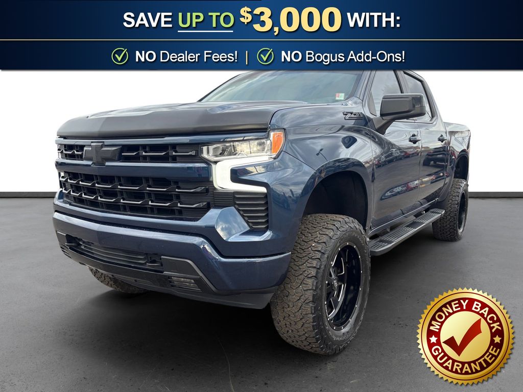 2022 Chevrolet Silverado 1500 RST Northsky Blue Metallic RST 4WD 10-Speed Automatic EcoTec3 5.3L V8 10-Speed Automatic, 4WD, Black Cloth, 10-Way Power Driver Seat w/Lumbar, 12.3" Multicolor Reconfigurable Digital Display, 120-Volt Bed Mounted Power Outlet, 120-Volt Instrument Panel Power Outlet, 2 USB Data Ports, 220 Amp Alternator, 3.23 Rear Axle Ratio, 4-Wheel Disc Brakes, 40/20/40 Front Split-Bench Seat, 6 Speakers, 6-Speaker Audio System, ABS brakes, Air Conditioning, All-Star Edition, Alloy wheels, AM/FM radio: SiriusXM with 360L, Apple CarPlay/Android Auto, Auto High-beam Headlights, Auto-Locking Rear Differential, Automatic Emergency Braking, Automatic temperature control, Bluetooth® For Phone, Brake assist, Bumpers: body-color, Chevrolet Connected Access Capable, Cloth Seat Trim, Color-Keyed Carpeting Floor Covering, Compass, Convenience Package, Deep-Tinted Glass, Delay-off headlights, Driver door bin, Driver vanity mirror, Dual Exhaust w/Polished Outlets, Dual front impact airbags, Dual front side impact airbags, Dual Rear USB Ports (Charge Only), Dual-Zone Automatic Climate Control, Electric Rear-Window Defogger, Electrical Steering Column Lock, Electronic Cruise Control, Electronic Stability Control, Electronic Transmission Range Selector Shifter, EZ Lift Power Lock & Release Tailgate, Floor Mounted Center Console, Following Distance Indicator, Forward Collision Alert, Front anti-roll bar, Front Bucket Seats, Front Center Armrest w/Storage, Front dual zone A/C, Front fog lights, Front Frame-Mounted Black Recovery Hooks, Front LED Fog Lamps, Front Pedestrian Braking, Front reading lights, Front Rubberized Vinyl Floor Mats, Front wheel independent suspension, Fully automatic headlights, HD Rear Vision Camera, Heated door mirrors, Heated Driver & Front Outboard Passenger Seats, Heated front seats, Heated Power-Adjustable Outside Mirrors, Heated Steering Wheel, Heated steering wheel, Heavy-Duty Air Filter, High Gloss Black Mirror Caps, Hill Descent Control, Hitch Guidance, Illuminated entry, Inside Rear-View Mirror w/Tilt, IntelliBeam Automatic High Beam On/Off, Keyless Open & Start, Lane Keep Assist w/Lane Departure Warning, Leather Wrapped Steering Wheel, LED Cargo Area Lighting, Low tire pressure warning, Manual Tilt/Telescoping Steering Column, Not Equipped w/Dynamic Fuel Management, Not Equipped w/Heated Steering Wheel (DISC), Occupant sensing airbag, Off-Road Suspension, OnStar & Chevrolet Connected Services Capable, Outside temperature display, Overhead airbag, Overhead console, Panic alarm, Passenger door bin, Passenger vanity mirror, Power door mirrors, Power driver seat, Power Front Windows w/Driver Express Up/Down, Power Front Windows w/Passenger Express Down, Power Rear Windows w/Express Down, Power steering, Power windows, Preferred Equipment Group 1SP, Premium audio system: Chevrolet Infotainment 3 Premium, Radio data system, Radio: Chevrolet Infotainment 3 Premium System, Rear 60/40 Folding Bench Seat (Folds Up), Rear reading lights, Rear Rubberized-Vinyl Floor Mats, Rear step bumper, Rear window defroster, Remote keyless entry, Remote Vehicle Starter System, Security system, SiriusXM w/360L, Speed control, Speed-sensing steering, Split folding rear seat, Standard Suspension Package, Standard Tailgate, Steering Wheel Audio Controls, Steering wheel mounted audio controls, Tachometer, Telescoping steering wheel, Theft Deterrent System (Unauthorized Entry), Tilt steering wheel, Traction control, Trailering Package, Trip computer, Variably intermittent wipers, Voltmeter, Wheels: 18" x 8.5" Bright Silver Painted Aluminum, Wi-Fi Hot Spot Capable, Wireless Charging, Wireless Phone Projection, Z71 Off-Road Package, 10-Speed Automatic, 4WD, Black Cloth.