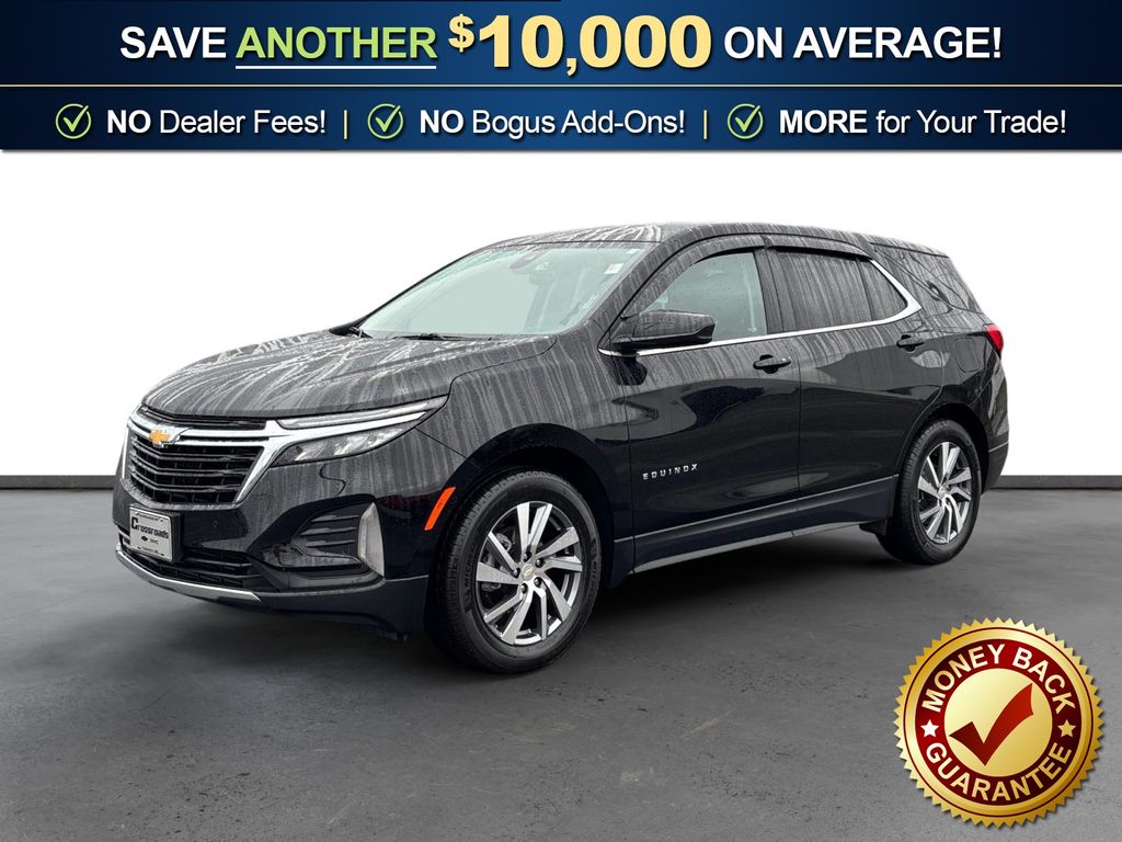 2023 Chevrolet Equinox LT Mosaic Black Metallic LT FWD 6-Speed Automatic Electronic with Overdrive 1.5L DOHC 17" Aluminum Wheels, 18" Aluminum Wheels, 2 Rear USB Charging-Only Ports, 2 USB Ports & Auxiliary Input Jack, 2-Way Power Driver Lumbar Control Seat Adjuster, 3.50 Final Drive Axle Ratio, 4-Wheel Disc Brakes, 6 Speakers, 6-Speaker Audio System Feature, ABS brakes, Air Conditioning, All-Weather Floor Mats, Alloy wheels, AM/FM radio: SiriusXM, Auto High-beam Headlights, Bluetooth® For Phone, Brake assist, Bumpers: body-color, Cargo Mat, Collapsible Cargo Area Organizer (LPO), Compass, Confidence & Convenience Package, Delay-off headlights, Driver 8-Way Power Seat Adjuster, Driver Confidence II Package, Driver Convenience Package, Driver door bin, Driver vanity mirror, Dual front impact airbags, Dual front side impact airbags, Dual-Zone Automatic Climate Control, Electronic Stability Control, Emergency communication system: OnStar and Chevrolet connected services capable, Four wheel independent suspension, Front & Rear Park Assist, Front anti-roll bar, Front Bucket Seats, Front Center Armrest, Front Passenger 4-Way Manual Seat Adjuster, Front reading lights, Fully automatic headlights, Heated door mirrors, Heated Driver & Front Passenger Seats, Illuminated entry, Interior Protection Package (LPO), Lane Change Alert w/Side Blind Zone Alert, Low tire pressure warning, Occupant sensing airbag, Outside temperature display, Overhead airbag, Overhead console, Panic alarm, Passenger door bin, Passenger vanity mirror, Power door mirrors, Power driver seat, Power steering, Power windows, Preferred Equipment Group 1LT, Premium audio system: Chevrolet Infotainment 3, Premium Cloth Seat Trim, Radio data system, Radio: Chevrolet Infotainment 3 System w/AM/FM, Rear anti-roll bar, Rear Cross Traffic Alert, Rear Power Liftgate, Rear reading lights, Rear seat center armrest, Rear window defroster, Rear window wiper, Remote keyless entry, Remote Start, Security system, Side Blind Zone & Rear Cross Traffic, SiriusXM Radio, Speed control, Speed-sensing steering, Split folding rear seat, Spoiler, Steering wheel mounted audio controls, Tachometer, Telescoping steering wheel, Tilt steering wheel, Traction control, Trip computer, Variably intermittent wipers, Wireless Apple CarPlay/Wireless Android Auto, Wrapped Steering Wheel.