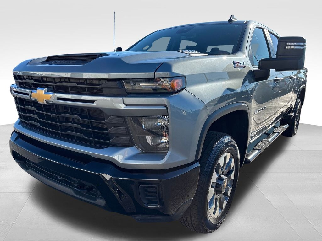 2024 Chevrolet Silverado 2500HD Custom Certified. Sterling Gray Metallic Custom 4WD 10-Speed Automatic 6.6L V8 GM Certified, 10-Speed Automatic, 4WD, Black Cloth, 10-Way Power Driver Seat Adjuster w/Lumbar, 120-Volt Bed Mounted Power Outlet, 120-Volt Interior Power Outlet, 170 Amp Alternator, 2-Speed Electronic Shift Transfer Case, 3.5" Diagonal Monochromatic Display DIC, 3.73 Rear Axle Ratio, 4-Wheel Disc Brakes, 6 Speakers, 6-Speaker Audio System, 720 Cold-Cranking Amps Heavy-Duty Battery, ABS brakes, Air Conditioning, Alloy wheels, AM/FM radio: SiriusXM with 360L, Apple CarPlay/Android Auto, Auto High-beam Headlights, Auto-Dimming Inside Rear-View Mirror, Black Chevytec Spray-On Bedliner, Black Mirror Caps, Bluetooth® For Phone, Brake assist, Chevrolet Connected Access Capable, Cloth Seat Trim, Color-Keyed Carpeting Floor Covering, Compass, Custom Convenience Package, Custom Value Package, CX Safety Package, Deep-Tinted Glass, Delay-off headlights, Driver door bin, Dual front impact airbags, Dual front side impact airbags, Dual Rear USB Ports (Charge Only), Durabed Pickup Bed, Electric Rear-Window Defogger, Electronic Cruise Control w/Set & Resume Speed, Electronic Stability Control, EZ Lift Power Lock & Release Tailgate, Front 40/20/40 Split-Bench Seats w/Lockable Storage, Front anti-roll bar, Front Center Armrest w/Storage, Front reading lights, Front Rubberized Vinyl Floor Mats, Front wheel independent suspension, Fully automatic headlights, Gooseneck/5th Wheel Package (DISC), Gooseneck/5th Wheel Prep Package, HD Rear Vision Camera, Heated & Auto-Dimming Vertical Trailering Mirrors, Heated door mirrors, Heated Vertical Trailering Mirrors, Hill Descent Control, Illuminated entry, Integrated Trailer Brake Controller, Lane Change Alert w/Side Blind Zone Alert, LED Cargo Area Lighting, Locking Tailgate, Low tire pressure warning, Manual Tailgate Function w/No EZ Lift, Manual Tilt & Telescoping Steering Column, Manual Tilt-Wheel Steering Column, Not Equipped w/Rear USB Ports, Occupant sensing airbag, Off-Road Suspension, OnStar & Chevrolet Connected Services Capable, Outside temperature display, Overhead airbag, Overhead console, Panic alarm, Passenger door bin, Passenger vanity mirror, Power Door Locks, Power door mirrors, Power Front Windows w/Driver Express Up/Down, Power Front Windows w/Passenger Express Down, Power Rear Windows w/Express Down, Power steering, Power windows, Preferred Equipment Group 1CX, Premium audio system: Chevrolet Infotainment 3, Push Button Start, Radio: Chevrolet Infotainment 3 System, Rear 60/40 Folding Bench Seat (Folds Up), Rear Cross Traffic Alert, Rear Park Assist, Rear reading lights, Rear Rubberized Vinyl Floor Mats, Rear step bumper, Remote Keyless Entry, Remote keyless entry, Remote Vehicle Starter System, SiriusXM w/360L, Speed control, Split folding rear seat, Standard Tailgate, Suspension Package, Tachometer, Tilt steering wheel, Traction control, Trip computer, Turn signal indicator mirrors, Unauthorized Entry Theft-Deterrent System, Variably intermittent wipers, Voltmeter, Wheels: 20" 10-Spoke Machined Aluminum, Wi-Fi Hotspot Capable, Wireless Phone Projection, Z71 Off-Road Package, 10-Speed Automatic, 4WD, Black Cloth.