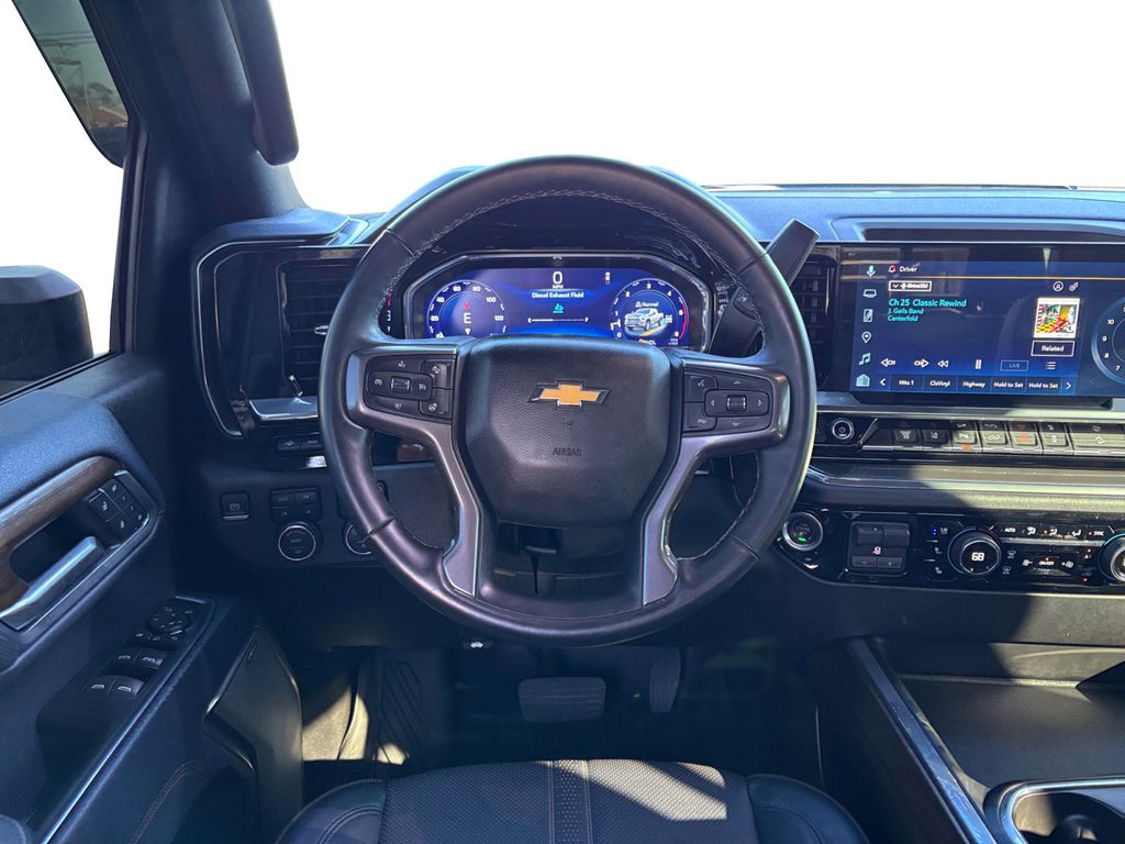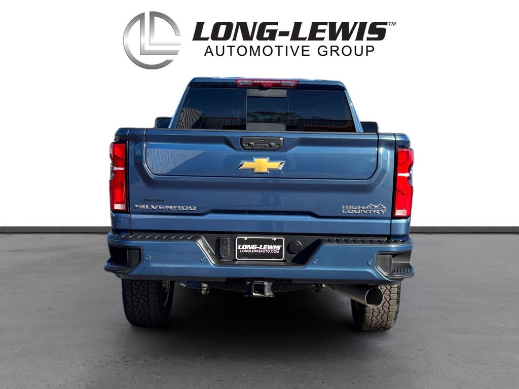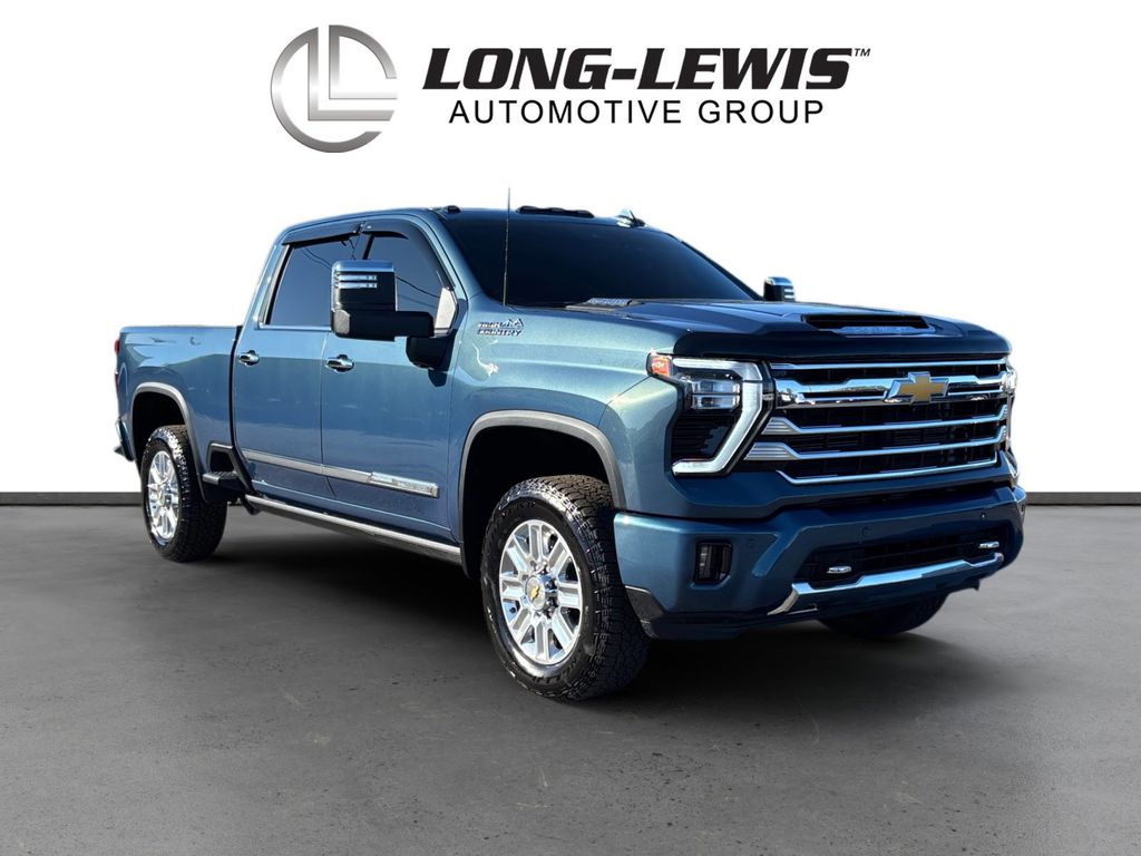 2025 Chevrolet Silverado 2500HD High Country Lakeshore Blue Metallic High Country 4WD 10-Speed Automatic Duramax 6.6L V8 Turbodiesel 10-Speed Automatic, 4WD, Jet Black/Nightshift Blue Leather, 10-Way Power Driver Seat Adjuster with Lumbar, 10-Way Power Passenger Seat Adjuster with Lumbar, 120-Volt Bed Mounted Power Outlet, 120-Volt Interior Power Outlet, 15" Diagonal Multicolor Head-Up Display, 170 Amp Alternator, 1st and 2nd Row All-Weather Floor Liners, 4-Wheel Disc Brakes, 6" Rectangular Chromed Tubular Assist Steps, 7 Speakers, 720 Cold-Cranking Amps Heavy-Duty Battery, ABS brakes, Air Conditioning, Alloy wheels, AM/FM radio: SiriusXM with 360L, Apple CarPlay/Android Auto, Auto High-beam Headlights, Auto-dimming door mirrors, Auto-Dimming Inside Rear-View Mirror, Auto-dimming Rear-View mirror, Automatic temperature control, Bed View Camera with Two Trailer Camera Provisions, Black Chevytec Spray-on Bedliner, Bluetooth® For Phone, Bodyside moldings, BOSE Premium 7-Speaker Sound System, Brake assist, Bumpers: body-color, Chevrolet Connected Access Capable, Chrome Door Handles, Chrome Mirror Caps, Color-Keyed Carpeting Floor Covering, Compass, Deep-Tinted Glass, Delay-off headlights, Driver door bin, Driver Memory, Driver vanity mirror, Dual 220-Amp Primary/170-Amp Auxiliary Alternators, Dual front impact airbags, Dual front side impact airbags, Durabed Pickup Bed, Electric Rear-Window Defogger, Electronic Stability Control, Emergency communication system: OnStar, Engine Block Heater, Exhaust Brake, EZ Lift Power Lock and Release Tailgate, Floor-Mounted Center Console, Front anti-roll bar, Front Bucket Seats, Front Carpeted Floor Mats, Front Center Armrest, Front Chrome Recovery Hooks, Front dual zone A/C, Front fog lights, Front LED Fog Lamps, Front Rain-Sensing Wipers, Front reading lights, Front wheel independent suspension, Fully automatic headlights, Garage door transmitter, Genuine wood console insert, Genuine wood dashboard insert, Genuine wood door panel insert, Heated 2nd Row Outboard Seats, Heated door mirrors, Heated Driver and Front Outboard Passenger Seating, Heated front seats, Heated rear seats, Heated Steering Wheel, Heated steering wheel, Hill Descent Control, Hitch Guidance with Hitch View, Illuminated entry, in-Vehicle Trailering App System, Keyless Open and Start, LED Cargo Area Lighting, LED Smoked Amber Roof Marker Lamps, Low tire pressure warning, Manual Tilt and Telescoping Steering Column, Memory seat, Multi-Flex Tailgate, Occupant sensing airbag, Off-Road Suspension, OnStar Services Capable, Outside temperature display, Overhead airbag, Overhead console, Panic alarm, Passenger door bin, Passenger vanity mirror, Perforated Leather Seat Trim, Polished Exhaust Tip, Power Door Locks, Power door mirrors, Power driver seat, Power Front Windows with Driver Express Up/Down, Power Front Windows with Passenger Express Up/Down, Power passenger seat, Power Rear Windows with Express Down, Power Sliding Rear Window with Defogger, Power steering, Power Sunroof, Power Up/Down Tailgate Function with Power Lock and Release, Power windows, Power-Retractable Assist Steps, Preferred Equipment Group 3LZ, Premium audio system: Chevrolet Infotainment 3 Premium, Push Button Start, Radio: Chevrolet Infotainment 3 Premium System, Rain sensing wipers, Rear Camera Mirror, Rear Carpeted Floor Mats, Rear Cross Traffic Alert, Rear reading lights, Rear seat center armrest, Rear step bumper, Rear Wheelhouse Liners, Rear window defroster, Remote keyless entry, Remote Vehicle Starter System, Security system, SiriusXM with 360L Trial Subscription, Speed control, Speed-sensing steering, Split folding rear seat, Standard Tailgate, Steering Wheel Audio Controls, Steering wheel mounted audio controls, Suspension Package, Tachometer, Technology Package, Telescoping steering wheel, Tilt steering wheel, Traction control, Trailer Camera Provisions, Trip computer, Turn signal indicator mirrors, Ultrasoni
