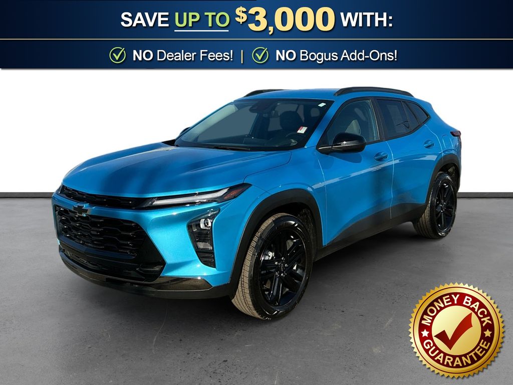 2025 Chevrolet Trax ACTIV Marina Blue Metallic ACTIV FWD 6-Speed Automatic 1.2L I3 DI Turbocharged DOHC 12V LEV3-ULEV70 137hp 2-Way Adjustable Front Head Restraints, 2-Way Power Driver Lumbar Seat Adjuster, 3.50 Final Drive Axle Ratio, 4-Way Manual Front Passenger Seat Adjuster, 4-Wheel Disc Brakes, 6 Speakers, 6-Speaker Audio System Feature, 8-Way Power Driver Seat Adjuster, ABS brakes, Adaptive Cruise Control, Air Conditioning, Alloy wheels, AM/FM radio: SiriusXM, Auto High-beam Headlights, Automatic temperature control, Brake assist, Bumpers: body-color, Compass, Delay-off headlights, Driver Confidence Package, Driver door bin, Driver vanity mirror, Dual front impact airbags, Dual front side impact airbags, Electronic Stability Control, Emergency communication system: OnStar One Essentials, Evotex Seat Trim, Exterior Parking Camera Rear, Front anti-roll bar, Front Bucket Seats, Front Center Armrest, Front reading lights, Front wheel independent suspension, Fully automatic headlights, Heated door mirrors, Heated Driver and Front Passenger Seats, Heated front seats, Heated steering wheel, Illuminated entry, Lane Change Alert with Side Blind Zone Alert, Leather steering wheel, Low tire pressure warning, Occupant sensing airbag, Outside temperature display, Overhead airbag, Overhead console, Panic alarm, Passenger door bin, Passenger vanity mirror, Power door mirrors, Power driver seat, Power steering, Power windows, Preferred Equipment Group 1SA, Premium audio system: Chevrolet Infotainment 3, Radio data system, Radio: AM/FM Stereo Audio System, Rear Cross-Traffic Alert, Rear Park Assist, Rear window defroster, Rear window wiper, Remote keyless entry, Security system, SiriusXM Trial Subscription, Speed control, Split folding rear seat, Spoiler, Steering wheel mounted audio controls, Tachometer, Telescoping steering wheel, Tilt steering wheel, Traction control, Trip computer, Variably intermittent wipers, Wheels: 18" Black-Painted Aluminum.