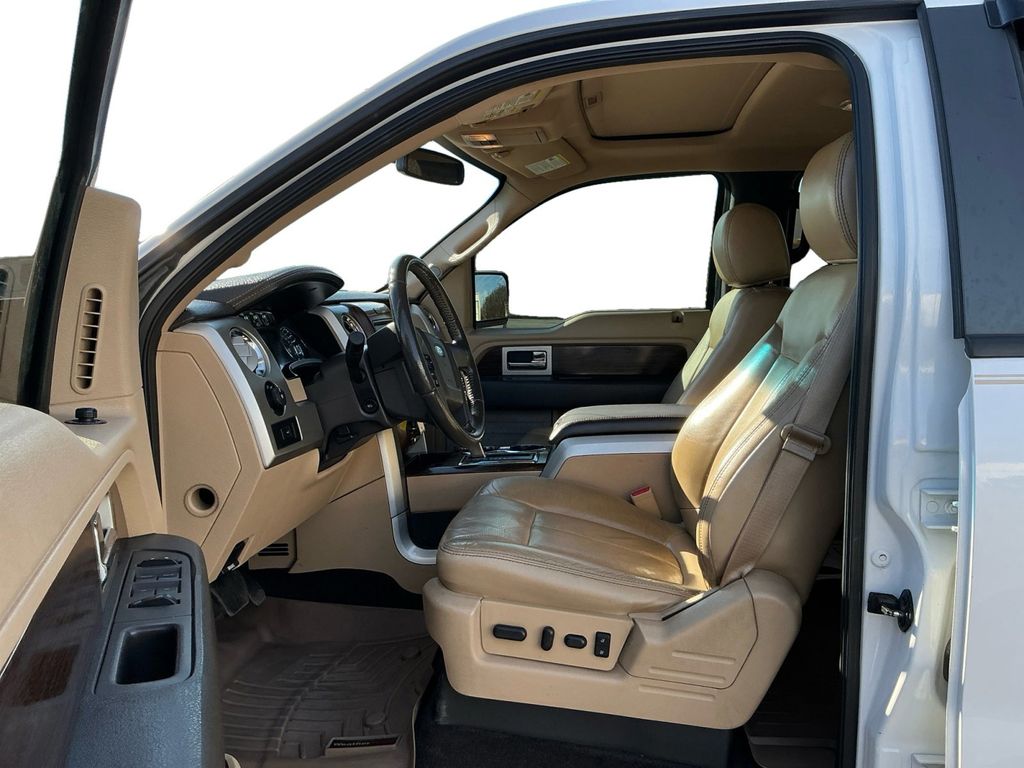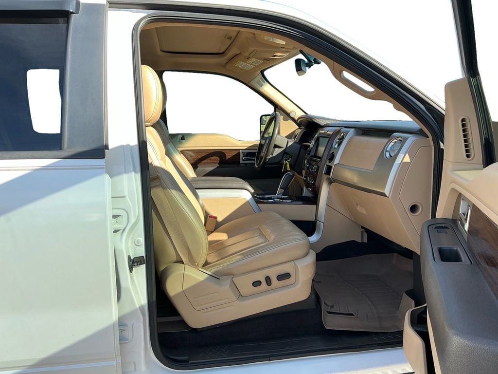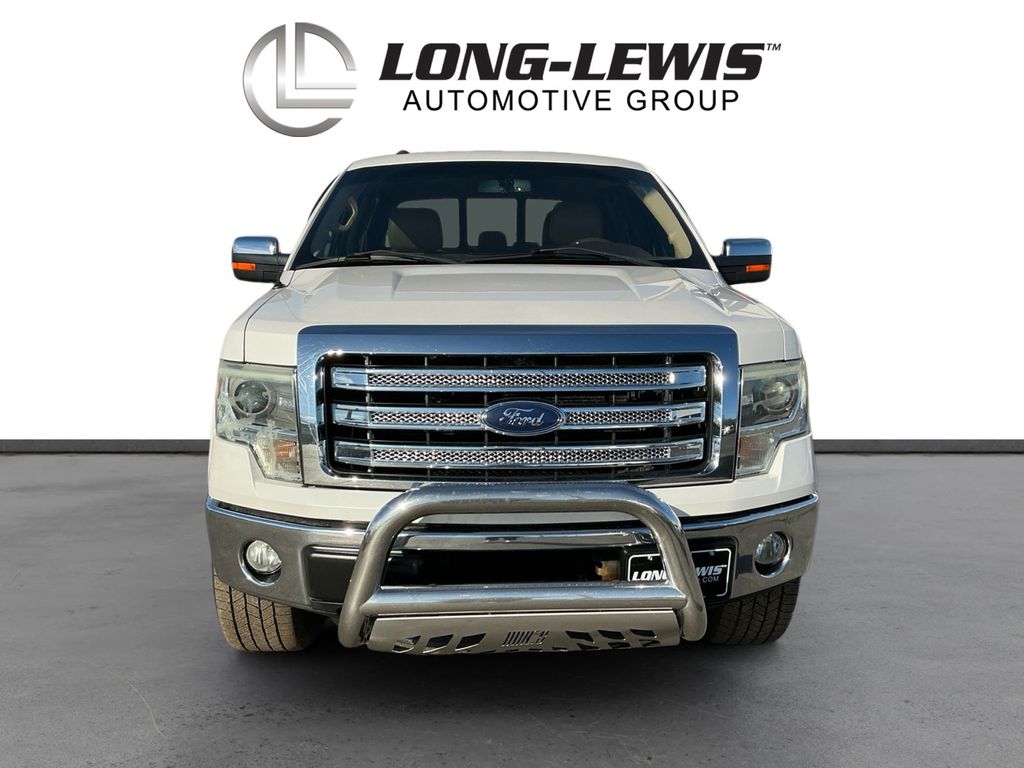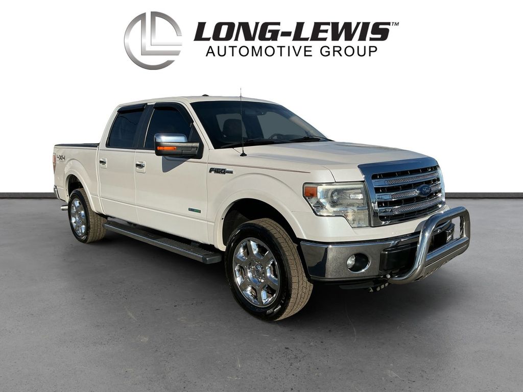 2013 Ford F-150 Lariat White Platinum Clearcoat Metallic Lariat 4WD 6-Speed Automatic Electronic 3.5L V6 4WD, 18" Bright Aluminum Wheels, 18" Chrome-Clad Aluminum Wheels, 20" Chrome-Clad Aluminum Wheels, 4 Speakers, 4-Wheel Disc Brakes, 4x4 Off-Road Decal, 6" Chrome Angular Step Bars, ABS brakes, Adjustable pedals, Air Conditioning, Alloy wheels, AM/FM radio: SiriusXM, Auto-dimming door mirrors, Auto-dimming Rear-View mirror, Automatic temperature control, Body-Color Door Handles w/Chrome Strap, Bumpers: chrome, CD player, Chrome Exhaust Tip, Compass, Delay-off headlights, Driver door bin, Driver vanity mirror, Dual front impact airbags, Dual front side impact airbags, Electronic Stability Control, Equipment Group 502A Luxury, Front & Rear Off-Road Tuned Shock Absorbers, Front anti-roll bar, Front Center Armrest w/Storage, Front dual zone A/C, Front fog lights, Front License Plate Bracket, Front reading lights, Front wheel independent suspension, Fully automatic headlights, GVWR: 7,350 lbs Payload Package, Heated door mirrors, Heated front seats, Heated Power Exterior Mirrors w/Memory, Hill Descent Control, Illuminated entry, Lariat Chrome Package, Leather steering wheel, Leather-Trimmed 40/20/40 Front Seat, Low tire pressure warning, Memory seat, Occupant sensing airbag, Off-Road Package, Outside temperature display, Overhead airbag, Overhead console, Panic alarm, Passenger door bin, Passenger vanity mirror, Pedal memory, Power door mirrors, Power driver seat, Power passenger seat, Power steering, Power windows, Radio data system, Radio: AM/FM Stereo/Clock/Single-CD, Rear reading lights, Rear seat center armrest, Rear step bumper, Rear window defroster, Remote keyless entry, Security system, SiriusXM Satellite Radio, Speed control, Speed-sensing steering, Split folding rear seat, Spray-In Bed Liner (Pre-Installed), Steering wheel mounted audio controls, SYNC w/MyFord Touch, Tachometer, Tailgate Step, Tilt steering wheel, Traction control, Trip computer, Turn signal indicator mirrors, Variably intermittent wipers, 4WD.