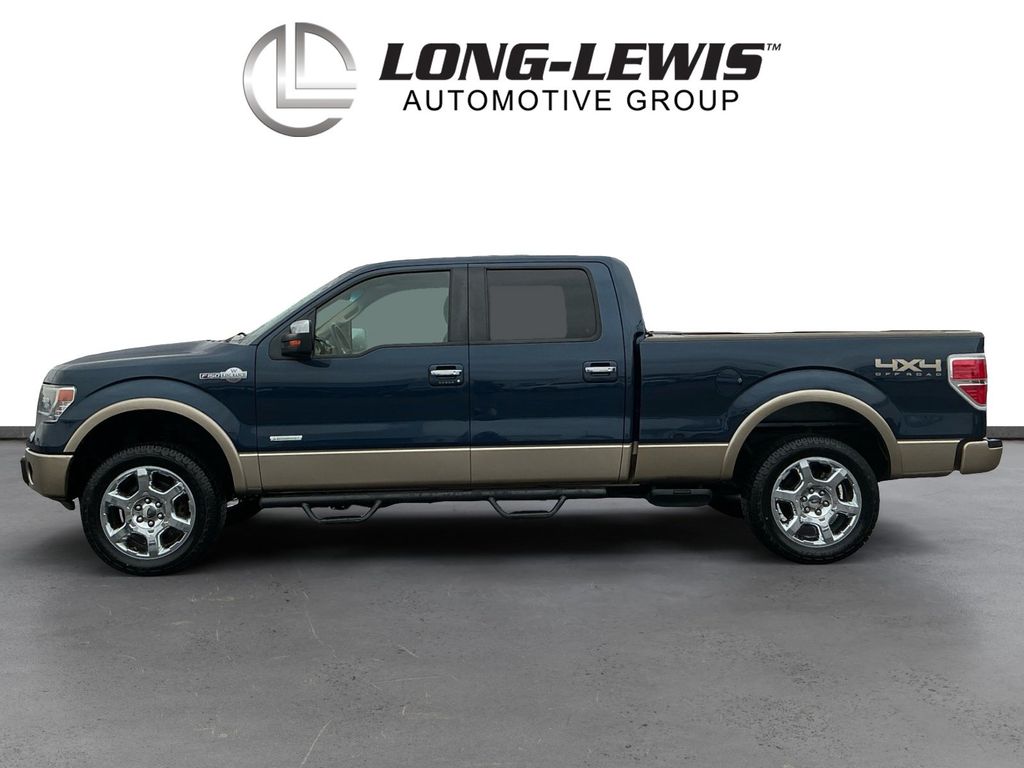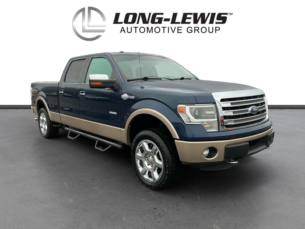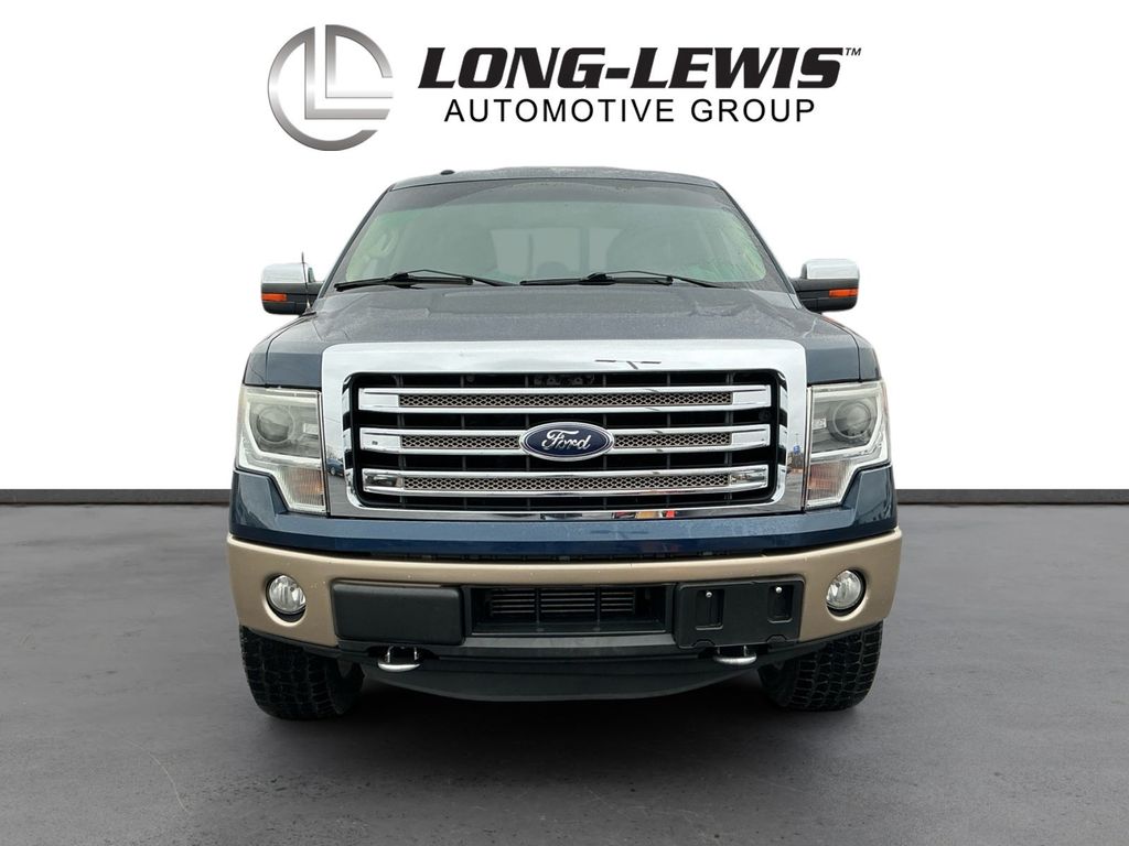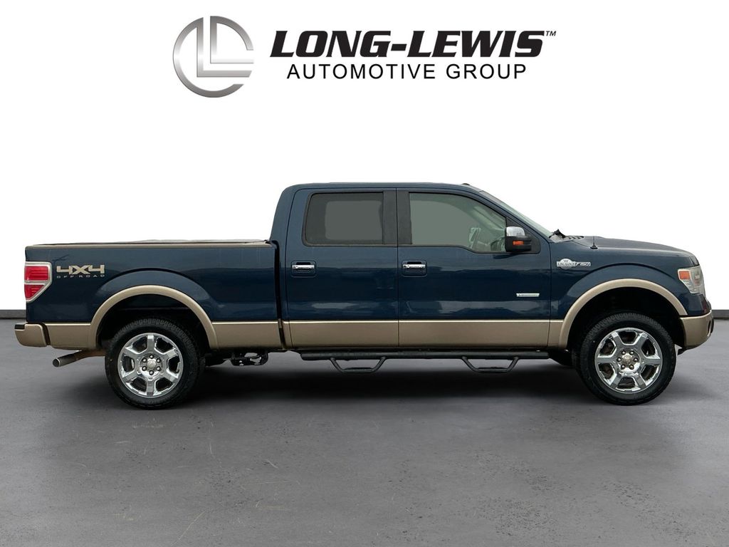 2014 Ford F-150 King Ranch Blue King Ranch 4WD 6-Speed Automatic Electronic 3.5L V6 4WD, 10 Speakers, 18" 7-Spoke Aluminum w/King Ranch Logo Wheels, 20" Chrome-Clad Aluminum Wheels, 4-Wheel Disc Brakes, 4x4 Off-Road Decal, 6" Chrome Angular Step Bars, ABS brakes, Adjustable pedals, Air Conditioning, All-Weather Rubber Floor Mats, Alloy wheels, AM/FM radio: SiriusXM, Auto tilt-away steering wheel, Auto-dimming door mirrors, Auto-dimming Rear-View mirror, Automatic temperature control, Body-Color Door Handles w/Chrome Strap, CD player, Chrome Grille Surround, Compass, Delay-off headlights, Driver door bin, Driver vanity mirror, Dual front impact airbags, Dual front side impact airbags, DVD-Audio, Electronic Stability Control, Equipment Group 600A, Exterior Parking Camera Rear, Front & Rear Off-Road Tuned Shock Absorbers, Front anti-roll bar, Front Bucket Seats, Front Center Armrest, Front dual zone A/C, Front fog lights, Front License Plate Bracket, Front reading lights, Front wheel independent suspension, Fully automatic headlights, Garage door transmitter, GVWR: 7,350 lbs Payload Package, Heated door mirrors, Heated front seats, Heated rear seats, High-Intensity Discharge Headlamps, Hill Descent Control, Illuminated entry, King Ranch Chaparral Leather Bucket Seats, King Ranch Chrome Package, King Ranch Luxury Package, Leather steering wheel, Low tire pressure warning, Memory seat, Navigation, Occupant sensing airbag, Off-Road Package, Outside temperature display, Overhead airbag, Overhead console, Overhead Console w/Single Storage Bin, Panic alarm, Passenger door bin, Passenger vanity mirror, Pedal memory, Power door mirrors, Power driver seat, Power Moonroof, Power passenger seat, Power steering, Power windows, PowerFold Heated Side Mirrors w/Chrome Skull Caps, Premium audio system: Sony, Radio data system, Radio: Sony Single-CD w/HD, Rear Parking Sensors, Rear reading lights, Rear seat center armrest, Rear step bumper, Rear window defroster, Remote keyless entry, Security system, SiriusXM Satellite Radio, Speed control, Speed-sensing steering, Split folding rear seat, Steering wheel memory, Steering wheel mounted audio controls, SYNC Voice Activated Communication & Entertainment, SYNC w/MyFord Touch & SYNC Services, Tachometer, Tailgate Step, Telescoping steering wheel, Tilt steering wheel, Traction control, Trailer Brake Controller, Trip computer, Turn signal indicator mirrors, Variably intermittent wipers, Ventilated front seats, 4WD.
