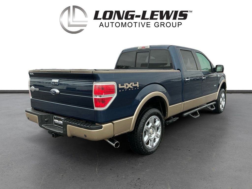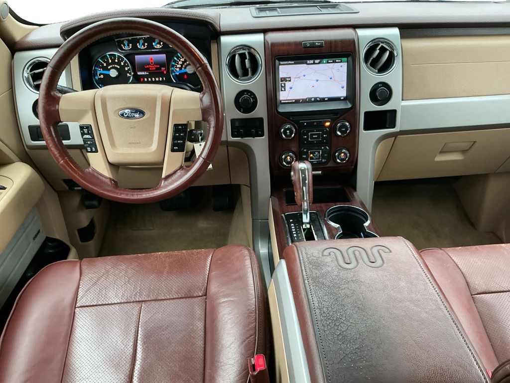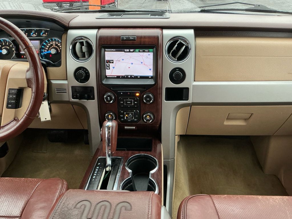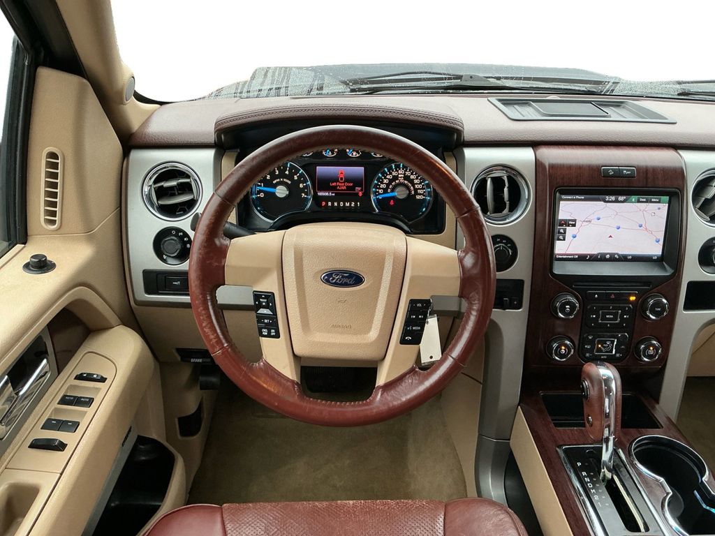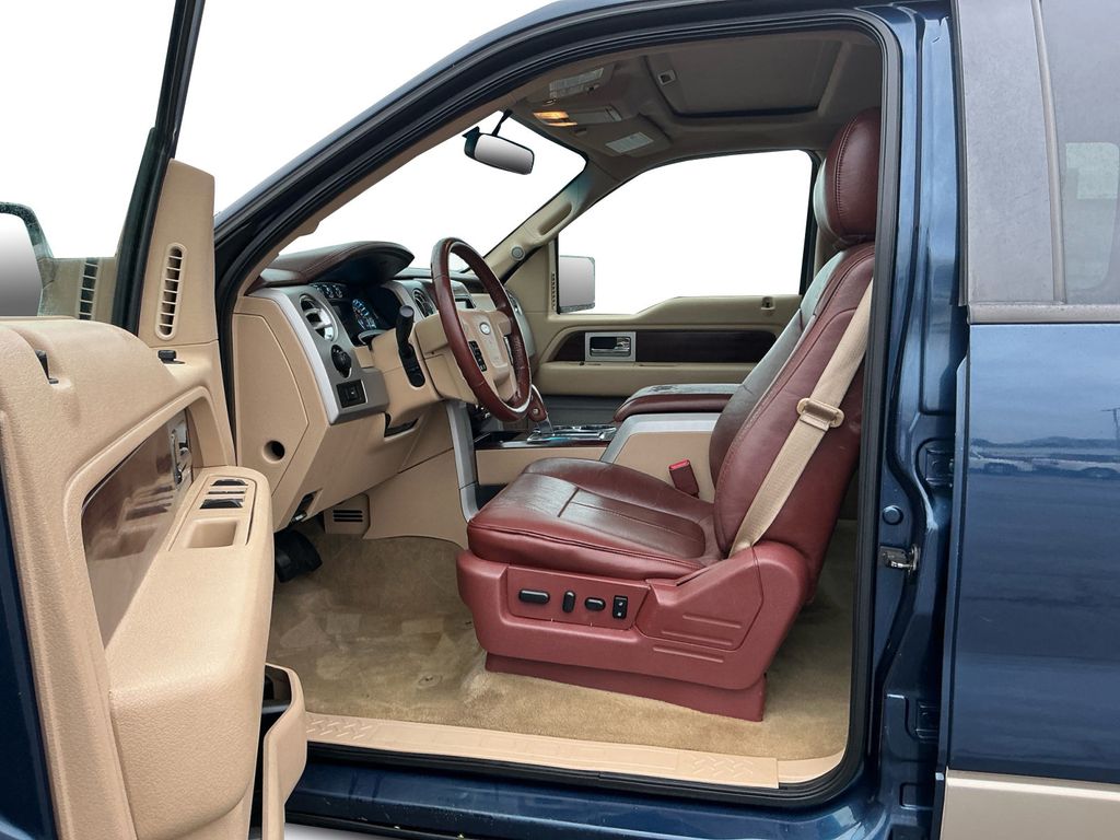2014 Ford F-150 King Ranch Blue King Ranch 4WD 6-Speed Automatic Electronic 3.5L V6 4WD, 10 Speakers, 18" 7-Spoke Aluminum w/King Ranch Logo Wheels, 20" Chrome-Clad Aluminum Wheels, 4-Wheel Disc Brakes, 4x4 Off-Road Decal, 6" Chrome Angular Step Bars, ABS brakes, Adjustable pedals, Air Conditioning, All-Weather Rubber Floor Mats, Alloy wheels, AM/FM radio: SiriusXM, Auto tilt-away steering wheel, Auto-dimming door mirrors, Auto-dimming Rear-View mirror, Automatic temperature control, Body-Color Door Handles w/Chrome Strap, CD player, Chrome Grille Surround, Compass, Delay-off headlights, Driver door bin, Driver vanity mirror, Dual front impact airbags, Dual front side impact airbags, DVD-Audio, Electronic Stability Control, Equipment Group 600A, Exterior Parking Camera Rear, Front & Rear Off-Road Tuned Shock Absorbers, Front anti-roll bar, Front Bucket Seats, Front Center Armrest, Front dual zone A/C, Front fog lights, Front License Plate Bracket, Front reading lights, Front wheel independent suspension, Fully automatic headlights, Garage door transmitter, GVWR: 7,350 lbs Payload Package, Heated door mirrors, Heated front seats, Heated rear seats, High-Intensity Discharge Headlamps, Hill Descent Control, Illuminated entry, King Ranch Chaparral Leather Bucket Seats, King Ranch Chrome Package, King Ranch Luxury Package, Leather steering wheel, Low tire pressure warning, Memory seat, Navigation, Occupant sensing airbag, Off-Road Package, Outside temperature display, Overhead airbag, Overhead console, Overhead Console w/Single Storage Bin, Panic alarm, Passenger door bin, Passenger vanity mirror, Pedal memory, Power door mirrors, Power driver seat, Power Moonroof, Power passenger seat, Power steering, Power windows, PowerFold Heated Side Mirrors w/Chrome Skull Caps, Premium audio system: Sony, Radio data system, Radio: Sony Single-CD w/HD, Rear Parking Sensors, Rear reading lights, Rear seat center armrest, Rear step bumper, Rear window defroster, Remote keyless entry, Security system, SiriusXM Satellite Radio, Speed control, Speed-sensing steering, Split folding rear seat, Steering wheel memory, Steering wheel mounted audio controls, SYNC Voice Activated Communication & Entertainment, SYNC w/MyFord Touch & SYNC Services, Tachometer, Tailgate Step, Telescoping steering wheel, Tilt steering wheel, Traction control, Trailer Brake Controller, Trip computer, Turn signal indicator mirrors, Variably intermittent wipers, Ventilated front seats, 4WD.