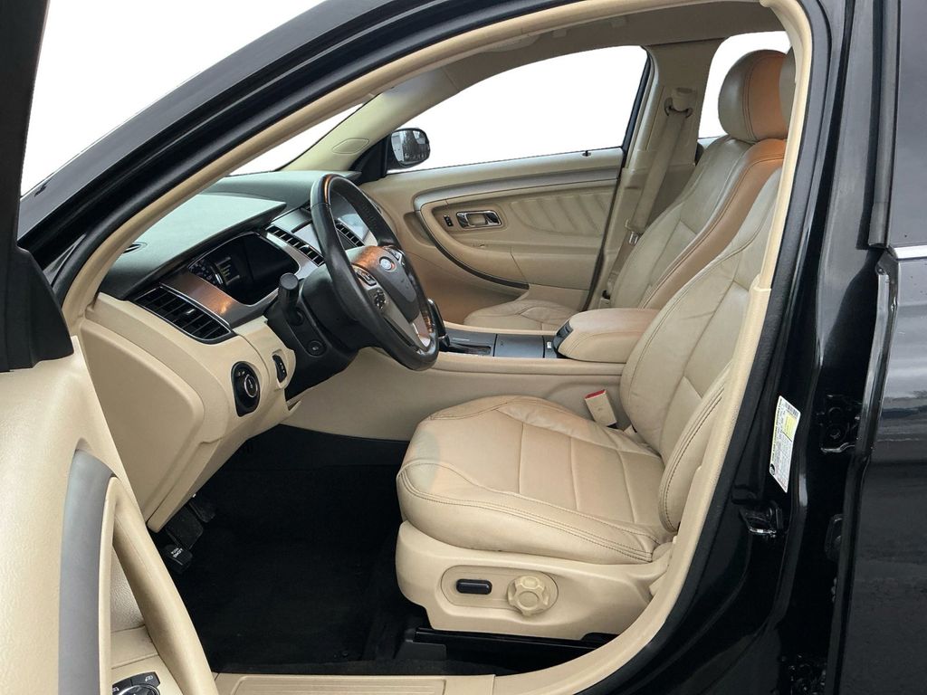 2015 Ford Taurus SEL Tuxedo Black Metallic SEL FWD 6-Speed Automatic with Select-Shift 3.5L 6-Cylinder SMPI Flex Fuel DOHC 18" Painted Aluminum Wheels, 4-Wheel Disc Brakes, 6 Speakers, ABS brakes, Additional IP Center Channel Speaker, Air Conditioning, Alloy wheels, AM/FM radio: SiriusXM, AM/FM Stereo/Single CD/MP3 Capable, Auto-dimming Rear-View mirror, Automatic temperature control, Brake assist, Bumpers: body-color, CD player, Compass, Delay-off headlights, Driver door bin, Driver vanity mirror, Dual front impact airbags, Dual front side impact airbags, Electronic Stability Control, Equipment Group 201A, Exterior Parking Camera Rear, Four wheel independent suspension, Front anti-roll bar, Front Bucket Seats, Front Center Armrest, Front dual zone A/C, Front License Plate Bracket, Front reading lights, Fully automatic headlights, Heated door mirrors, Illuminated entry, Intelligent Access w/Push Button Start, Low tire pressure warning, Non-Memory Power Adjustable Pedals, Occupant sensing airbag, Outside temperature display, Overhead airbag, Overhead console, Panic alarm, Passenger door bin, Passenger vanity mirror, Power door mirrors, Power driver seat, Power passenger seat, Power steering, Power windows, Radio data system, Rear anti-roll bar, Rear Parking Sensors, Rear reading lights, Rear seat center armrest, Rear window defroster, Remote keyless entry, Security system, Speed control, Speed-sensing steering, Speed-Sensitive Wipers, Split folding rear seat, Steering wheel mounted audio controls, SYNC w/MyFord, SYNC w/MyFord Touch & SYNC Services, Tachometer, Telescoping steering wheel, Tilt steering wheel, Traction control, Trip computer, Unique Cloth Bucket Seats, Variably intermittent wipers.