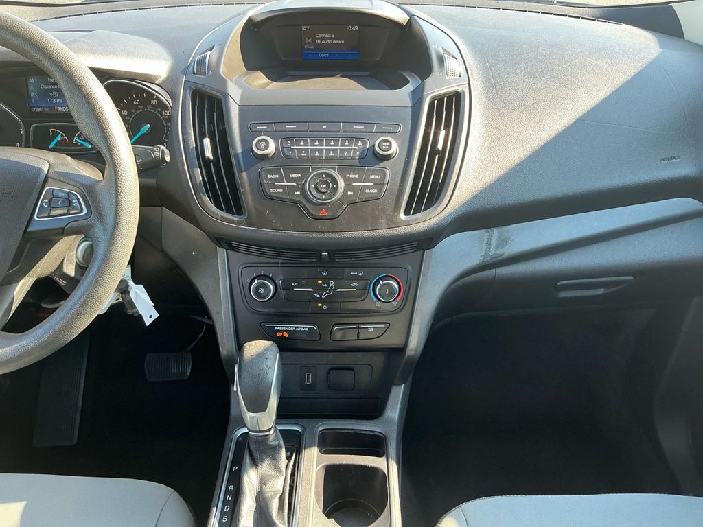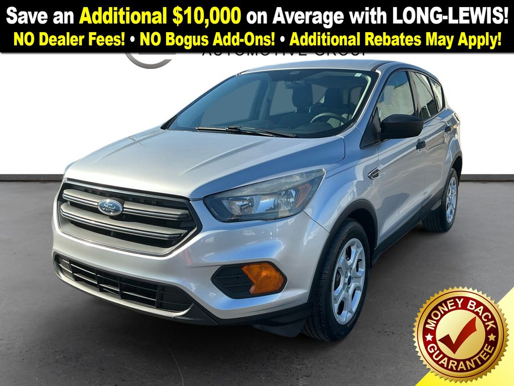 2019 Ford Escape S Ingot Silver S FWD 6-Speed Automatic 2.5L i-VCT 3.51 Axle Ratio, 4-Wheel Disc Brakes, 6 Speakers, ABS brakes, Air Conditioning, AM/FM radio, Brake assist, Bumpers: body-color, Cloth Front Bucket Seats, Compass, Delay-off headlights, Driver door bin, Driver vanity mirror, Dual front impact airbags, Dual front side impact airbags, Electronic Stability Control, Emergency communication system: 911 Assist, Equipment Group 100A, Exterior Parking Camera Rear, Four wheel independent suspension, Front anti-roll bar, Front Bucket Seats, Front Center Armrest, Front reading lights, Fully automatic headlights, Illuminated entry, Knee airbag, Low tire pressure warning, Occupant sensing airbag, Outside temperature display, Overhead airbag, Overhead console, Panic alarm, Passenger door bin, Passenger vanity mirror, Power door mirrors, Power steering, Power windows, Radio data system, Radio: AM/FM Stereo w/MP3 Capable, Rear anti-roll bar, Rear window defroster, Rear window wiper, Remote keyless entry, Speed control, Speed-sensing steering, Split folding rear seat, Steering wheel mounted audio controls, SYNC Communications & Entertainment System, Tachometer, Telescoping steering wheel, Tilt steering wheel, Traction control, Trip computer, Variably intermittent wipers, Wheels: 17" Steel w/Sparkle Silver-Painted Covers.
