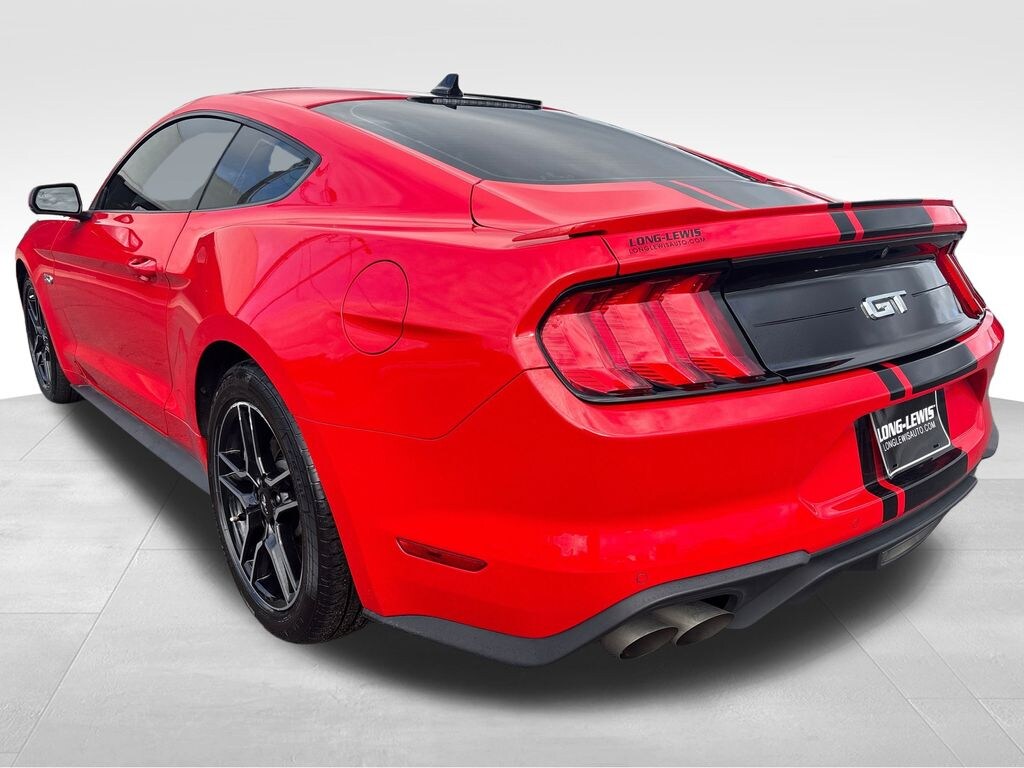 2020 Ford Mustang GT Premium Race Red GT Premium RWD 10-Speed Automatic 5.0L V8 Ti-VCT 4-Wheel Disc Brakes, ABS brakes, Air Conditioning, Alloy wheels, AM/FM Stereo, Auto-dimming Rear-View mirror, Brake assist, Bumpers: body-color, Compass, Delay-off headlights, Driver door bin, Driver vanity mirror, Dual front impact airbags, Dual front side impact airbags, Electronic Stability Control, Emergency communication system: 911 Assist, Equipment Group 401A, Exterior Parking Camera Rear, Four wheel independent suspension, Front anti-roll bar, Front Bucket Seats, Front Center Armrest, Front fog lights, Front reading lights, Fully automatic headlights, Illuminated entry, Knee airbag, Low tire pressure warning, Memory Driver Seat, Mirrors & Ambient Lighting, Occupant sensing airbag, Outside temperature display, Over-the-Top Racing Stripe, Overhead airbag, Overhead console, Panic alarm, Passenger door bin, Passenger vanity mirror, Power door mirrors, Power driver seat, Power passenger seat, Power steering, Power windows, Radio data system, Rear anti-roll bar, Rear window defroster, Remote keyless entry, Security system, Speed control, Speed-sensing steering, Speed-Sensitive Wipers, Split folding rear seat, Spoiler, Steering wheel mounted audio controls, Tachometer, Telescoping steering wheel, Tilt steering wheel, Traction control, Trip computer, Variably intermittent wipers, Voltmeter, Wheels: 18" x 8" Machined-Face Aluminum.