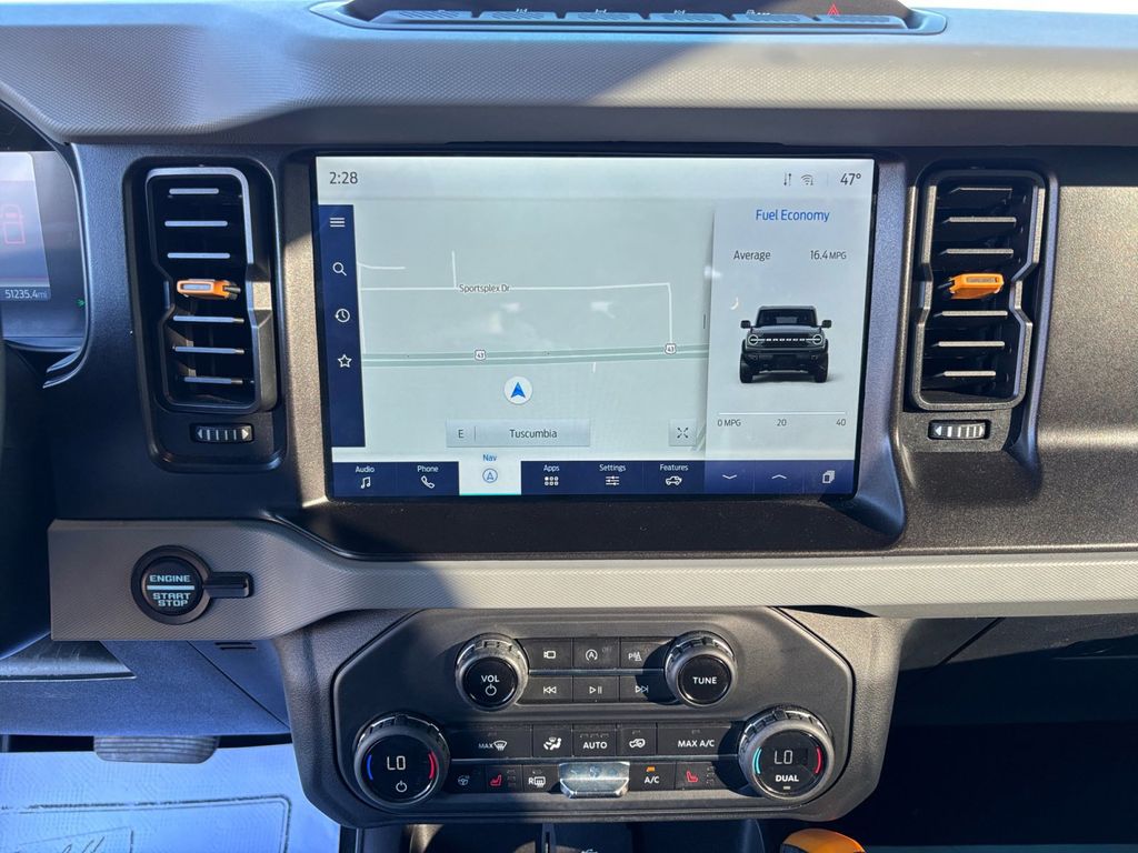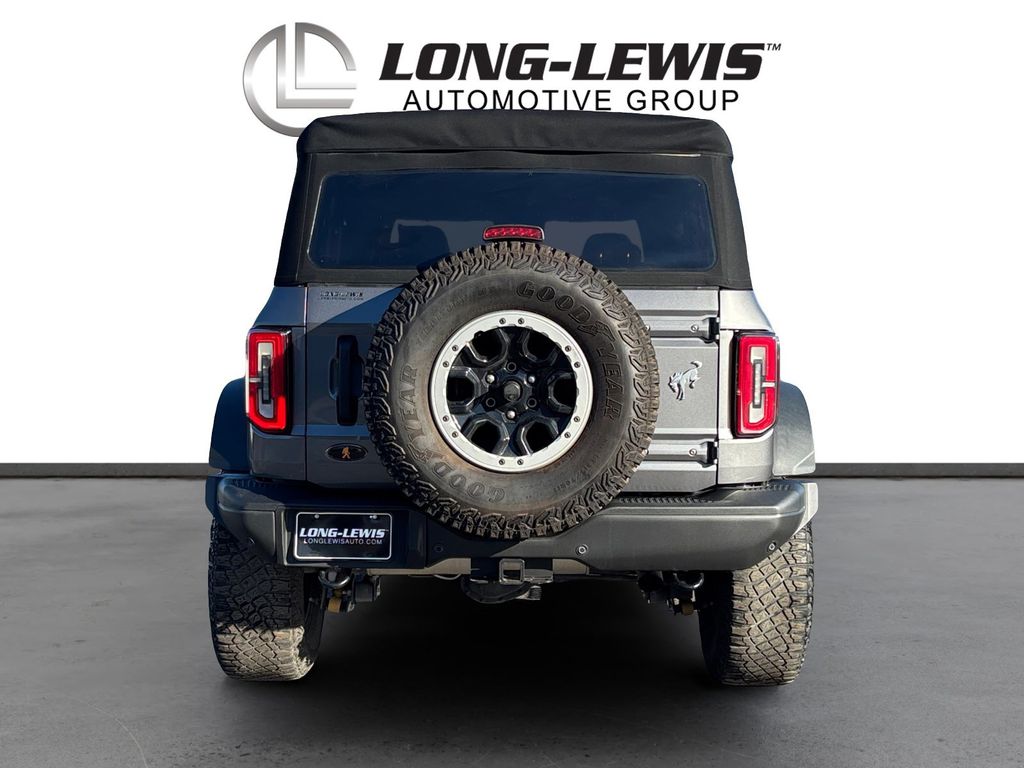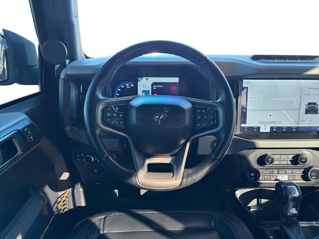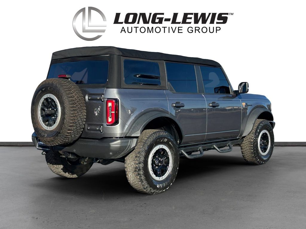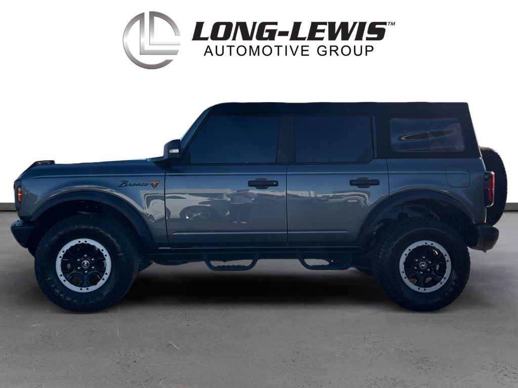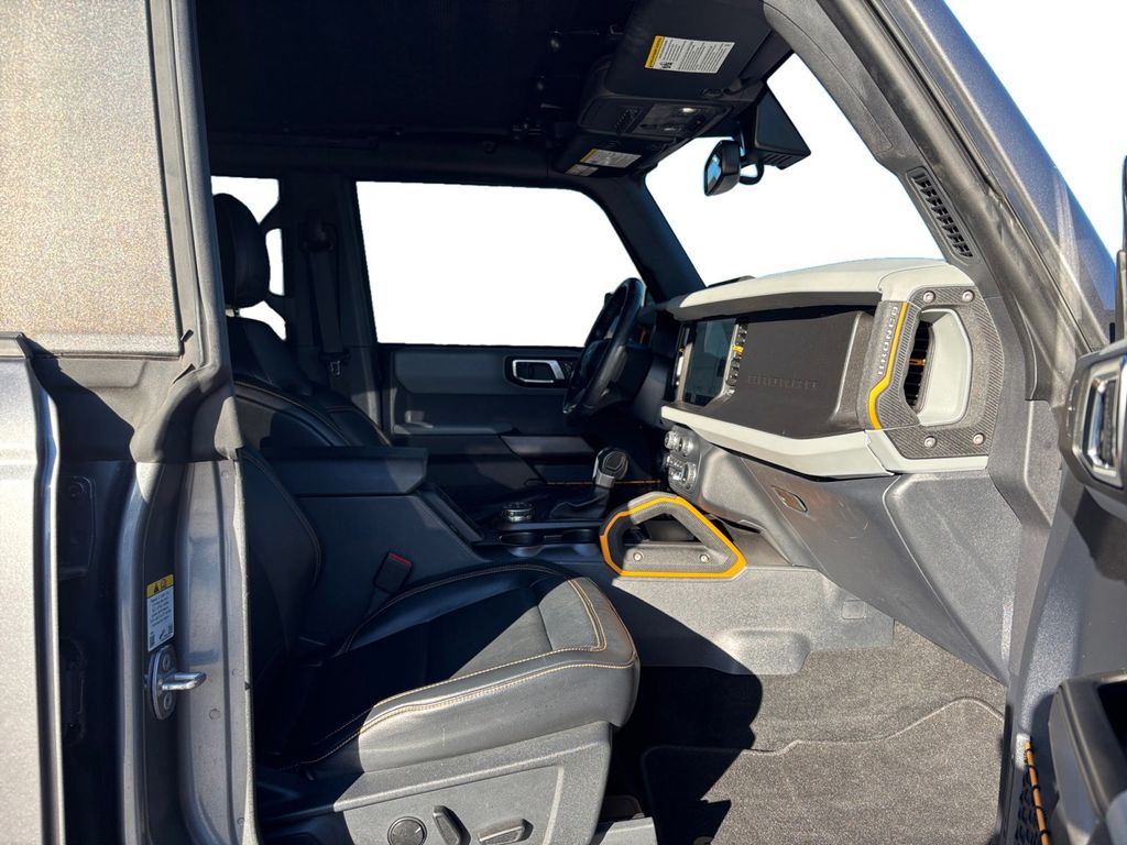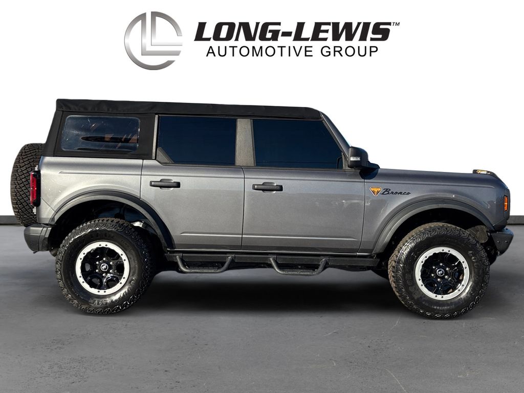 2021 Ford Bronco Badlands Gray Metallic Badlands 4WD 10-Speed Automatic 2.7L EcoBoost V6 12" LCD Capacitive Touchscreen w/Swipe Capability, 2 Smart Charging USB Ports In Dashboard, 2-Door Intelligent Access w/Lock/Unlock, 360-Degree Camera, 4-Wheel Disc Brakes, 4.7 Axle Ratio, 6 Speakers, ABS brakes, Adaptive Cruise Control, Additional Sound Deadening, Air Conditioning, Alloy wheels, AM/FM radio: SiriusXM with 360L, AM/FM Stereo, Ambient Footwell Lighting, Auto High-Beam Headlamps, Auto High-beam Headlights, Auto-Dimming Interior Rear-View Mirror, BLIS Blind Spot Information System, Brake assist, Compass, Connected Built-In Navigation, Delay-off headlights, Door Storage Bags, Dr & Pass Illuminated Sliding Visor Vanity Mirrors, Driver door bin, Driver vanity mirror, Dual front impact airbags, Dual front side impact airbags, Dual-Zone Electronic Automatic Temperature Control, Emergency communication system: 911 Assist, Enhanced Voice Recognition, Equipment Group 334A Lux Package, Evasive Steering Assist, Exterior Parking Camera Rear, Forward Sensing System, Front & Rear Floor Liners, Front anti-roll bar, Front Bucket Seats, Front Center Armrest, Front License Plate Bracket, Front reading lights, Front Row Heated Seats, Front wheel independent suspension, Fully automatic headlights, Heated door mirrors, Heated Steering Wheel, High Clearance Fender Flares, High Clearance Suspension, Illuminated entry, Information on Demand Panel, Integrated roll-over protection, Lane-Keeping System, Leather Shift Knob, Low tire pressure warning, Marine Grade Vinyl Bucket Seats, Occupant sensing airbag, Outside temperature display, Overhead airbag, Overhead console, Panic alarm, Passenger door bin, Passenger vanity mirror, Position-Sensitive Bilstein Shock Absorbers, Power door mirrors, Power Outlet - Back Side of Center Floor Console, Power steering, Power windows, Pre-Collision Assist w/Automatic Emergency Braking, Radio data system, Radio: B&O Sound System by Bang & Olufsen, Rear-View Camera, Remote keyless entry, Reverse Sensing System, Sasquatch Package, Security system, Sideview Mirrors, SiriusXM Radio w/360L, Speed control, Split folding rear seat, Steering wheel mounted audio controls, SYNC 4, Tachometer, Telescoping steering wheel, Tilt steering wheel, Traction control, Trip computer, Universal Garage Door Opener, Variably intermittent wipers, Voltmeter, Wheels: 17" Black High Gloss-Painted Aluminum, Wheels: 17" Machined Carbonized Aluminum, Wireless Charging Pad.
