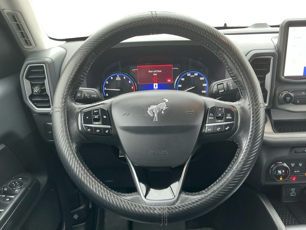 2021 Ford Bronco Sport Outer Banks Gray Outer Banks 4WD 8-Speed Automatic 1.5L EcoBoost 3.80 Axle Ratio, 4-Wheel Disc Brakes, 6 Speakers, ABS brakes, Air Conditioning, Alloy wheels, AM/FM radio: SiriusXM, AM/FM Stereo, Auto High-beam Headlights, Auto-dimming Rear-View mirror, Automatic temperature control, Brake assist, Compass, Delay-off headlights, Driver door bin, Driver vanity mirror, Dual front impact airbags, Dual front side impact airbags, Electronic Stability Control, Emergency communication system: SYNC 3 911 Assist, Equipment Group 300A, Exterior Parking Camera Rear, Four wheel independent suspension, Front & Rear Floor Liners w/Carpet Mats, Front anti-roll bar, Front Bucket Seats, Front Center Armrest, Front dual zone A/C, Front fog lights, Front reading lights, Fully automatic headlights, Heated door mirrors, Heated front seats, Heated steering wheel, Illuminated entry, Knee airbag, Leather Trimmed Heated Sport Contour Bucket Seats, Low tire pressure warning, Occupant sensing airbag, Outside temperature display, Overhead airbag, Overhead console, Panic alarm, Passenger door bin, Passenger vanity mirror, Power door mirrors, Power driver seat, Power passenger seat, Power steering, Power windows, Radio data system, Rain sensing wipers, Rear anti-roll bar, Rear Parking Sensors, Rear reading lights, Rear seat center armrest, Rear window defroster, Rear window wiper, Remote keyless entry, Roof rack: rails only, Security system, SiriusXM Radio, Speed control, Speed-sensing steering, Speed-Sensitive Wipers, Split folding rear seat, Steering wheel mounted audio controls, SYNC 3 Communications & Entertainment System, SYNC 3/Apple CarPlay/Android Auto, Tachometer, Telescoping steering wheel, Tilt steering wheel, Traction control, Trip computer, Variably intermittent wipers, Wheels: 18" Ebony Black-Painted Aluminum.