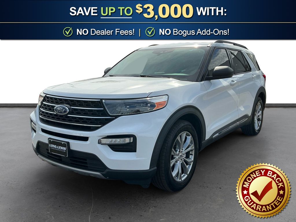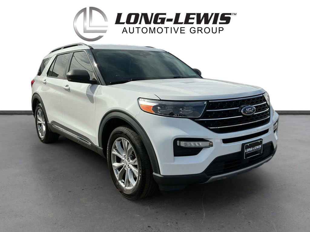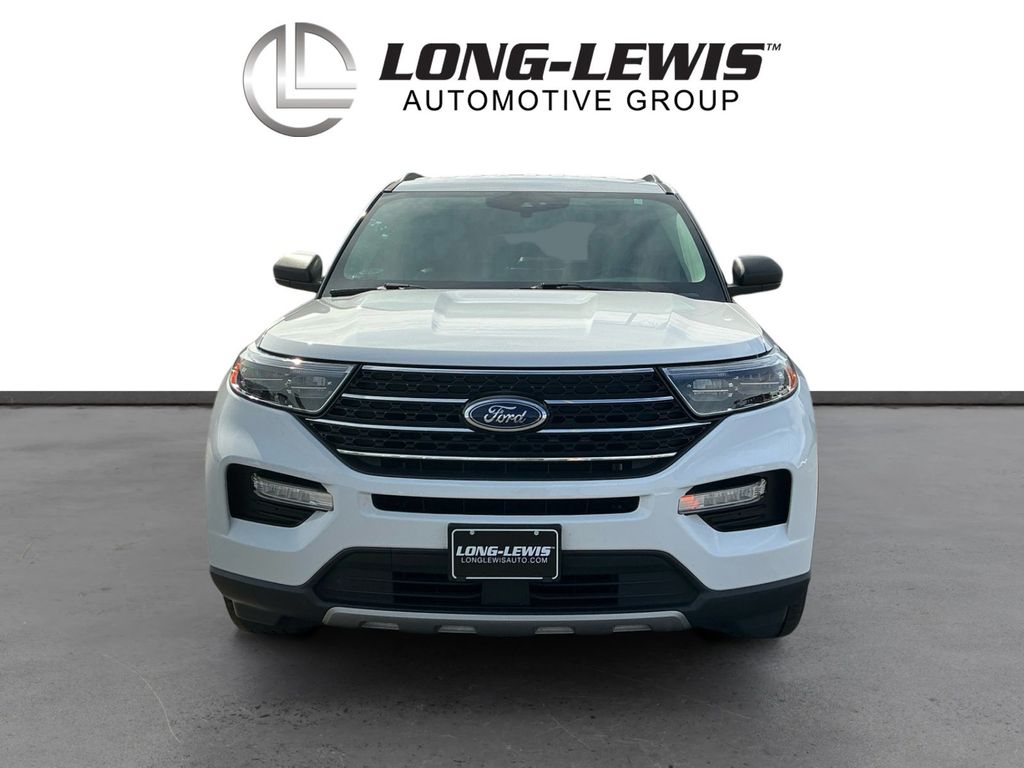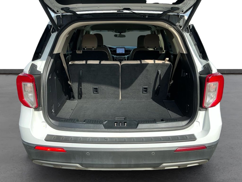2021 Ford Explorer XLT Oxford White XLT RWD 10-Speed Automatic 2.3L EcoBoost I-4 1st Row Heated Seats, 20" Premium Painted Aluminum Wheels, 3.58 Non-Limited-Slip Rear Axle Ratio, 3rd row seats: bench, 4-Wheel Disc Brakes, 6 Speakers, ABS brakes, Acoustic-Laminated Front Side Windows, ActiveX Captain's Chairs, Air Conditioning, Alloy wheels, AM/FM radio: SiriusXM, AM/FM Stereo, Auto High-beam Headlights, Automatic temperature control, Brake assist, Bumpers: body-color, Compass, Delay-off headlights, Driver door bin, Driver vanity mirror, Dual front impact airbags, Dual front side impact airbags, Electronic Stability Control, Emergency communication system: SYNC 3 911 Assist, Equipment Group 202A, Evasive Steering Assist, Exterior Parking Camera Rear, Ford Co-Pilot360 Assist+, FordPass Connect, Four wheel independent suspension, Front anti-roll bar, Front Bucket Seats, Front Center Armrest, Front dual zone A/C, Front License Plate Bracket, Front reading lights, Fully automatic headlights, Heated door mirrors, Heated front seats, Heated Steering Wheel, Illuminated entry, Intelligent Adaptive Cruise Control, Knee airbag, Leather steering wheel, LED Fog Lamps, Low tire pressure warning, Occupant sensing airbag, Outside temperature display, Overhead airbag, Overhead console, Panic alarm, Passenger door bin, Passenger vanity mirror, Power door mirrors, Power driver seat, Power Liftgate, Power passenger seat, Power steering, Power windows, Rear air conditioning, Rear anti-roll bar, Rear reading lights, Rear window defroster, Rear window wiper, Remote keyless entry, Remote Start System, Roof rack: rails only, Security system, Speed control, Speed Sign Recognition, Speed-sensing steering, Speed-Sensitive Wipers, Split folding rear seat, Spoiler, Steering wheel mounted audio controls, SYNC 3 Communications & Entertainment System, SYNC 3/Apple CarPlay/Android Auto, Tachometer, Telescoping steering wheel, Tilt steering wheel, Traction control, Trip computer, Unique Cloth Captain's Chairs, Variably intermittent wipers, Voice-Activated Touchscreen Navigation System, Wheels: 18" 5-Spoke Sparkle Silver-Painted Alum.