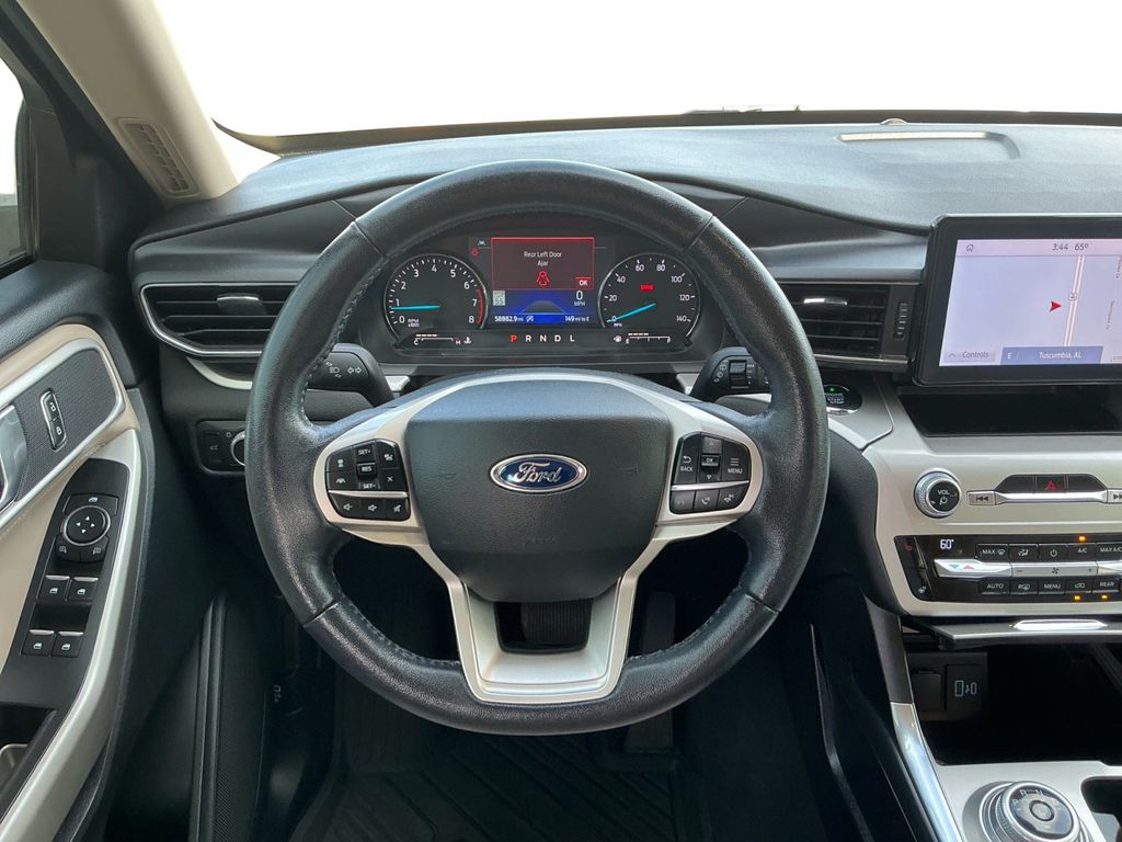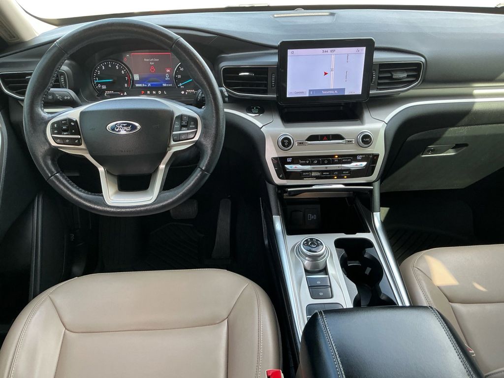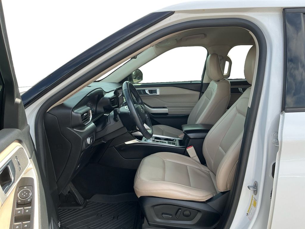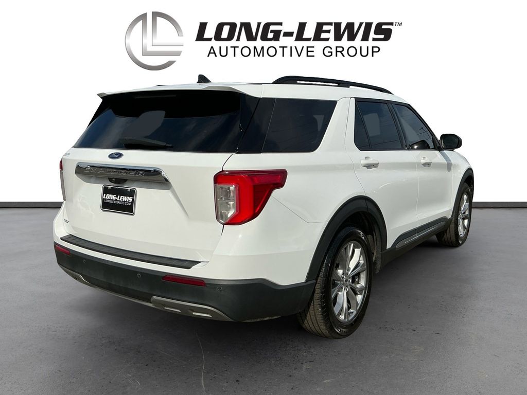 2021 Ford Explorer XLT Oxford White XLT RWD 10-Speed Automatic 2.3L EcoBoost I-4 1st Row Heated Seats, 20" Premium Painted Aluminum Wheels, 3.58 Non-Limited-Slip Rear Axle Ratio, 3rd row seats: bench, 4-Wheel Disc Brakes, 6 Speakers, ABS brakes, Acoustic-Laminated Front Side Windows, ActiveX Captain's Chairs, Air Conditioning, Alloy wheels, AM/FM radio: SiriusXM, AM/FM Stereo, Auto High-beam Headlights, Automatic temperature control, Brake assist, Bumpers: body-color, Compass, Delay-off headlights, Driver door bin, Driver vanity mirror, Dual front impact airbags, Dual front side impact airbags, Electronic Stability Control, Emergency communication system: SYNC 3 911 Assist, Equipment Group 202A, Evasive Steering Assist, Exterior Parking Camera Rear, Ford Co-Pilot360 Assist+, FordPass Connect, Four wheel independent suspension, Front anti-roll bar, Front Bucket Seats, Front Center Armrest, Front dual zone A/C, Front License Plate Bracket, Front reading lights, Fully automatic headlights, Heated door mirrors, Heated front seats, Heated Steering Wheel, Illuminated entry, Intelligent Adaptive Cruise Control, Knee airbag, Leather steering wheel, LED Fog Lamps, Low tire pressure warning, Occupant sensing airbag, Outside temperature display, Overhead airbag, Overhead console, Panic alarm, Passenger door bin, Passenger vanity mirror, Power door mirrors, Power driver seat, Power Liftgate, Power passenger seat, Power steering, Power windows, Rear air conditioning, Rear anti-roll bar, Rear reading lights, Rear window defroster, Rear window wiper, Remote keyless entry, Remote Start System, Roof rack: rails only, Security system, Speed control, Speed Sign Recognition, Speed-sensing steering, Speed-Sensitive Wipers, Split folding rear seat, Spoiler, Steering wheel mounted audio controls, SYNC 3 Communications & Entertainment System, SYNC 3/Apple CarPlay/Android Auto, Tachometer, Telescoping steering wheel, Tilt steering wheel, Traction control, Trip computer, Unique Cloth Captain's Chairs, Variably intermittent wipers, Voice-Activated Touchscreen Navigation System, Wheels: 18" 5-Spoke Sparkle Silver-Painted Alum.
