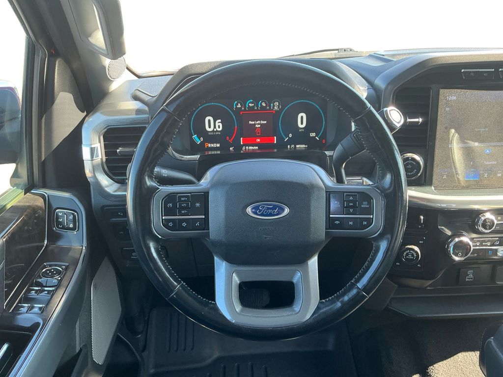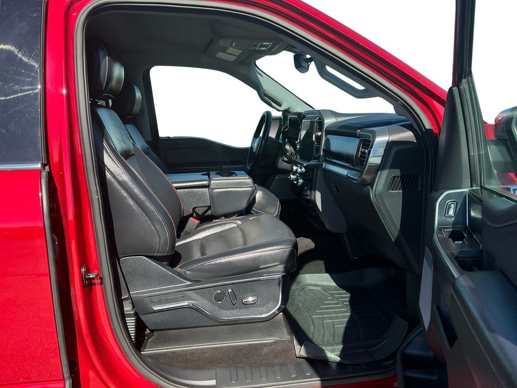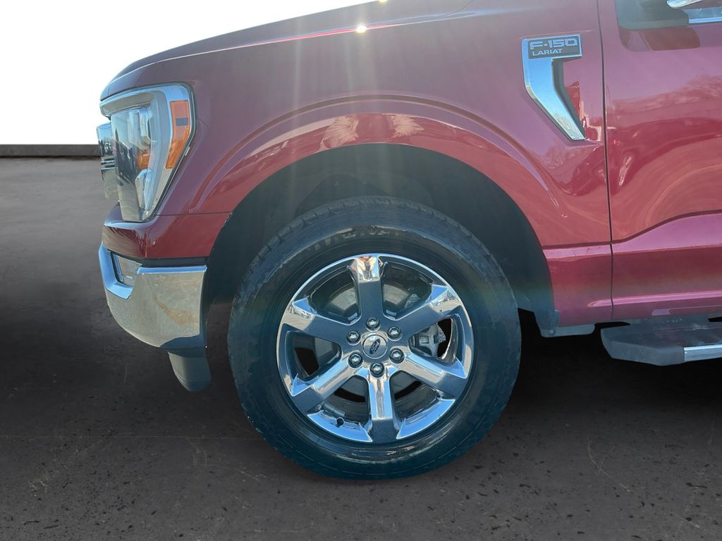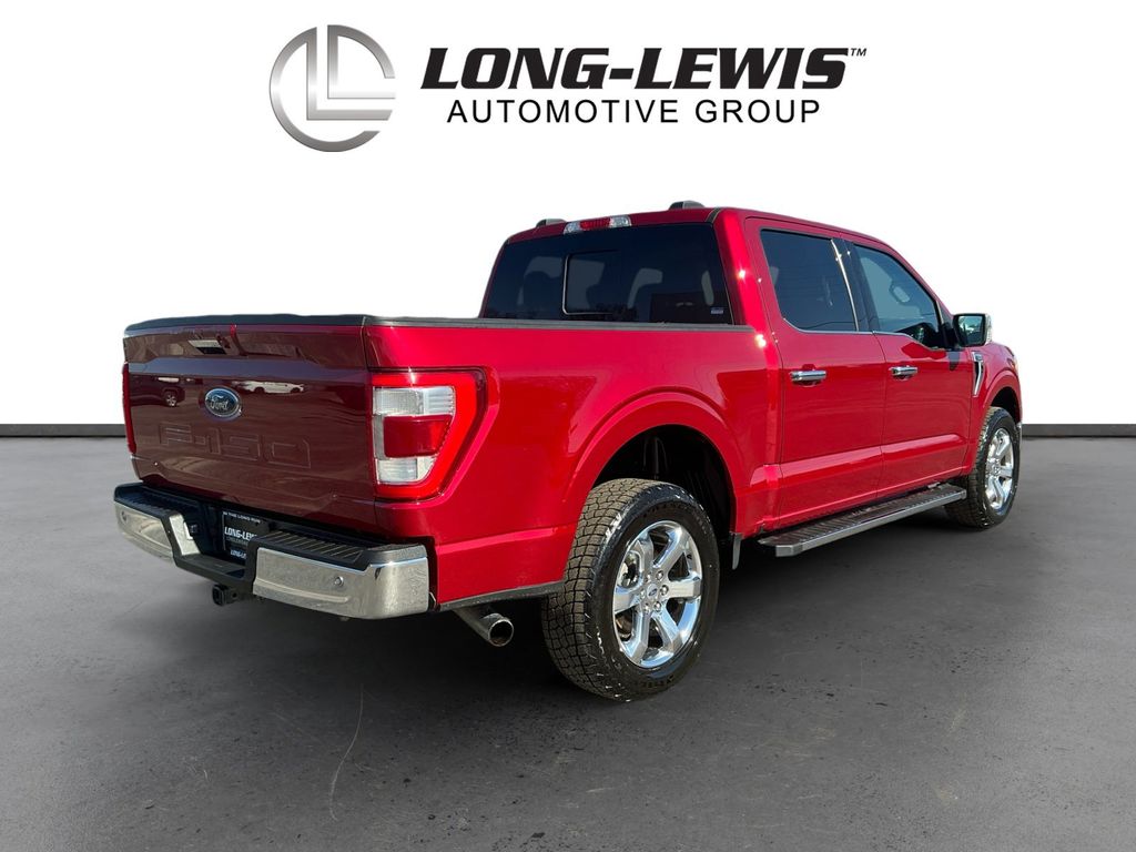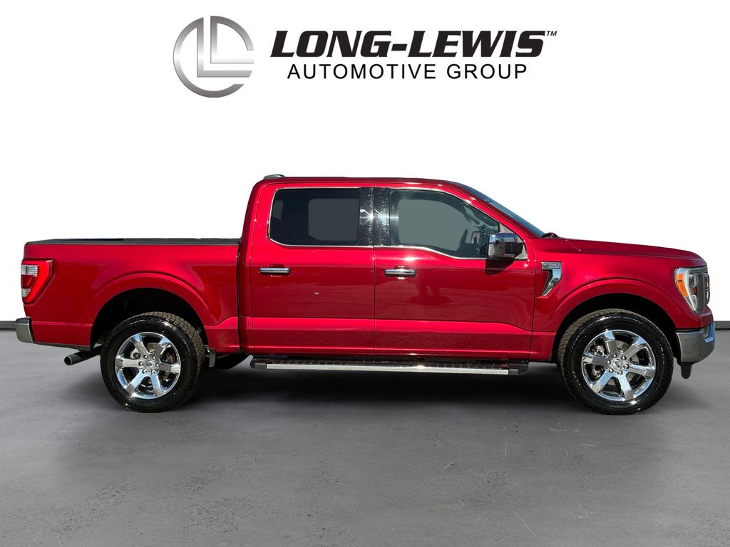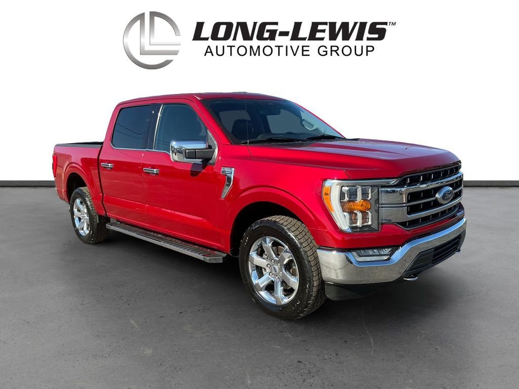 2021 Ford F-150 Lariat Red Lariat 4WD 10-Speed Automatic 5.0L V8 4WD, 18" Machined-Aluminum Wheels, 4-Wheel Disc Brakes, 6" Chrome Running Board, 7 Speakers, ABS brakes, Adjustable pedals, Air Conditioning, Alloy wheels, AM/FM radio: SiriusXM with 360L, Auto High-beam Headlights, Auto-dimming door mirrors, Auto-dimming Rear-View mirror, Automatic temperature control, Brake assist, Bumpers: chrome, Chrome 2-Bar Grille w/4 Minor Bars, Chrome Door & Tailgate Handles w/Body-Color Bezel, Chrome Single-Tip Exhaust, Chrome Skull Caps on Exterior Mirrors, Class IV Trailer Hitch Receiver, Compass, Delay-off headlights, Driver door bin, Driver vanity mirror, Dual front impact airbags, Dual front side impact airbags, Electronic Stability Control, Emergency communication system: SYNC 4 911 Assist, Equipment Group 501A Mid, Extended Range 36 Gallon Fuel Tank, Exterior Parking Camera Rear, Front anti-roll bar, Front Center Armrest w/Storage, Front dual zone A/C, Front fog lights, Front reading lights, Front wheel independent suspension, Fully automatic headlights, Heated door mirrors, Heated front seats, Illuminated entry, Integrated Trailer Brake Controller, Lariat Chrome Appearance Package, Leather-Trimmed 40/20/40 Front Seat, LED Sideview Mirror Spotlights, Low tire pressure warning, Memory seat, Navigation system: Connected Navigation (90-Day Trial), Occupant sensing airbag, Onboard 400W Outlet, Outside temperature display, Overhead airbag, Overhead console, Panic alarm, Passenger door bin, Passenger vanity mirror, Pedal memory, Power door mirrors, Power driver seat, Power passenger seat, Power steering, Power windows, Pro Trailer Backup Assist, Radio data system, Radio: AM/FM SiriusXM w/360L, Radio: B&O Sound System by Bang & Olufsen, Rear reading lights, Rear seat center armrest, Rear step bumper, Rear window defroster, Remote keyless entry, Security system, Speed control, Speed-sensing steering, Split folding rear seat, Steering wheel mounted audio controls, SYNC 4 w/Enhanced Voice Recognition, Tachometer, Telescoping steering wheel, Tilt steering wheel, Tough Bed Spray-In Bedliner, Traction control, Trailer Tow Package, Trip computer, Turn signal indicator mirrors, Variably intermittent wipers, Ventilated front seats, Voltmeter, Wheel Well Liner, Wheels: 18" Chrome-Like PVD, Wheels: 20" Chrome-Like PVD, 4WD.