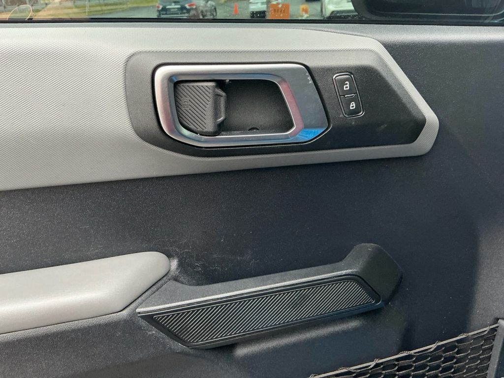 2022 Ford Bronco Big Bend Velocity Blue Metallic Big Bend 4WD 10-Speed Automatic 2.3L EcoBoost I-4 4-Wheel Disc Brakes, 6 Speakers, ABS brakes, Air Conditioning, AM/FM radio: SiriusXM with 360L, AM/FM Stereo, Auto High-beam Headlights, Brake assist, Compass, Delay-off headlights, Driver door bin, Driver vanity mirror, Dual front impact airbags, Dual front side impact airbags, Electronic Stability Control, Emergency communication system: 911 Assist, Exterior Parking Camera Rear, Front & Rear Floor Liners w/o Carpet Floor Mats, Front anti-roll bar, Front Bucket Seats, Front Center Armrest, Front reading lights, Front wheel independent suspension, Fully automatic headlights, Heated door mirrors, Illuminated entry, Integrated roll-over protection, Keyless Entry Keypad, Low tire pressure warning, Occupant sensing airbag, Outside temperature display, Overhead airbag, Overhead console, Panic alarm, Passenger door bin, Passenger vanity mirror, Power door mirrors, Power steering, Power windows, Radio data system, Remote keyless entry, Security system, SiriusXM Radio w/360L, Speed control, Split folding rear seat, Steering wheel mounted audio controls, SYNC 4, Tachometer, Telescoping steering wheel, Tilt steering wheel, Traction control, Trip computer, Variably intermittent wipers.