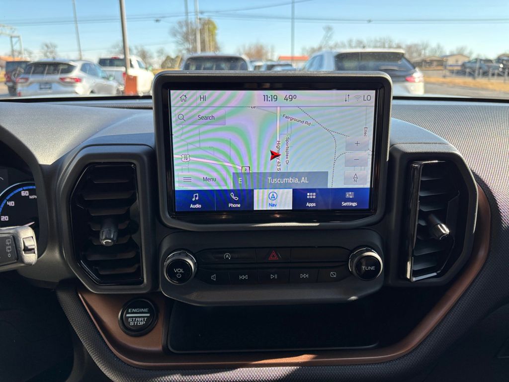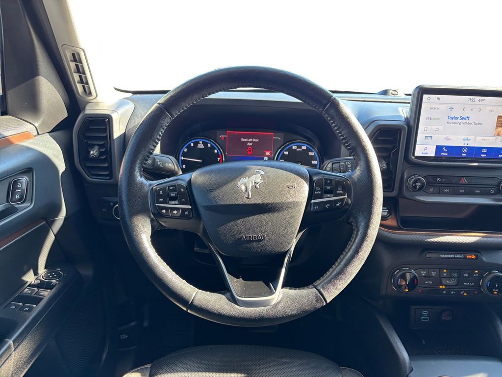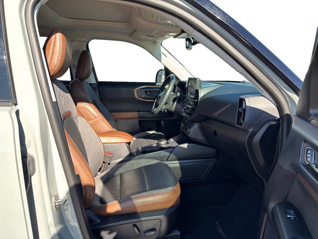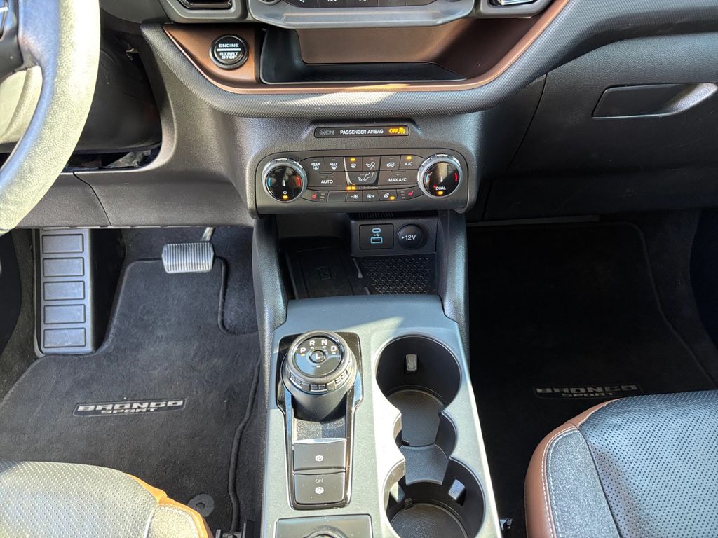 2022 Ford Bronco Sport Outer Banks Cactus Gray Outer Banks 4WD 8-Speed Automatic 1.5L EcoBoost 3.80 Axle Ratio, 4-Wheel Disc Brakes, 6 Speakers, ABS brakes, Air Conditioning, Alloy wheels, AM/FM radio: SiriusXM, AM/FM Stereo, Auto High-beam Headlights, Auto-dimming Rear-View mirror, Automatic temperature control, Brake assist, Compass, Delay-off headlights, Driver door bin, Driver vanity mirror, Dual front impact airbags, Dual front side impact airbags, Electronic Stability Control, Emergency communication system: SYNC 3 911 Assist, Equipment Group 300A, Evasive Steering Assist, Ford Co-Pilot360 Assist+, Four wheel independent suspension, Front anti-roll bar, Front Bucket Seats, Front Center Armrest, Front dual zone A/C, Front fog lights, Front reading lights, Fully automatic headlights, HD Radio, Heated door mirrors, Heated front seats, Heated steering wheel, Illuminated entry, Intelligent Adaptive Cruise Control w/Stop & Go, Knee airbag, Leather Trimmed Heated Sport Contour Bucket Seats, Low tire pressure warning, Occupant sensing airbag, Outside temperature display, Overhead airbag, Overhead console, Panic alarm, Passenger door bin, Passenger vanity mirror, Power door mirrors, Power driver seat, Power Moonroof, Power passenger seat, Power steering, Power windows, Radio data system, Rain sensing wipers, Rear anti-roll bar, Rear Parking Sensors, Rear reading lights, Rear seat center armrest, Rear window defroster, Rear window wiper, Remote keyless entry, Roof rack: rails only, Security system, SiriusXM Radio, Speed control, Speed-sensing steering, Speed-Sensitive Wipers, Split folding rear seat, Steering wheel mounted audio controls, SYNC 3 Communications & Entertainment System, SYNC 3/Apple CarPlay/Android Auto, Tachometer, Tech Package, Telescoping steering wheel, Tilt steering wheel, Traction control, Trip computer, Universal Garage Door Opener (UGDO), Variably intermittent wipers, Voice-Activated Touchscreen Navigation System, Wheels: 18" Ebony Black-Painted Aluminum, Wireless Charging Pad.