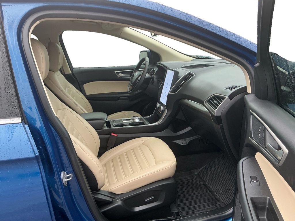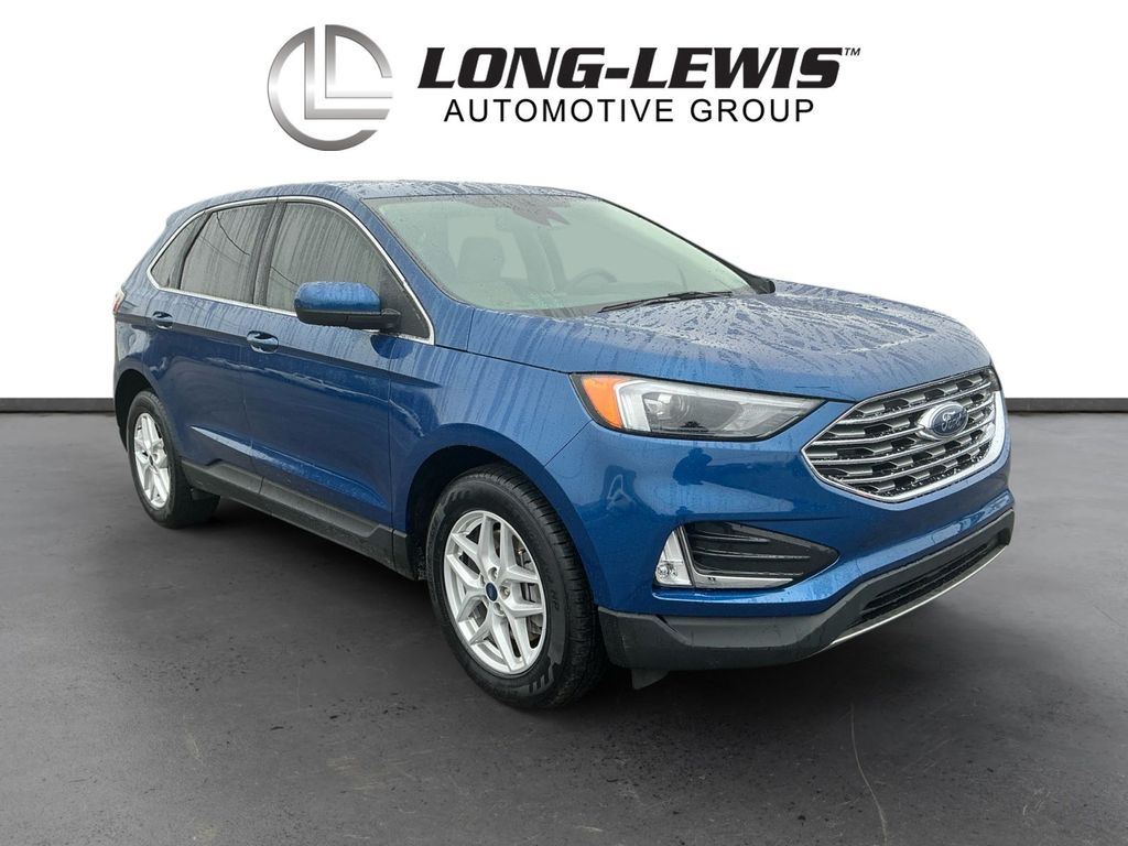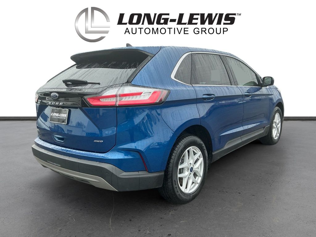 2022 Ford Edge SEL Atlas Blue Metallic SEL AWD 8-Speed Automatic EcoBoost 2.0L I4 GTDi DOHC Turbocharged VCT AWD, 110V/150W AC Power Outlet, 3.80 Axle Ratio, 4-Wheel Disc Brakes, 6 Speakers, ABS brakes, ActiveX Seating Material Heated Bucket Seats, Adaptive Cruise Control w/Stop & Go, Air Conditioning, Alloy wheels, AM/FM radio: SiriusXM with 360L, Auto High-beam Headlights, Auto-dimming Rear-View mirror, Automatic temperature control, Brake assist, Bumpers: body-color, Compass, Connected Built-In Navigation, Convenience Package, Delay-off headlights, Driver door bin, Driver vanity mirror, Dual front impact airbags, Dual front side impact airbags, Electronic Stability Control, Emergency communication system: SYNC 4 911 Assist, Equipment Group 201A, Evasive Steering Assist, Fog Lamps w/Chrome Bezel, Ford Co-Pilot360 Assist+, FordPass Connect, Four wheel independent suspension, Front & Rear Floor Liners w/o Carpet Mats, Front anti-roll bar, Front Bucket Seats, Front Center Armrest w/Storage, Front dual zone A/C, Front reading lights, Fully automatic headlights, Heated door mirrors, Heated front seats, Illuminated entry, Knee airbag, Lane Centering, Low tire pressure warning, Occupant sensing airbag, Outside temperature display, Overhead airbag, Overhead console, Panic alarm, Passenger door bin, Passenger vanity mirror, Perimeter Alarm, Power door mirrors, Power driver seat, Power Liftgate, Power passenger seat, Power steering, Power windows, Radio: AM/FM Stereo/MP3 Capable, Rear anti-roll bar, Rear Parking Sensors, Rear reading lights, Rear seat center armrest, Rear window defroster, Rear window wiper, Remote keyless entry, Remote Start System, SecuriCode Keyless Entry Keypad, SiriusXM w/360L, Speed control, Speed-Sensitive Wipers, Split folding rear seat, Spoiler, Steering wheel mounted audio controls, SYNC 4A w/Enhanced Voice Recognition, Tachometer, Telescoping steering wheel, Tilt steering wheel, Traction control, Trip computer, Universal Garage Door Opener (UGDO), Variably intermittent wipers, Wheels: 18" Sparkle Silver-Painted Aluminum, Wireless Charging Pad, AWD.