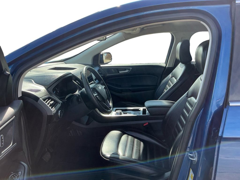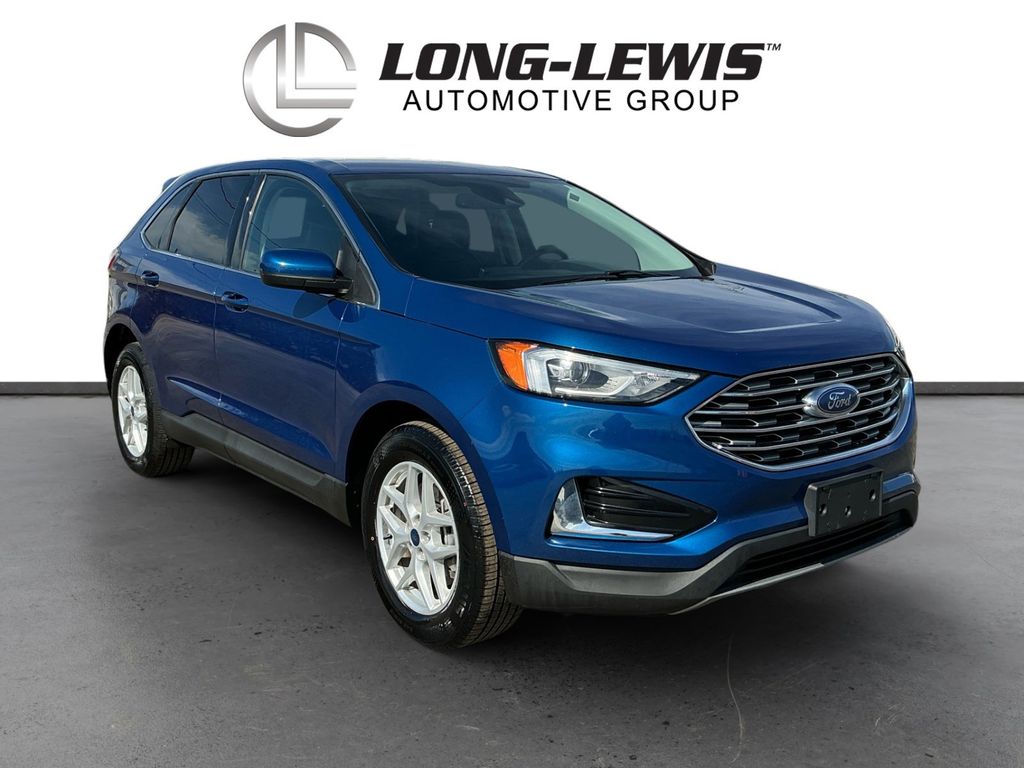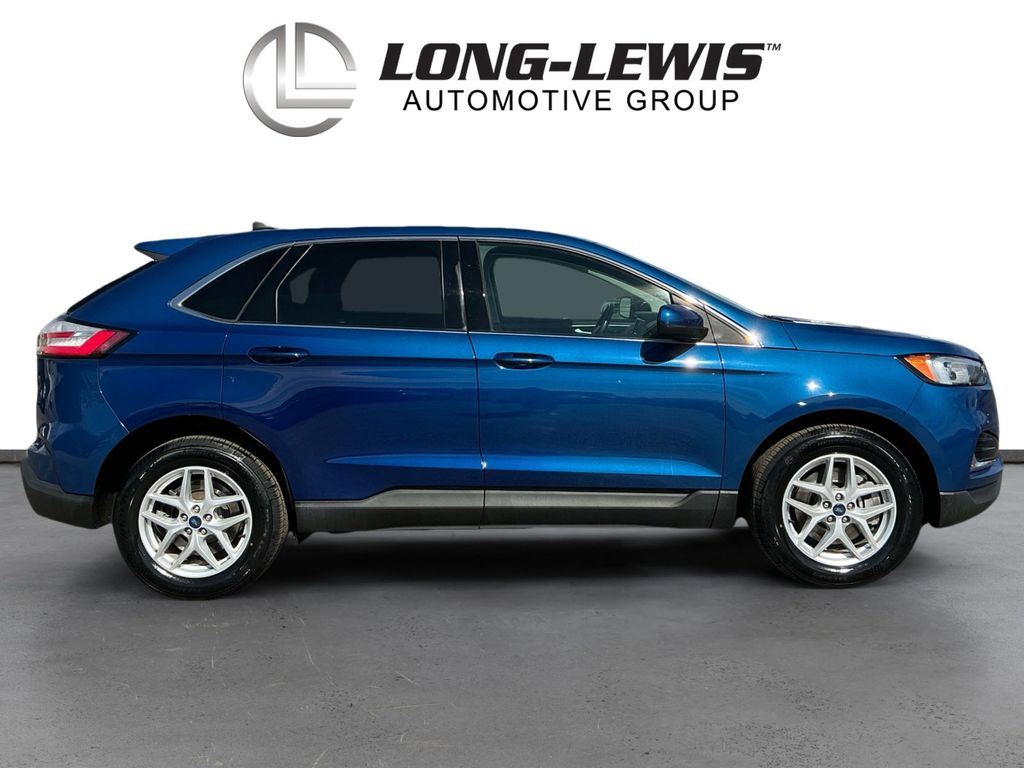 2022 Ford Edge SEL Blue Metallic SEL AWD 8-Speed Automatic EcoBoost 2.0L I4 GTDi DOHC Turbocharged VCT AWD, 3.80 Axle Ratio, 4-Wheel Disc Brakes, 6 Speakers, ABS brakes, ActiveX Seating Material Heated Bucket Seats, Air Conditioning, Alloy wheels, AM/FM radio: SiriusXM with 360L, Auto High-beam Headlights, Auto-dimming Rear-View mirror, Automatic temperature control, Brake assist, Bumpers: body-color, Compass, Delay-off headlights, Driver door bin, Driver vanity mirror, Dual front impact airbags, Dual front side impact airbags, Electronic Stability Control, Emergency communication system: SYNC 4 911 Assist, Equipment Group 201A, FordPass Connect, Four wheel independent suspension, Front anti-roll bar, Front Bucket Seats, Front Center Armrest w/Storage, Front dual zone A/C, Front License Plate Bracket, Front reading lights, Fully automatic headlights, Heated door mirrors, Heated front seats, Illuminated entry, Knee airbag, Low tire pressure warning, Occupant sensing airbag, Outside temperature display, Overhead airbag, Overhead console, Panic alarm, Passenger door bin, Passenger vanity mirror, Power door mirrors, Power driver seat, Power passenger seat, Power steering, Power windows, Radio: AM/FM Stereo/MP3 Capable, Rear anti-roll bar, Rear Parking Sensors, Rear reading lights, Rear seat center armrest, Rear window defroster, Rear window wiper, Remote keyless entry, SiriusXM w/360L, Speed control, Speed-Sensitive Wipers, Split folding rear seat, Spoiler, Steering wheel mounted audio controls, SYNC 4A w/Enhanced Voice Recognition, Tachometer, Telescoping steering wheel, Tilt steering wheel, Traction control, Trip computer, Variably intermittent wipers, Wheels: 18" Sparkle Silver-Painted Aluminum, AWD.