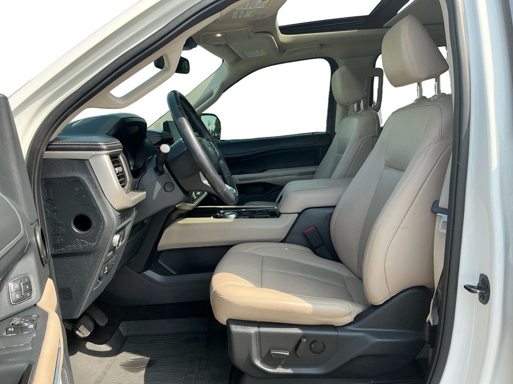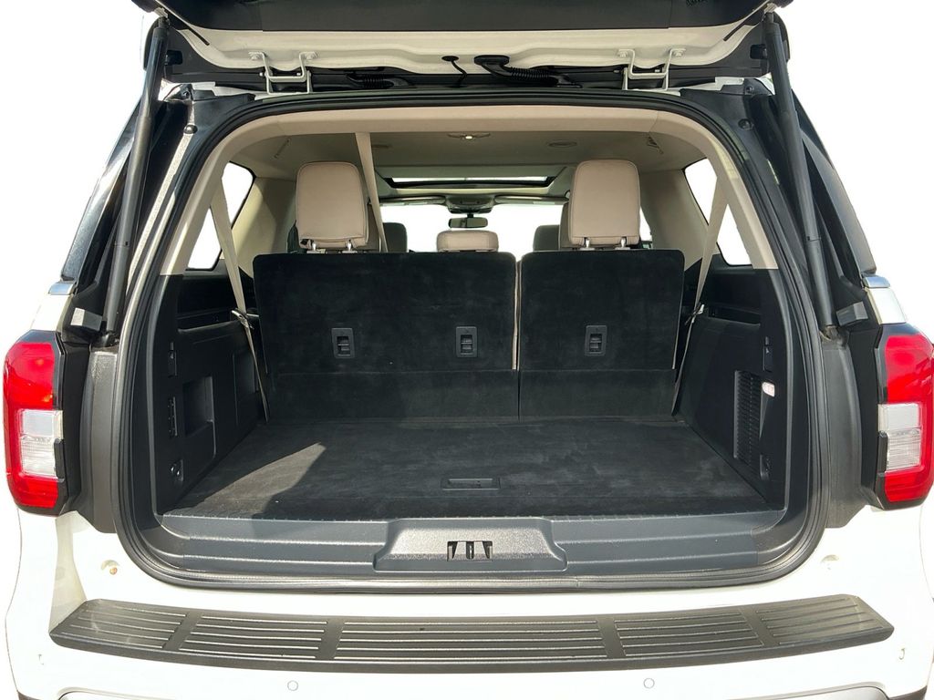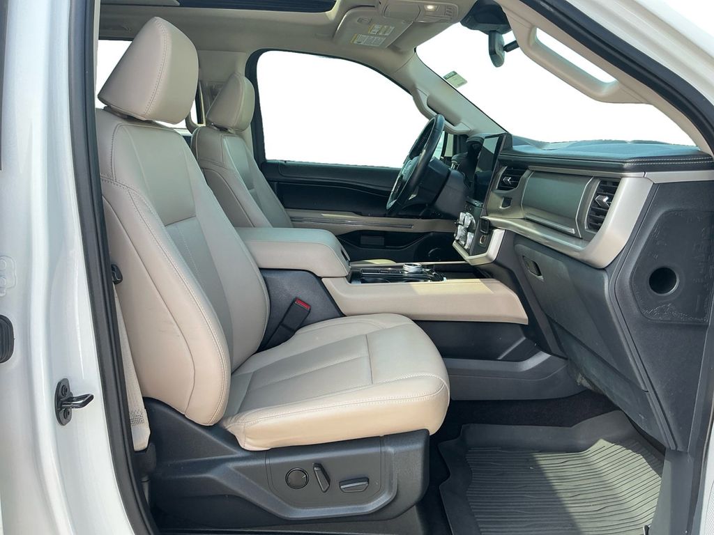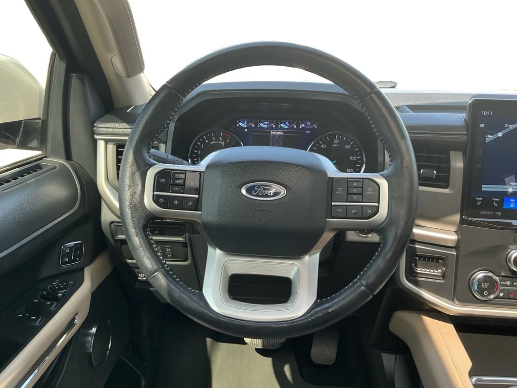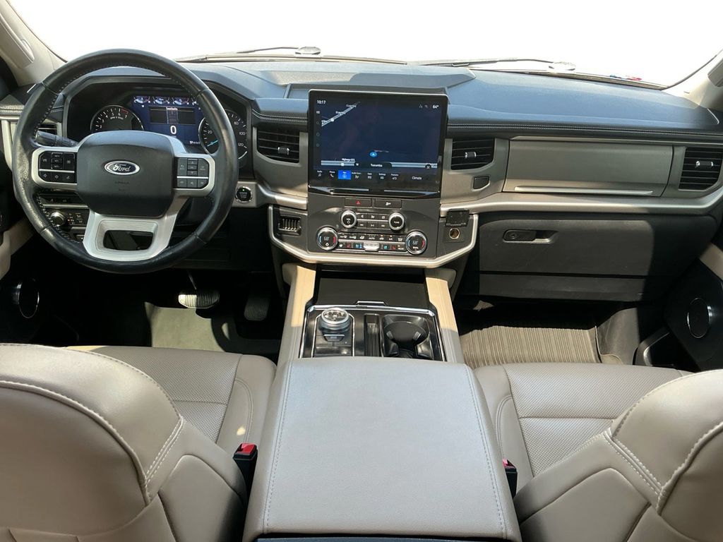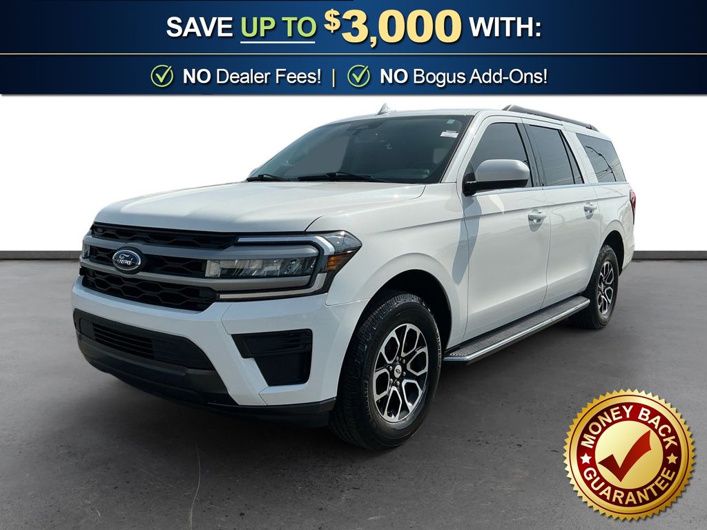 2022 Ford Expedition Max XLT Star White Metallic Tri-Coat XLT RWD 10-Speed Automatic EcoBoost 3.5L V6 GTDi DOHC 24V Twin Turbocharged 110V/150W AC Power Outlet, 18" Machined-Face Aluminum Wheels, 2nd Row Power-Folding Captain's Chairs, 3.31 Axle Ratio, 3rd row seats: split-bench, 3rd Row Vinyl Power-Folding Head Restraints, 4-Door Intelligent Access (Lock/Unlock), 4-Wheel Disc Brakes, 6 Speakers, ABS brakes, Accent Color Painted Rear Bumper, ActiveX-Trimmed 1st & 2nd Row Seats, Advanced Security Pack, Air Conditioning, Alloy wheels, AM/FM radio: SiriusXM with 360L, Ambient Lighting, Auto High-beam Headlights, Auto Start-Stop Removal, Auto-dimming Rear-View mirror, Automatic temperature control, Brake assist, Bright Chrome Plated Accent Platform Running Boards, Bumpers: body-color, Cloth Front Captain's Chairs, Compass, Delay-off headlights, Driver door bin, Driver vanity mirror, Dual front impact airbags, Dual front side impact airbags, Electronic Stability Control, Emergency communication system: SYNC 4 911 Assist, Equipment Group 202A High Package, Exterior Parking Camera Rear, Four wheel independent suspension, Front anti-roll bar, Front Bucket Seats, Front Center Armrest, Front dual zone A/C, Front License Plate Bracket, Front reading lights, Fully automatic headlights, Garage door transmitter, Heated door mirrors, Heated Steering Wheel, Heated/Ventilated Front Seats, Illuminated entry, Leather steering wheel, Low tire pressure warning, Navigation system: Connected Navigation, Occupant sensing airbag, Outside temperature display, Overhead airbag, Overhead console, Panic alarm, Panoramic Vista Roof, Passenger door bin, Passenger vanity mirror, Power door mirrors, Power driver seat, Power Liftgate, Power steering, Power Tilt/Telescopic Steering Wheel w/Memory, Power windows, Power-Adjustable Pedals w/Memory, Power-Folding Sideview Mirrors w/Autofold, Radio data system, Radio: AM/FM Stereo w/MP3 Capable, Rear air conditioning, Rear anti-roll bar, Rear reading lights, Rear window defroster, Rear window wiper, Reclining 3rd row seat, Remote keyless entry, Remote Start, SecuriCode Keyless Entry Keypad, Security system, SiriusXM w/360L, Speed control, Speed-sensing steering, Speed-Sensitive Wipers, Split folding rear seat, Spoiler, Steering wheel mounted audio controls, SYNC 4 w/Enhanced Voice Recognition, Tachometer, Telescoping steering wheel, Tilt steering wheel, Traction control, Trip computer, Variably intermittent wipers, Voltmeter, Wireless Charging Pad.