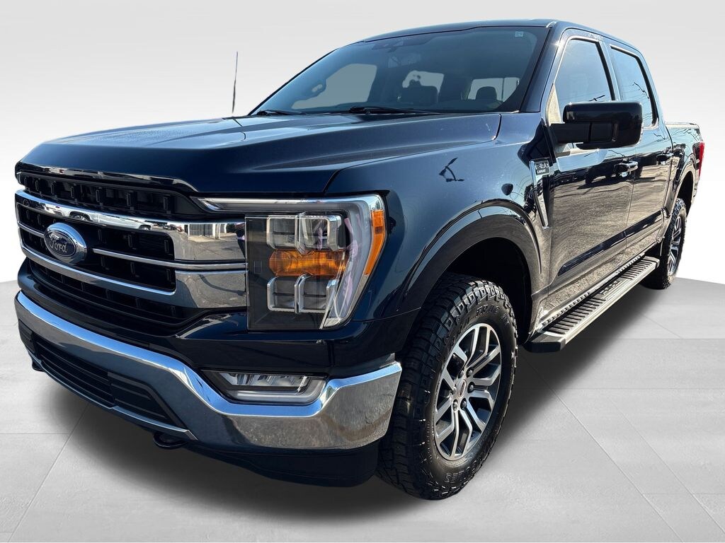 2022 Ford F-150 Lariat Antimatter Blue Metallic Lariat 4WD 10-Speed Automatic 5.0L V8 4WD, 18" Machined-Aluminum Wheels, 4-Wheel Disc Brakes, 6" Bright Polished Running Board, 7 Speakers, ABS brakes, Adjustable pedals, Air Conditioning, Alloy wheels, AM/FM radio: SiriusXM with 360L, Auto High-beam Headlights, Auto Start-Stop Removal, Auto-dimming door mirrors, Auto-dimming Rear-View mirror, Automatic temperature control, Brake assist, Bumpers: chrome, Class IV Trailer Hitch Receiver, Compass, Delay-off headlights, Driver door bin, Driver vanity mirror, Dual front impact airbags, Dual front side impact airbags, Electronic Stability Control, Emergency communication system: SYNC 4 911 Assist, Equipment Group 500A Standard, Exterior Parking Camera Rear, Front anti-roll bar, Front Center Armrest w/Storage, Front dual zone A/C, Front fog lights, Front reading lights, Front wheel independent suspension, Fully automatic headlights, Heated door mirrors, Heated front seats, Illuminated entry, Integrated Trailer Brake Controller, Leather-Trimmed 40/20/40 Front Seat, Leather-Trimmed Bucket Seats, Low tire pressure warning, Memory seat, Occupant sensing airbag, Onboard 400W Outlet, Outside temperature display, Overhead airbag, Overhead console, Panic alarm, Passenger door bin, Passenger vanity mirror, Pedal memory, Power door mirrors, Power driver seat, Power passenger seat, Power steering, Power windows, Pro Trailer Backup Assist, Radio data system, Radio: AM/FM SiriusXM w/360L, Rear reading lights, Rear seat center armrest, Rear step bumper, Rear window defroster, Remote keyless entry, Security system, Speed control, Speed-sensing steering, Split folding rear seat, Steering wheel mounted audio controls, SYNC 4 w/Enhanced Voice Recognition, Tachometer, Telescoping steering wheel, Tilt steering wheel, Traction control, Trailer Tow Package, Tray Style Floor Liner (47W), Trip computer, Turn signal indicator mirrors, Variably intermittent wipers, Ventilated front seats, Voltmeter, 4WD.