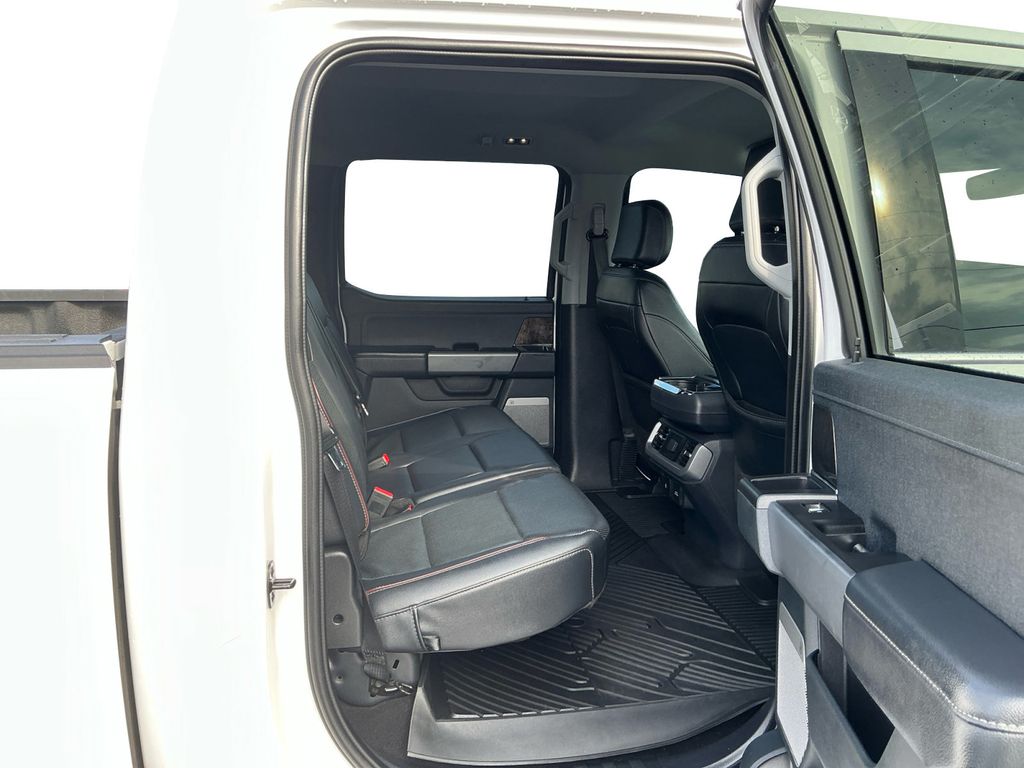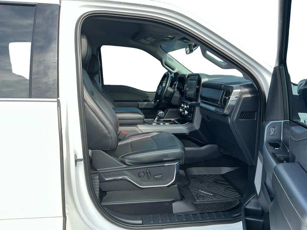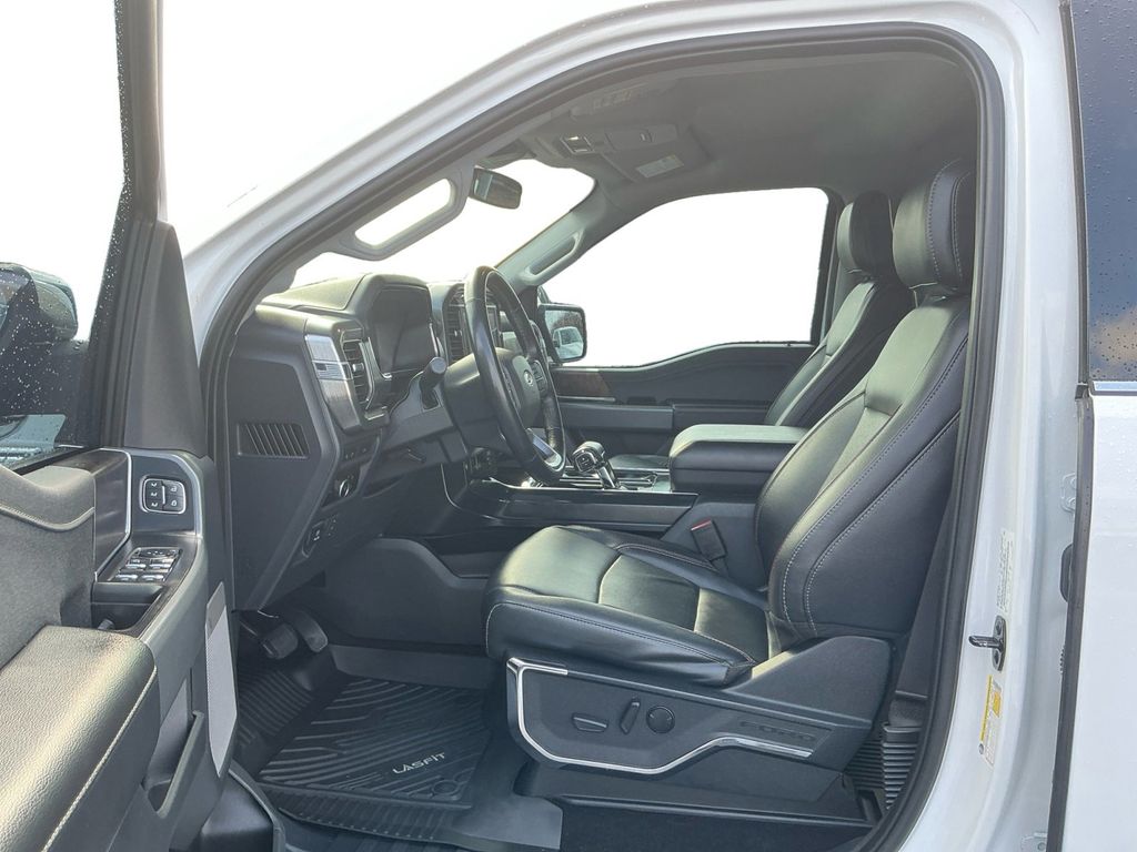 2023 Ford F-150 Lariat Oxford White Lariat 4WD 10-Speed Automatic 5.0L V8 4WD, 3.31 Axle Ratio, 4-Wheel Disc Brakes, 8 Speakers, ABS brakes, Adjustable pedals, Air Conditioning, Alloy wheels, AM/FM radio: SiriusXM with 360L, Auto High-beam Headlights, Auto-dimming door mirrors, Auto-dimming Rear-View mirror, Automatic temperature control, Brake assist, Bumpers: chrome, Chrome wheels, Class IV Trailer Hitch Receiver, Compass, Delay-off headlights, Driver door bin, Driver vanity mirror, Dual front impact airbags, Dual front side impact airbags, Electronic Stability Control, Emergency communication system: SYNC 4 911 Assist, Equipment Group 501A Standard, Exterior Parking Camera Rear, Front anti-roll bar, Front Bucket Seats, Front Center Armrest, Front dual zone A/C, Front fog lights, Front License Plate Bracket, Front reading lights, Front wheel independent suspension, Fully automatic headlights, Garage door transmitter, Heated door mirrors, Heated front seats, Heated steering wheel, Illuminated entry, Inclination/Intrusion Sensor Removal, Leather-Trimmed Bucket Seats, Low tire pressure warning, Memory seat, Occupant sensing airbag, Outside temperature display, Overhead airbag, Overhead console, Panic alarm, Passenger door bin, Passenger vanity mirror, Pedal memory, Power door mirrors, Power driver seat, Power passenger seat, Power steering, Power windows, Radio data system, Radio: B&O Sound System by Bang & Olufsen, Rear reading lights, Rear seat center armrest, Rear step bumper, Rear window defroster, Remote keyless entry, Security system, Speed control, Speed-sensing steering, Split folding rear seat, Steering Wheel Heat Removal (DISC), Steering wheel mounted audio controls, SYNC 4 w/Enhanced Voice Recognition, Tachometer, Telescoping steering wheel, Tilt steering wheel, Traction control, Trip computer, Turn signal indicator mirrors, Variably intermittent wipers, Ventilated front seats, Voltmeter, Wheels: 18" Chrome-Like PVD, 4WD.