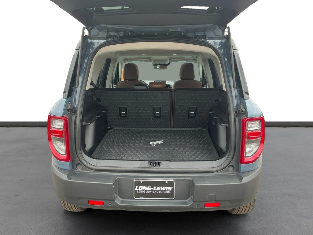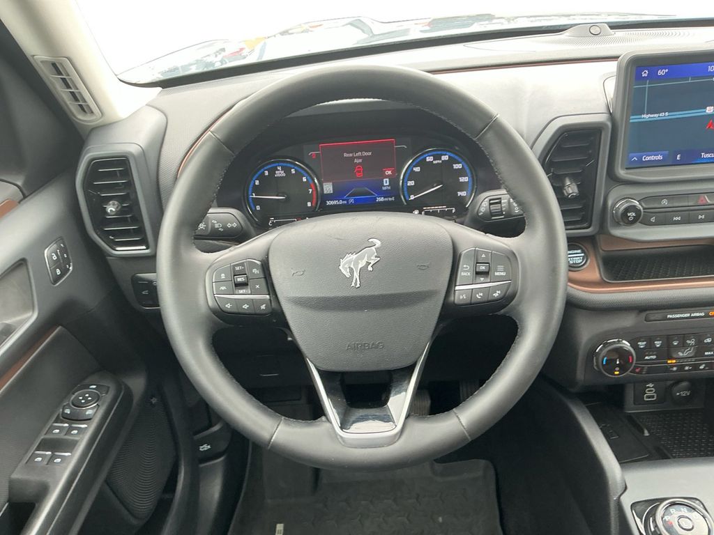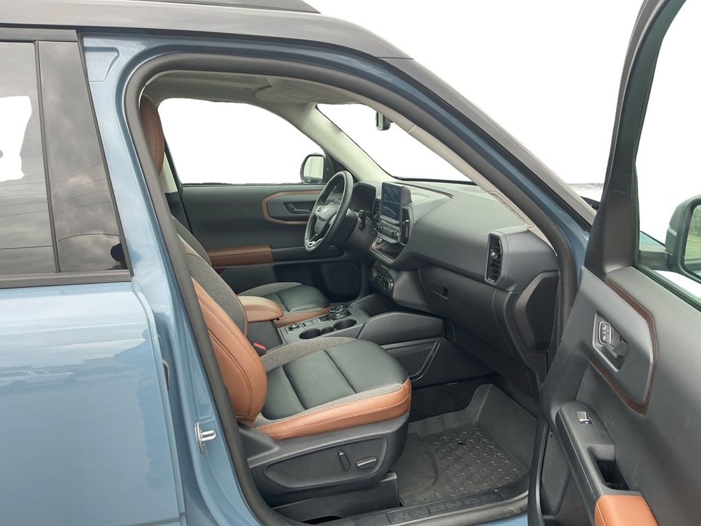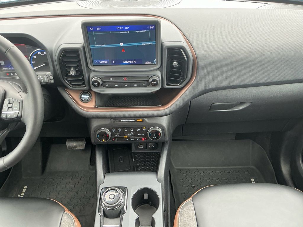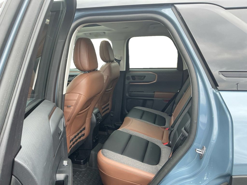 2024 Ford Bronco Sport Outer Banks Azure Gray Metallic Outer Banks 4WD 8-Speed Automatic 1.5L EcoBoost 3.80 Axle Ratio, 4-Wheel Disc Brakes, 6 Speakers, ABS brakes, Air Conditioning, Alloy wheels, AM/FM radio: SiriusXM, AM/FM Stereo, Auto High-beam Headlights, Auto-dimming Rear-View mirror, Automatic temperature control, Brake assist, Cargo Management System, Cargo Mat, Compass, Delay-off headlights, Driver door bin, Driver vanity mirror, Dual front impact airbags, Dual front side impact airbags, Electronic Stability Control, Emergency communication system: SYNC 3 911 Assist, Equipment Group 300A, Evasive Steering Assist, Ford Co-Pilot360 Assist+, Four wheel independent suspension, Front & Rear Floor Liners w/o Carpet Mats, Front anti-roll bar, Front Bucket Seats, Front Center Armrest, Front dual zone A/C, Front fog lights, Front License Plate Bracket, Front reading lights, Fully automatic headlights, HD Radio, Heated door mirrors, Heated front seats, Heated steering wheel, Illuminated entry, Intelligent Adaptive Cruise Control w/Stop & Go, Knee airbag, Low tire pressure warning, Memory seat, Occupant sensing airbag, Outside temperature display, Overhead airbag, Overhead console, Panic alarm, Passenger door bin, Passenger vanity mirror, Power door mirrors, Power driver seat, Power Moonroof, Power passenger seat, Power steering, Power windows, Premium-Trimmed Heated Sport Contour Bucket Seats, Radio data system, Rain sensing wipers, Rear anti-roll bar, Rear Parking Sensors, Rear reading lights, Rear seat center armrest, Rear window defroster, Rear window wiper, Remote keyless entry, Security system, SiriusXM, Speed control, Speed-sensing steering, Speed-Sensitive Wipers, Split folding rear seat, Steering wheel mounted audio controls, SYNC 3 Communications & Entertainment System, Tachometer, Tech Package, Telescoping steering wheel, Tilt steering wheel, Traction control, Trip computer, Universal Garage Door Opener (UGDO), Variably intermittent wipers, Voice-Activated Touchscreen Navigation System, Wheels: 18" Ebony Black-Painted Aluminum, Wireless Charging Pad.