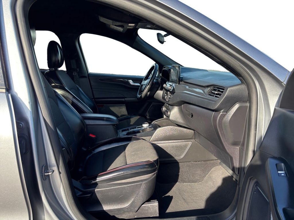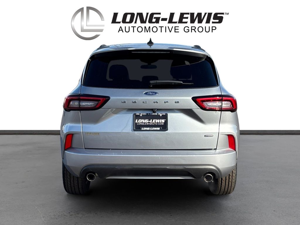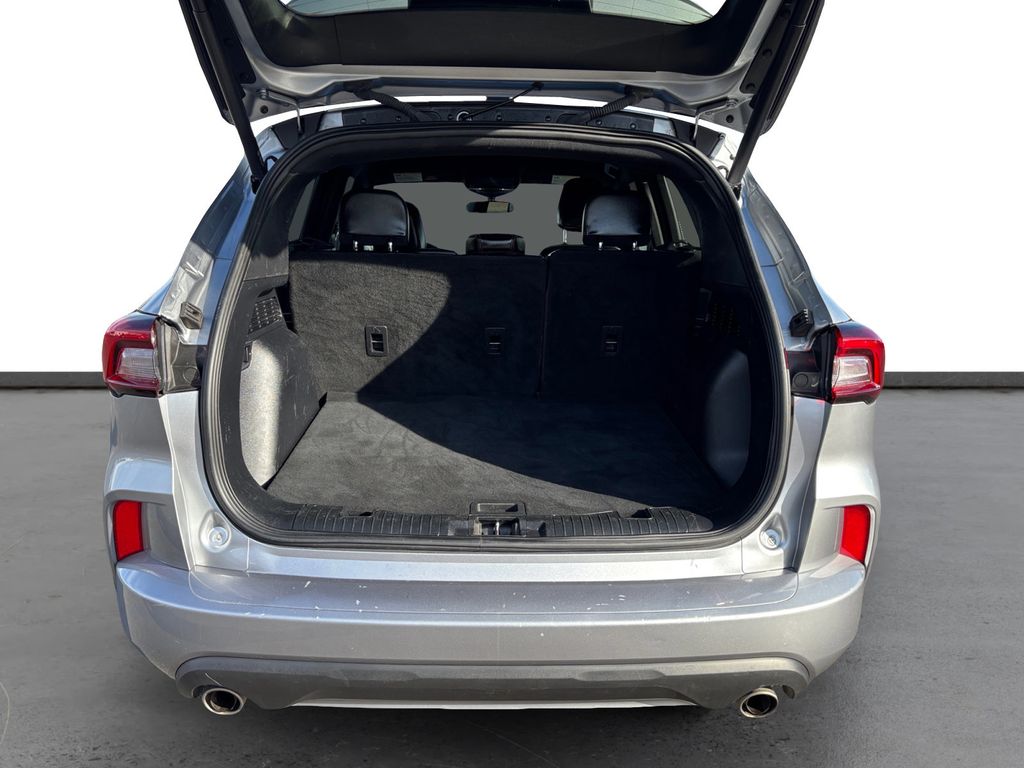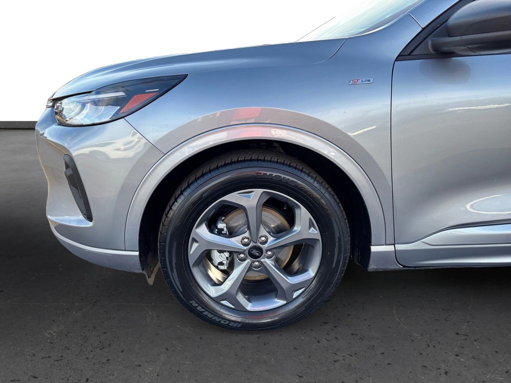 2024 Ford Escape Hybrid ST-Line Iconic Silver Metallic ST-Line FWD eCVT 2.5L iVCT 2.5L iVCT, 4-Wheel Disc Brakes, 6 Speakers, ABS brakes, Air Conditioning, Alloy wheels, AM/FM radio: SiriusXM, AM/FM Stereo, Auto High-beam Headlights, Automatic temperature control, Brake assist, Bumpers: body-color, Cold Weather Package, Compass, Delay-off headlights, Driver door bin, Driver vanity mirror, Dual front impact airbags, Dual front side impact airbags, Electronic Fuel Door Release, Electronic Stability Control, Emergency communication system: SYNC 4 911 Assist, Equipment Group 301A, Exterior Parking Camera Rear, FordPass Connect, Four wheel independent suspension, Front anti-roll bar, Front Bucket Seats, Front Center Armrest, Front dual zone A/C, Front License Plate Bracket, Front reading lights, Fully automatic headlights, Heated Front Row Seats, Heated Sideview Mirrors, Heated Steering Wheel, Illuminated entry, Knee airbag, Low tire pressure warning, Neutral Towing Capability, Occupant sensing airbag, Outside temperature display, Overhead airbag, Overhead console, Panic alarm, Passenger door bin, Passenger vanity mirror, Pedestrian Alert Sounder, Power door mirrors, Power driver seat, Power Liftgate, Power steering, Power windows, Radio data system, Rear anti-roll bar, Rear reading lights, Rear seat center armrest, Rear window defroster, Rear window wiper, Remote keyless entry, Remote Starter System, Roof rack: rails only, Speed control, Speed-sensing steering, Speed-Sensitive Wipers, Split folding rear seat, Spoiler, Sport steering wheel, Steering wheel mounted audio controls, SYNC 4, Tachometer, Telescoping steering wheel, Tilt steering wheel, Traction control, Trip computer, Variably intermittent wipers, Vinyl/Cloth Front Sport Contour Bucket Seats, Wheels: 18" Rock Metallic Painted Aluminum, 2.5L iVCT.