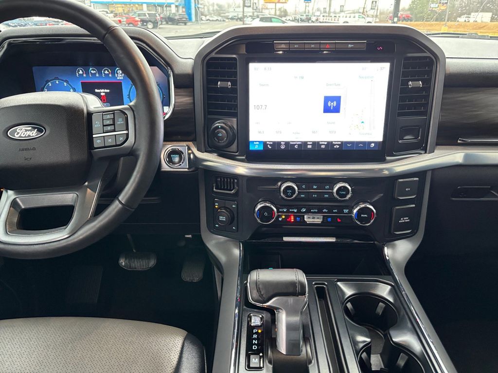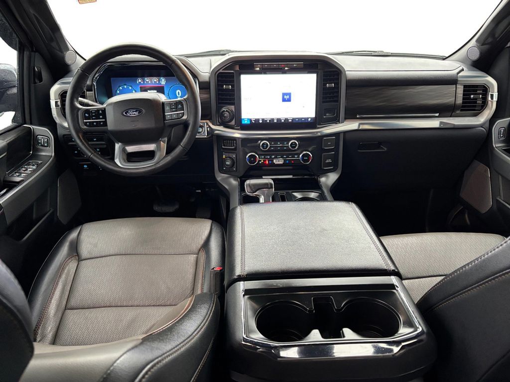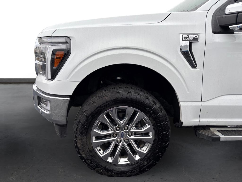 2024 Ford F-150 Lariat Oxford White Lariat 4WD 10-Speed Automatic 5.0L V8 4WD, 3.31 Axle Ratio, 4-Wheel Disc Brakes, 8 Speakers, ABS brakes, Adjustable pedals, Air Conditioning, Alloy wheels, AM/FM radio: SiriusXM with 360L, Auto High-beam Headlights, Auto-dimming door mirrors, Auto-dimming Rear-View mirror, Automatic temperature control, Brake assist, Bumpers: chrome, Chrome wheels, Compass, Delay-off headlights, Driver door bin, Driver vanity mirror, Dual front impact airbags, Dual front side impact airbags, Electronic Stability Control, Emergency communication system: SYNC 4 911 Assist, Equipment Group 501A Standard, Front anti-roll bar, Front Bucket Seats, Front Center Armrest, Front dual zone A/C, Front fog lights, Front reading lights, Front wheel independent suspension, Fully automatic headlights, Garage door transmitter, Heated door mirrors, Heated front seats, Heated steering wheel, Illuminated entry, Leather-Trimmed Bucket Seats, Low tire pressure warning, Memory seat, Navigation system: Connected Navigation, Occupant sensing airbag, Outside temperature display, Overhead airbag, Overhead console, Panic alarm, Passenger door bin, Passenger vanity mirror, Pedal memory, Power door mirrors, Power driver seat, Power passenger seat, Power steering, Power windows, Radio data system, Radio: B&O Sound System by Bang & Olufsen, Rain sensing wipers, Rear reading lights, Rear seat center armrest, Rear step bumper, Rear window defroster, Remote keyless entry, Security system, Speed control, Split folding rear seat, Steering wheel mounted audio controls, SYNC 4 w/Enhanced Voice Recognition, Tachometer, Telescoping steering wheel, Tilt steering wheel, Traction control, Trip computer, Turn signal indicator mirrors, Twin Panel Moonroof, Variably intermittent wipers, Ventilated front seats, Voltmeter, Wheels: 20" Chrome-Like PVD, 4WD.