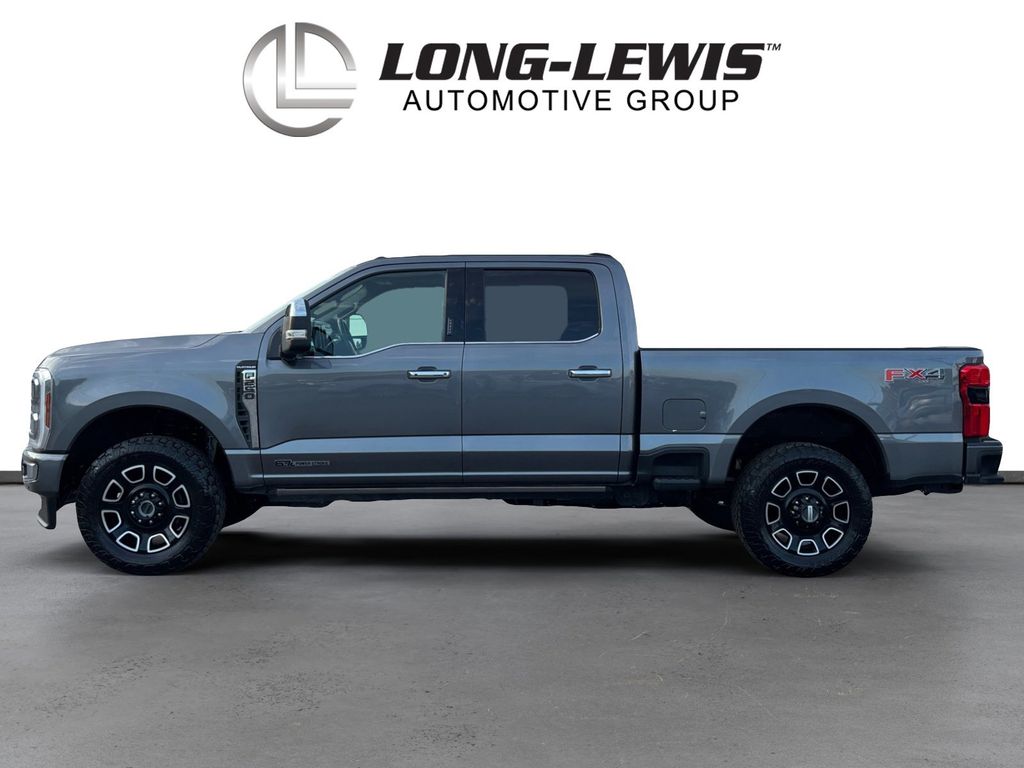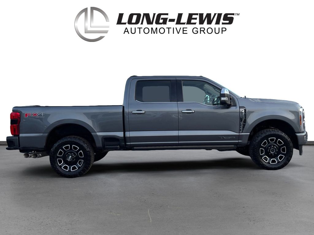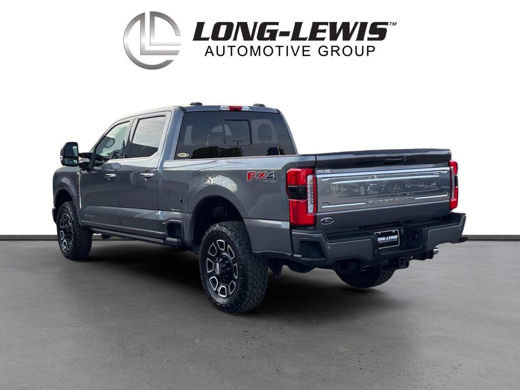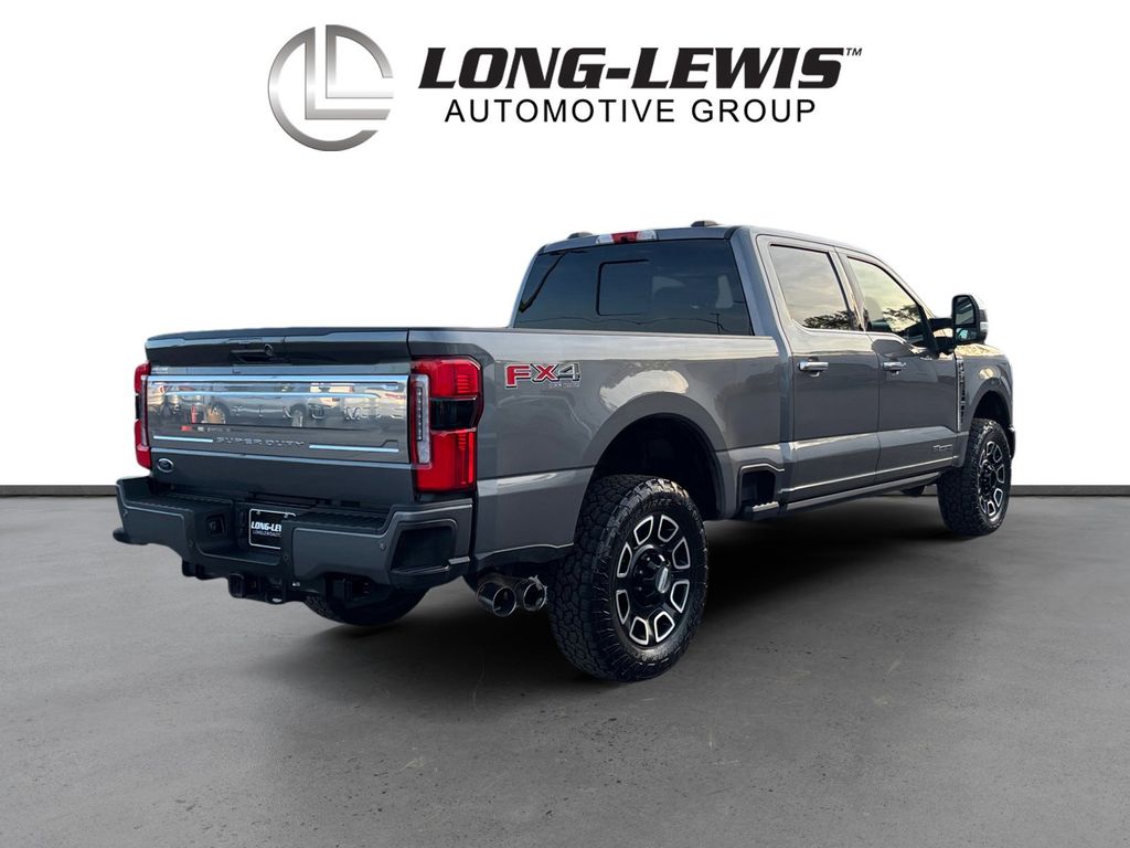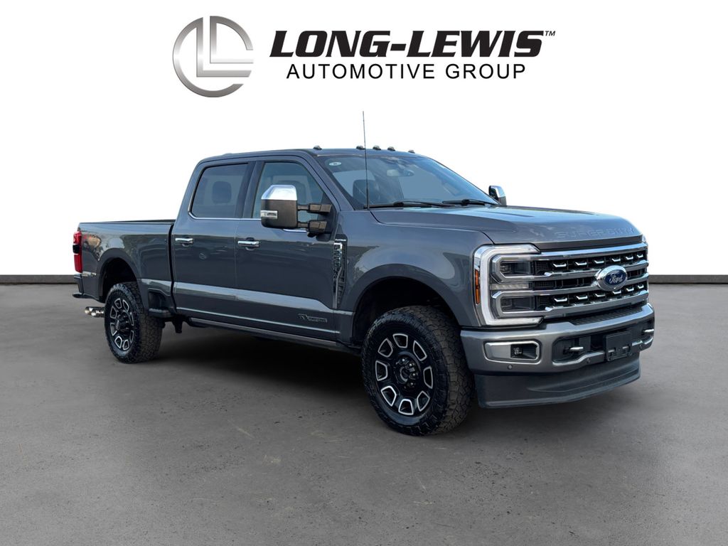 2024 Ford F-250SD Platinum Gray Metallic Platinum 4WD 10-Speed Automatic Power Stroke 6.7L V8 DI 32V OHV Turbodiesel 4WD, 4-Wheel Disc Brakes, 5th Wheel/Gooseneck Hitch Prep Package, ABS brakes, Adjustable pedals, Air Conditioning, Alloy wheels, AM/FM radio: SiriusXM with 360L, Auto High-beam Headlights, Auto tilt-away steering wheel, Auto-dimming Rear-View mirror, Automatic temperature control, Brake assist, Compass, Delay-off headlights, Driver door bin, Driver vanity mirror, Dual front impact airbags, Dual front side impact airbags, Electronic Stability Control, Emergency communication system: SYNC 4 911 Assist, Engine Block Heater, Exterior Parking Camera Rear, F-250 >10K GVWR Package, Flow-Through Console, Front anti-roll bar, Front Bucket Seats, Front Center Armrest, Front dual zone A/C, Front fog lights, Front License Plate Bracket, Front reading lights, Fully automatic headlights, FX4 Off-Road Package, Garage door transmitter, Heated door mirrors, Heated front seats, Heated rear seats, Heated steering wheel, Hill Descent Control, Illuminated entry, Leather steering wheel, LED Roof Clearance Lights, Low tire pressure warning, Memory seat, Navigation system: Connected Navigation (includes complimentary 1-year trial), Off-Road Specifically Tuned Shock Absorbers, Outside temperature display, Overhead airbag, Overhead console, Panic alarm, Passenger door bin, Passenger vanity mirror, Pedal memory, Power door mirrors, Power driver seat, Power passenger seat, Power steering, Power windows, Radio: B&O Unleashed Sound System by Bang & Olufsen, Rain sensing wipers, Rapid-Heat Supplemental Cab Heater, Rear reading lights, Rear seat center armrest, Rear step bumper, Rear window defroster, Remote keyless entry, Security system, SiriusXM Radio w/360L, Speed control, Split folding rear seat, Steering wheel memory, Steering wheel mounted audio controls, SYNC 4 w/Enhanced Voice Recognition, Tachometer, Telescoping steering wheel, Tilt steering wheel, Traction control, Trip computer, Turn signal indicator mirrors, Twin Panel Power Moonroof, Unique FX4 Off-Road Box Decal, Variably intermittent wipers, Ventilated front seats, 4WD.