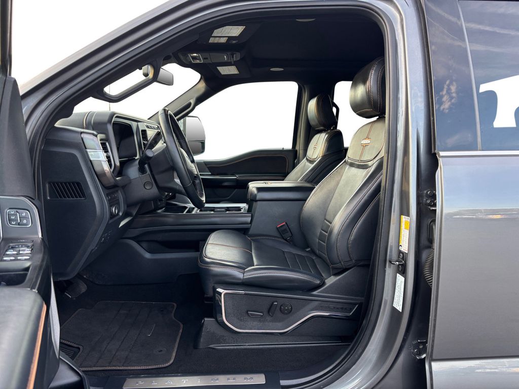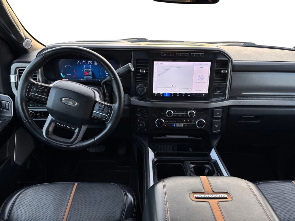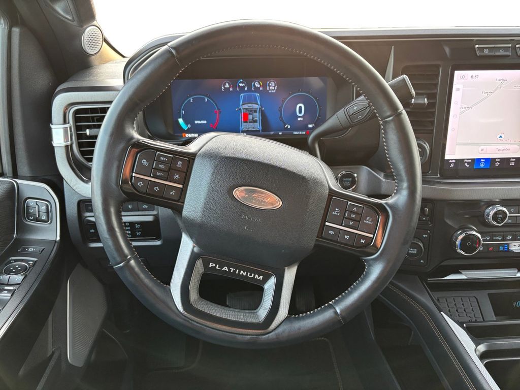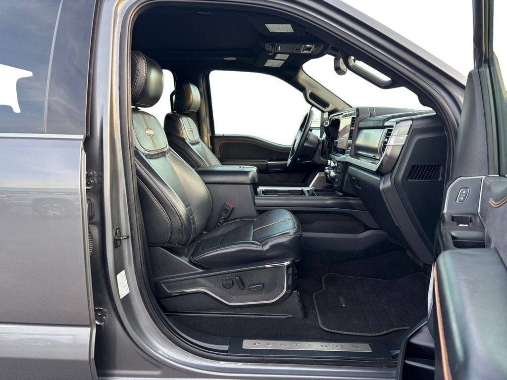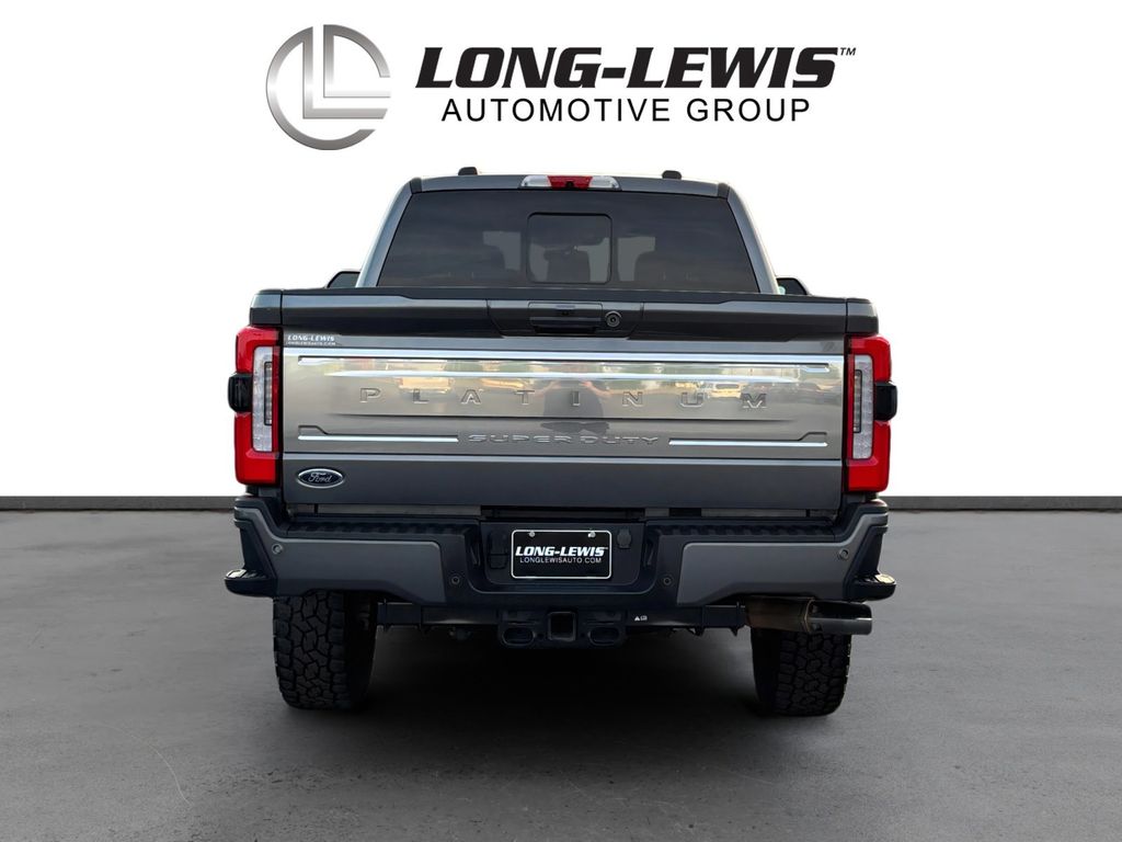 2024 Ford F-250SD Platinum Gray Metallic Platinum 4WD 10-Speed Automatic Power Stroke 6.7L V8 DI 32V OHV Turbodiesel 4WD, 4-Wheel Disc Brakes, 5th Wheel/Gooseneck Hitch Prep Package, ABS brakes, Adjustable pedals, Air Conditioning, Alloy wheels, AM/FM radio: SiriusXM with 360L, Auto High-beam Headlights, Auto tilt-away steering wheel, Auto-dimming Rear-View mirror, Automatic temperature control, Brake assist, Compass, Delay-off headlights, Driver door bin, Driver vanity mirror, Dual front impact airbags, Dual front side impact airbags, Electronic Stability Control, Emergency communication system: SYNC 4 911 Assist, Engine Block Heater, Exterior Parking Camera Rear, F-250 >10K GVWR Package, Flow-Through Console, Front anti-roll bar, Front Bucket Seats, Front Center Armrest, Front dual zone A/C, Front fog lights, Front License Plate Bracket, Front reading lights, Fully automatic headlights, FX4 Off-Road Package, Garage door transmitter, Heated door mirrors, Heated front seats, Heated rear seats, Heated steering wheel, Hill Descent Control, Illuminated entry, Leather steering wheel, LED Roof Clearance Lights, Low tire pressure warning, Memory seat, Navigation system: Connected Navigation (includes complimentary 1-year trial), Off-Road Specifically Tuned Shock Absorbers, Outside temperature display, Overhead airbag, Overhead console, Panic alarm, Passenger door bin, Passenger vanity mirror, Pedal memory, Power door mirrors, Power driver seat, Power passenger seat, Power steering, Power windows, Radio: B&O Unleashed Sound System by Bang & Olufsen, Rain sensing wipers, Rapid-Heat Supplemental Cab Heater, Rear reading lights, Rear seat center armrest, Rear step bumper, Rear window defroster, Remote keyless entry, Security system, SiriusXM Radio w/360L, Speed control, Split folding rear seat, Steering wheel memory, Steering wheel mounted audio controls, SYNC 4 w/Enhanced Voice Recognition, Tachometer, Telescoping steering wheel, Tilt steering wheel, Traction control, Trip computer, Turn signal indicator mirrors, Twin Panel Power Moonroof, Unique FX4 Off-Road Box Decal, Variably intermittent wipers, Ventilated front seats, 4WD.
