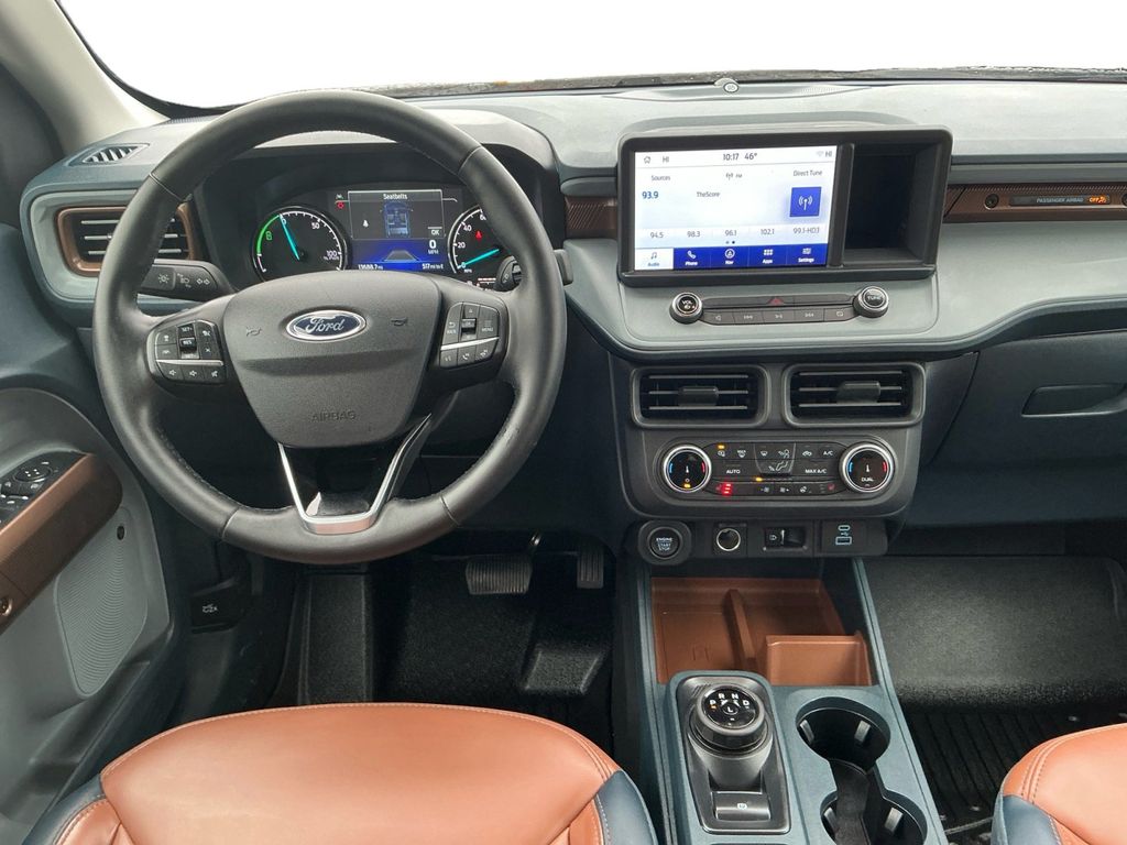 2024 Ford Maverick Lariat Carbonized Gray Metallic Lariat FWD CVT 2.5L I-4 Hybrid 2.5L I-4 Hybrid, 2.91 Axle Ratio, 4-Wheel Disc Brakes, 8 Speakers, ABS brakes, ActiveX Trimmed Front Bucket Seats, Air Conditioning, Alloy wheels, AM/FM radio: SiriusXM, Auto High-beam Headlights, Automatic temperature control, Brake assist, Bumpers: body-color, Compass, Delay-off headlights, Driver door bin, Driver vanity mirror, Dual front impact airbags, Dual front side impact airbags, Electronic Stability Control, Emergency communication system: 911 Assist, Equipment Group 500A Standard, Exterior Parking Camera Rear, Front anti-roll bar, Front Bucket Seats, Front Center Armrest, Front dual zone A/C, Front reading lights, Front wheel independent suspension, Fully automatic headlights, Heated door mirrors, Heated front seats, Heated steering wheel, Illuminated entry, Knee airbag, Low tire pressure warning, Navigation System, Occupant sensing airbag, Outside temperature display, Overhead airbag, Overhead console, Panic alarm, Passenger door bin, Passenger vanity mirror, Power door mirrors, Power driver seat, Power steering, Power windows, Radio data system, Radio: B&O Sound System by Bang & Olufsen, Rear anti-roll bar, Rear Parking Sensors, Rear seat center armrest, Rear step bumper, Remote keyless entry, Security system, SiriusXM Radio, Speed control, Speed-sensing steering, Steering wheel mounted audio controls, SYNC 3 Communications & Entertainment System, Telescoping steering wheel, Tilt steering wheel, Traction control, Trip computer, Wheels: 18" Machined-Face Bright Aluminum, 2.5L I-4 Hybrid.