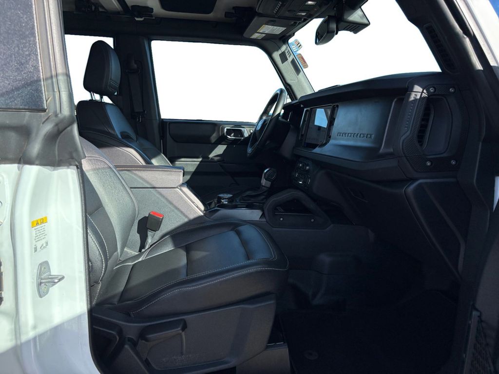 2025 Ford Bronco Badlands Oxford White Badlands 4WD 10-Speed Automatic 2.7L EcoBoost V6 2-Door Intelligent Access w/Lock/Unlock, 360-Degree Camera, 4-Wheel Disc Brakes, 4.7 Axle Ratio, 7 Speakers, ABS brakes, Adaptive Cruise Control, Air Conditioning, Alloy wheels, AM/FM radio: SiriusXM with 360L, AM/FM Stereo, Ambient Footwell Lighting, Auto High-Beam Headlamps, Auto High-beam Headlights, Auto-dimming Rear-View mirror, BLIS Blind Spot Information System, Brake assist, Compass, Connected Navigation, Delay-off headlights, Dr & Pass Illuminated Sliding Visor Vanity Mirrors, Driver door bin, Driver vanity mirror, Dual front impact airbags, Dual front side impact airbags, Dual Smart Charging USB Ports, Dual-Zone Electronic Automatic Temperature Control, Electronic Stability Control, Emergency communication system: 911 Assist, Equipment Group 334A Lux Package, Evasive Steering Assist, Exterior Parking Camera Rear, Front anti-roll bar, Front Bucket Seats, Front Center Armrest, Front fog lights, Front License Plate Bracket, Front Parking Sensors, Front reading lights, Front Row Heated Seats, Front wheel independent suspension, Fully automatic headlights, Hard Top Sound Deadening Headliner, Heated door mirrors, Heated front seats, Heated steering wheel, Illuminated entry, Information on Demand Panel, Integrated roll-over protection, Internet access capable: FordPass Connect, Lane-Keeping System, Leather Shift Knob, Low tire pressure warning, Marine Grade Vinyl Heated Bucket Seats, Occupant sensing airbag, Outside temperature display, Overhead airbag, Overhead console, Panic alarm, Passenger door bin, Passenger vanity mirror, Power door mirrors, Power Outlet - Back Side of Center Floor Console, Power steering, Power windows, Pre-Collision Assist w/Automatic Emergency Braking, Radio data system, Radio: B&O Sound System by Bang & Olufsen, Rear Parking Sensors, Rear-View Camera, Rear-Window Defroster & Washer, Remote keyless entry, Security system, Shadow Black Painted Hard Top, Sideview Mirrors, SiriusXM w/360L, Speed control, Split folding rear seat, Steering wheel mounted audio controls, SYNC 4, Tachometer, Telescoping steering wheel, Tilt steering wheel, Traction control, Trip computer, Universal Garage Door Opener, Variably intermittent wipers, Voltmeter, Wheels: 17" Carbonized Gray-Painted Aluminum.