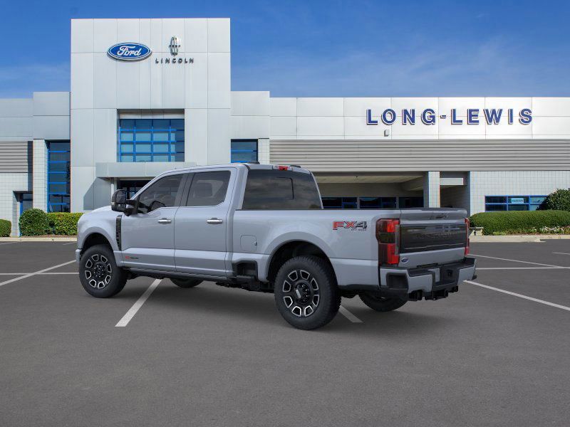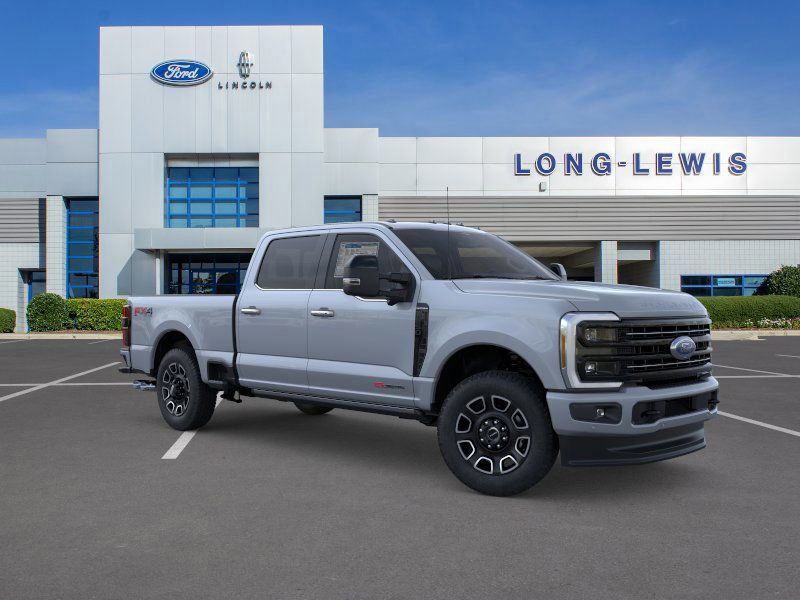 2025 Ford F-250SD Platinum Glacier Gray Metallic Tri-Coat Platinum 4WD 10-Speed Automatic 6.7L High Output Power Stroke V8 Diesel 4WD, 14 Speakers, 4-Wheel Disc Brakes, 410 Amp Dual Alternators, 5th Wheel/Gooseneck Hitch Prep Package, ABS brakes, Adjustable pedals, Air Conditioning, Alloy wheels, AM/FM radio: SiriusXM with 360L, Auto High-beam Headlights, Auto tilt-away steering wheel, Auto-dimming Rear-View mirror, Automatic temperature control, Brake assist, Bumpers: body-color, Compass, Delay-off headlights, Driver door bin, Driver vanity mirror, Dual front impact airbags, Dual front side impact airbags, Electronic Stability Control, Emergency communication system: SYNC 4 911 Assist, Engine Block Heater, Flow-Through Console, Front anti-roll bar, Front Bucket Seats, Front Center Armrest, Front dual zone A/C, Front fog lights, Front License Plate Bracket, Front reading lights, Fully automatic headlights, FX4 Off-Road Package, Garage door transmitter, GVWR: F-250 >10K Package, Heads-Up Display, Heated door mirrors, Heated front seats, Heated rear seats, Heated steering wheel, High Capacity 11.6" Axle Upgrade Package, Hill Descent Control, Illuminated entry, Internet access capable: FordPass Connect 5G, Leather steering wheel, LED Roof Clearance Lights, Low tire pressure warning, Max Recline Seats, Memory seat, Navigation System, Off-Road Specifically Tuned Shock Absorbers, Order Code 703A, Outside temperature display, Overhead airbag, Overhead console, Panic alarm, Passenger door bin, Passenger vanity mirror, Pedal memory, Power door mirrors, Power driver seat, Power passenger seat, Power steering, Power windows, Pro Power Onboard - 2kW, Radio: B&O Unleashed Sound System by Bang & Olufsen, Rain sensing wipers, Rapid-Heat Supplemental Cab Heater, Rear reading lights, Rear seat center armrest, Rear step bumper, Rear window defroster, Remote keyless entry, Security system, SiriusXM Radio with 360L, Speed control, Split folding rear seat, Steering wheel memory, Steering wheel mounted A/C controls, Steering wheel mounted audio controls, SYNC 4 with Enhanced Voice Recognition, Tachometer, Telescoping steering wheel, Tilt steering wheel, Traction control, Trip computer, Turn signal indicator mirrors, Twin Panel Power Moonroof, Unique FX4 Off-Road Box Decal, Unique Platinum Leather 40/Console/40 Seats, Upfitter Switches (6), Variably intermittent wipers, Ventilated front seats, Wheels: 20" Bright Machined and Painted Aluminum, 4WD.