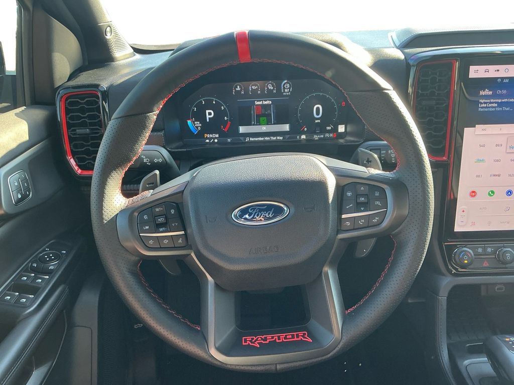 2025 Ford Ranger Raptor Carbonized Gray Metallic Raptor 4WD 10-Speed Automatic 3.0L EcoBoost V6 4WD, 10 Speakers, 4-Wheel Disc Brakes, 4.27 Axle Ratio, ABS brakes, Air Conditioning, Alloy wheels, AM/FM radio: SiriusXM, Auto High-beam Headlights, Auto-dimming Rear-View mirror, Automatic temperature control, Brake assist, Compass, Delay-off headlights, Driver door bin, Driver vanity mirror, Dual front impact airbags, Dual front side impact airbags, Electronic Stability Control, Emergency communication system: SYNC 4 911 Assist, Equipment Group 800A Standard, Front anti-roll bar, Front Bucket Seats, Front Center Armrest, Front dual zone A/C, Front fog lights, Front License Plate Bracket, Front reading lights, Front wheel independent suspension, Fully automatic headlights, Garage door transmitter, Heated door mirrors, Heated front seats, Heated steering wheel, Illuminated entry, Internet access capable: FordPass Connect 4G, Leather Shift Knob, Leather steering wheel, Leather-Trimmed Front Heated Bucket Seats, Low tire pressure warning, Memory seat, Navigation system: Connected Navigation, Occupant sensing airbag, Outside temperature display, Overhead airbag, Overhead console, Panic alarm, Passenger door bin, Passenger vanity mirror, Power door mirrors, Power driver seat, Power passenger seat, Power steering, Power windows, Radio: B&O Sound System by Bang & Olufsen, Rain sensing wipers, Rear reading lights, Rear seat center armrest, Rear step bumper, Rear window defroster, Remote keyless entry, Security system, SiriusXM Satellite Radio, Speed control, Speed-sensing steering, Steering wheel mounted audio controls, SYNC 4A, Telescoping steering wheel, Tilt steering wheel, Traction control, Trip computer, Turn signal indicator mirrors, Variably intermittent wipers, Voltmeter, Wheels: 17" Gray-Painted Aluminum, 4WD.