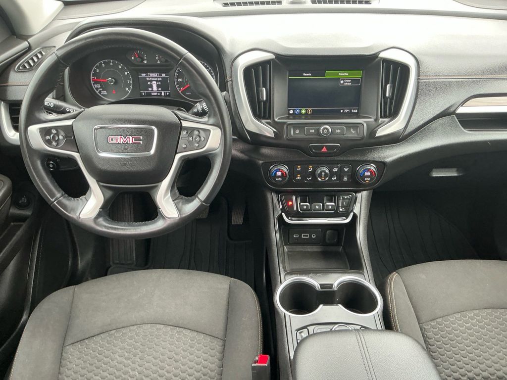 2018 GMC Terrain SLE Summit White SLE FWD 9-Speed Automatic 1.5L DOHC 2 USB Data Ports w/Auxiliary Input Jack, 3.47 Axle Ratio, 4-Way Manual Driver's Seat, 4-Way Manual Front Passenger Seat, 4-Wheel Disc Brakes, 6 Speakers, 6-Speaker Audio System Feature, 8-Way Power Driver Seat Adjuster, ABS brakes, Air Conditioning, Alloy wheels, AM/FM radio, Apple CarPlay/Android Auto, Auto-dimming Rear-View mirror, Bluetooth® For Phone, Brake assist, Bumpers: body-color, Compass, Delay-off headlights, Driver & Front Passenger Heated Seats, Driver Convenience Package, Driver door bin, Driver vanity mirror, Dual front impact airbags, Dual front side impact airbags, Dual-Zone Automatic Climate Control, Electronic Stability Control, Emergency communication system: OnStar Guidance, Exterior Parking Camera Rear, Four wheel independent suspension, Front anti-roll bar, Front Bucket Seats, Front Center Armrest, Front reading lights, Fully automatic headlights, Heated door mirrors, High-Intensity Discharge Headlights, Illuminated entry, Low tire pressure warning, Occupant sensing airbag, Outside temperature display, Overhead airbag, Overhead console, Panic alarm, Passenger door bin, Passenger vanity mirror, Power door mirrors, Power Driver Lumbar Control, Power Programmable Rear Liftgate, Power steering, Power windows, Preferred Equipment Group 3SA, Premium Cloth Seat Trim, Radio data system, Radio: GMC Infotainment Audio System w/7" Display, Rear anti-roll bar, Rear seat center armrest, Rear window defroster, Rear window wiper, Remote keyless entry, Remote Start, Roof-Mounted Luggage Rack Black Side Rails, Security system, Speed control, Speed-sensing steering, Split folding rear seat, Spoiler, Steering wheel mounted audio controls, Tachometer, Telescoping steering wheel, Tilt steering wheel, Traction control, Trip computer, Variably intermittent wipers, Wheels: 17" x 7" Silver Painted Aluminum.