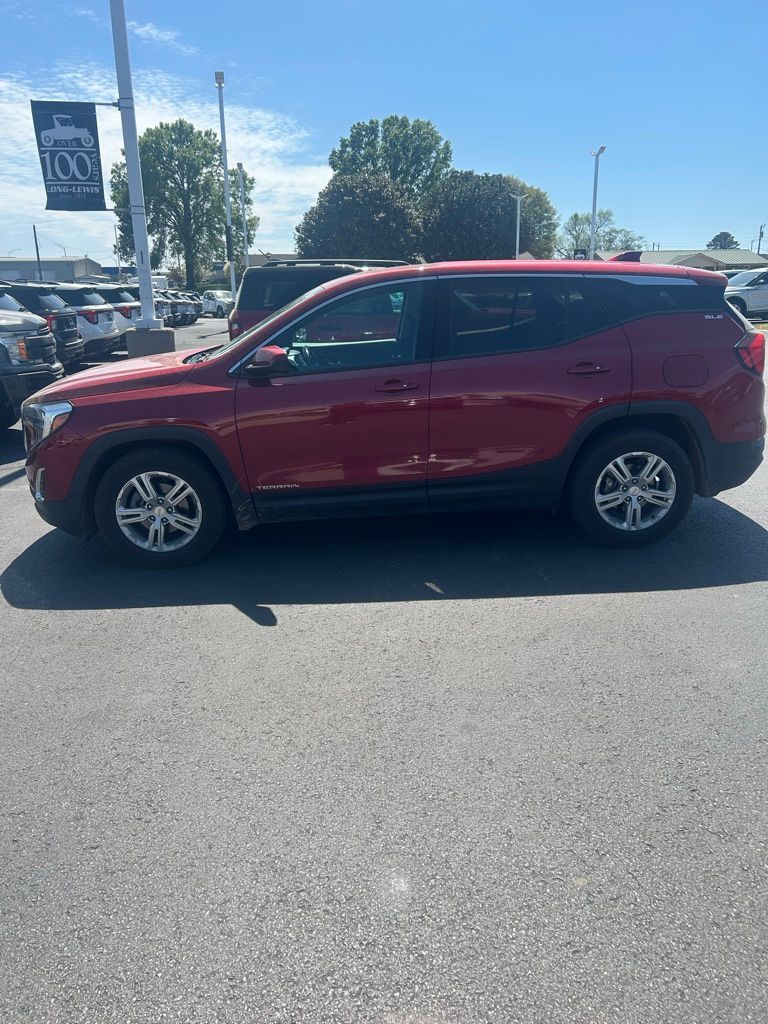 2019 GMC Terrain SLE Red Quartz Tintcoat SLE FWD 9-Speed Automatic 1.5L DOHC 2 USB Data Ports w/Auxiliary Input Jack, 3.47 Axle Ratio, 4-Way Manual Driver's Seat, 4-Way Manual Front Passenger Seat, 4-Wheel Disc Brakes, 6 Speakers, 6-Speaker Audio System Feature, ABS brakes, Air Conditioning, Alloy wheels, AM/FM radio, Apple CarPlay/Android Auto, Auto-dimming Rear-View mirror, Bluetooth® For Phone, Brake assist, Bumpers: body-color, Compass, Delay-off headlights, Driver door bin, Driver vanity mirror, Dual front impact airbags, Dual front side impact airbags, Electronic Stability Control, Emergency communication system, Exterior Parking Camera Rear, Four wheel independent suspension, Front anti-roll bar, Front Bucket Seats, Front Center Armrest, Front reading lights, Fully automatic headlights, Heated door mirrors, High-Intensity Discharge Headlights, Illuminated entry, Low tire pressure warning, Occupant sensing airbag, Outside temperature display, Overhead airbag, Overhead console, Panic alarm, Passenger door bin, Passenger vanity mirror, Power door mirrors, Power steering, Power windows, Preferred Equipment Group 3SA, Premium Cloth Seat Trim, Radio data system, Radio: GMC Infotainment Audio System w/7" Display, Rear anti-roll bar, Rear seat center armrest, Rear window defroster, Rear window wiper, Remote keyless entry, Security system, Speed control, Speed-sensing steering, Split folding rear seat, Spoiler, Steering wheel mounted audio controls, Tachometer, Telescoping steering wheel, Tilt steering wheel, Traction control, Trip computer, Variably intermittent wipers, Wheels: 17" x 7" Silver Painted Aluminum.