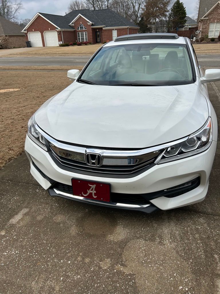 2017 Honda Accord EX-L White EX-L FWD CVT 2.4L I4 DOHC i-VTEC 16V Leather, 17" Alloy Wheels, 4-Wheel Disc Brakes, 7 Speakers, ABS brakes, Air Conditioning, Alloy wheels, AM/FM radio: SiriusXM, Apple CarPlay/Android Auto, Auto-dimming Rear-View mirror, Automatic temperature control, Brake assist, Bumpers: body-color, CD player, Compass, Delay-off headlights, Driver door bin, Driver vanity mirror, Dual front impact airbags, Dual front side impact airbags, Electronic Stability Control, Emergency communication system: HondaLink, Exterior Parking Camera Rear, Four wheel independent suspension, Front anti-roll bar, Front Bucket Seats, Front Center Armrest, Front dual zone A/C, Front fog lights, Front reading lights, Fully automatic headlights, Garage door transmitter: HomeLink, Heated door mirrors, Heated Front Bucket Seats, Heated front seats, Illuminated entry, Leather-Trimmed Seats, Low tire pressure warning, Memory seat, Occupant sensing airbag, Outside temperature display, Overhead airbag, Overhead console, Panic alarm, Passenger door bin, Passenger vanity mirror, Power door mirrors, Power driver seat, Power moonroof, Power passenger seat, Power steering, Power windows, Radio data system, Radio: 360-Watt AM/FM/HD Premium Audio System, Rear anti-roll bar, Rear seat center armrest, Rear window defroster, Remote keyless entry, Security system, Speed control, Speed-sensing steering, Speed-Sensitive Wipers, Split folding rear seat, Steering wheel mounted audio controls, Tachometer, Telescoping steering wheel, Tilt steering wheel, Traction control, Trip computer, Turn signal indicator mirrors, Variably intermittent wipers, Leather.