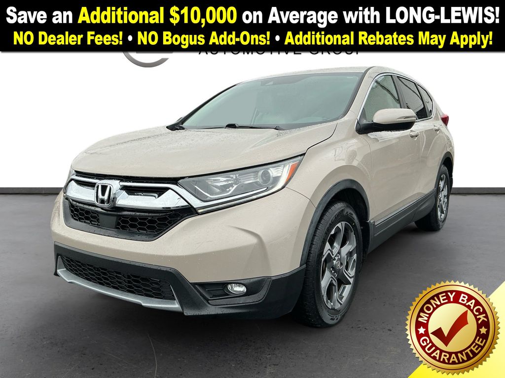 2018 Honda CR-V EX Beige EX FWD CVT 1.5L I4 DOHC 16V 18" Alloy Wheels, 4-Wheel Disc Brakes, 5.64 Axle Ratio, 6 Speakers, ABS brakes, Air Conditioning, Alloy wheels, AM/FM radio: SiriusXM, Apple CarPlay/Android Auto, Auto High-beam Headlights, Automatic temperature control, Blind Spot Information (BSI) System warning, Brake assist, Bumpers: body-color, Cloth Seat Trim, Compass, Delay-off headlights, Driver door bin, Driver vanity mirror, Dual front impact airbags, Dual front side impact airbags, Electronic Stability Control, Exterior Parking Camera Rear, Four wheel independent suspension, Front anti-roll bar, Front Bucket Seats, Front Center Armrest, Front dual zone A/C, Front fog lights, Front reading lights, Fully automatic headlights, Heated door mirrors, Heated Front Bucket Seats, Heated front seats, Illuminated entry, Low tire pressure warning, Occupant sensing airbag, Outside temperature display, Overhead airbag, Overhead console, Panic alarm, Passenger door bin, Passenger vanity mirror, Power door mirrors, Power driver seat, Power moonroof, Power steering, Power windows, Radio data system, Radio: AM/FM Audio System w/6 Speakers, Rear anti-roll bar, Rear seat center armrest, Rear window defroster, Rear window wiper, Remote keyless entry, Security system, Speed control, Speed-sensing steering, Speed-Sensitive Wipers, Split folding rear seat, Spoiler, Steering wheel mounted audio controls, Tachometer, Telescoping steering wheel, Tilt steering wheel, Traction control, Trip computer, Turn signal indicator mirrors, Variably intermittent wipers.