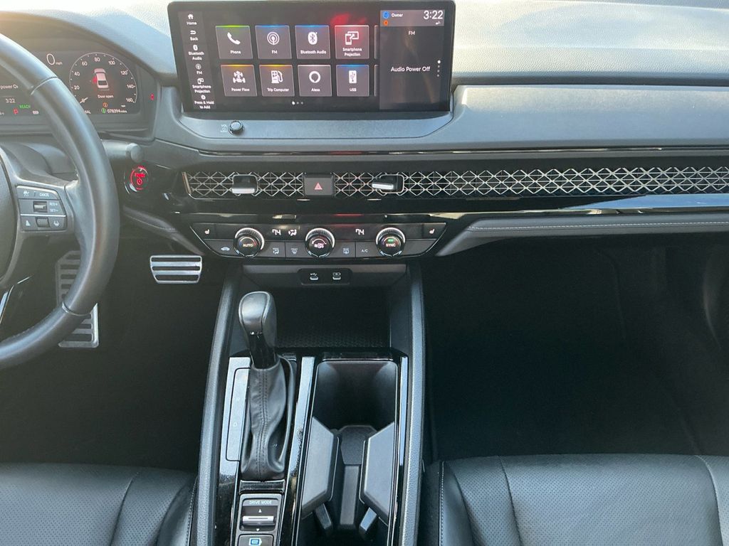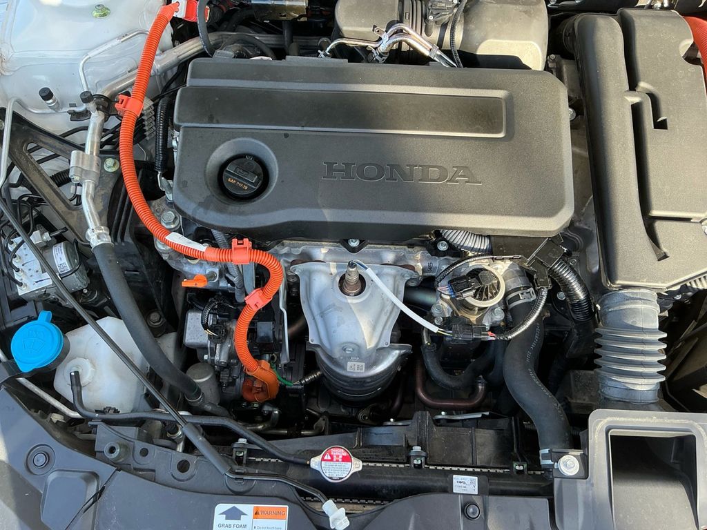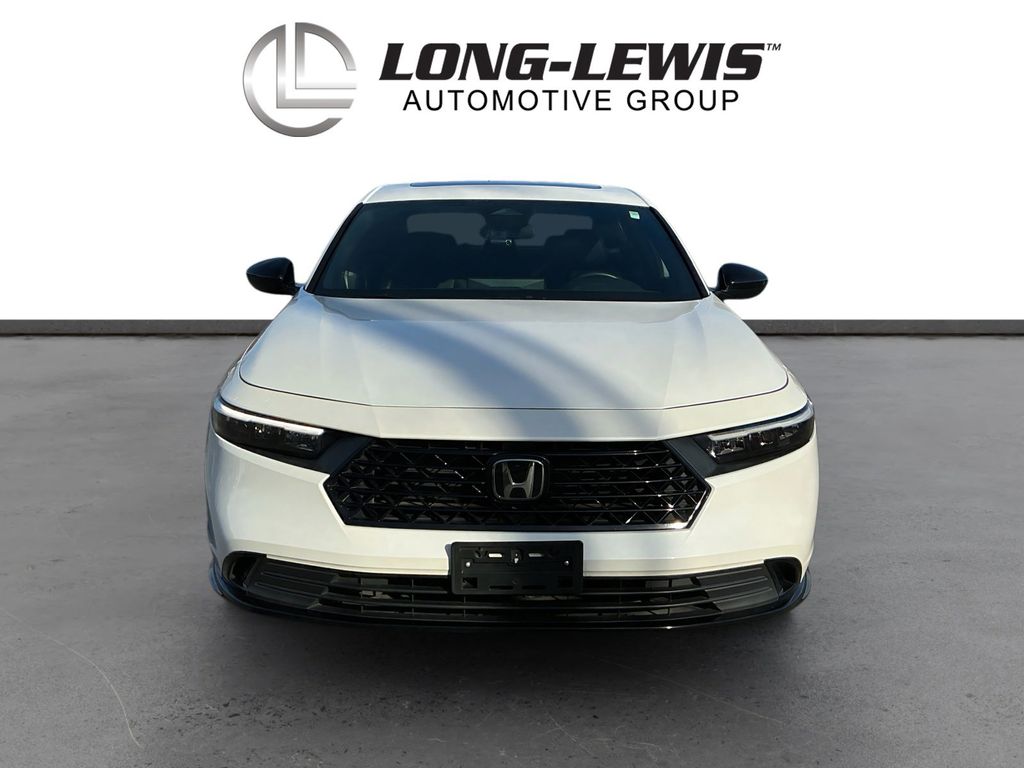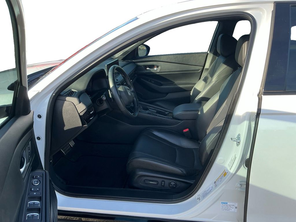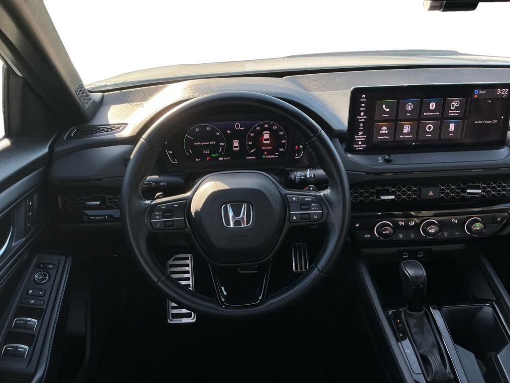 2023 Honda Accord Hybrid Sport-L White Sport-L FWD eCVT 2.0L 16V DOHC 2.0L 16V DOHC, 4-Wheel Disc Brakes, 8 Speakers, ABS brakes, Adaptive Cruise Control: Adaptive Cruise Control (ACC) with Low-Speed Follow, Air Conditioning, Alloy wheels, AM/FM radio, Apple CarPlay/Android Auto, Auto High-beam Headlights, Automatic temperature control, Brake assist, Bumpers: body-color, Compass, Delay-off headlights, Driver door bin, Driver vanity mirror, Dual front impact airbags, Dual front side impact airbags, Electronic Stability Control, Emergency communication system: HondaLink, Exterior Parking Camera Rear, Four wheel independent suspension, Front anti-roll bar, Front Bucket Seats, Front Center Armrest, Front dual zone A/C, Front reading lights, Fully automatic headlights, Heated Front Bucket Seats, Heated front seats, Illuminated entry, Knee airbag, Lane departure: Lane Keeping Assist System (LKAS) active, Leather Shift Knob, Leather steering wheel, Leather-Trimmed Seat Trim, Low tire pressure warning, Memory seat, Occupant sensing airbag, Outside temperature display, Overhead airbag, Overhead console, Panic alarm, Passenger door bin, Passenger vanity mirror, Power door mirrors, Power driver seat, Power moonroof, Power passenger seat, Power steering, Power windows, Radio data system, Radio: 180-Watt Audio System, Rear anti-roll bar, Rear reading lights, Rear seat center armrest, Rear side impact airbag, Rear window defroster, Remote keyless entry, Security system, Speed control, Speed-sensing steering, Speed-Sensitive Wipers, Split folding rear seat, Spoiler, Steering wheel mounted audio controls, Telescoping steering wheel, Tilt steering wheel, Traction control, Trip computer, Variably intermittent wipers, Wheels: 19" x 8.5J Matte Berlina Black, 2.0L 16V DOHC.