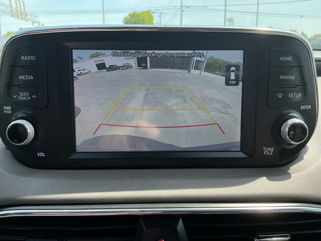 2020 Hyundai Santa Fe SEL Stormy Blue SEL FWD 8-Speed Automatic with SHIFTRONIC 2.4L I4 DGI DOHC 16V LEV3-ULEV70 185hp Espresso/Gray Cloth, 17" x 7.0J Alloy Wheels, 4-Wheel Disc Brakes, 6 Speakers, ABS brakes, Air Conditioning, Alloy wheels, AM/FM radio: SiriusXM, Apple CarPlay & Android Auto, Auto High-beam Headlights, Axle Ratio 3.798, Brake assist, Bumpers: body-color, Carpeted Floor Mats, Delay-off headlights, Driver door bin, Driver vanity mirror, Dual front impact airbags, Dual front side impact airbags, Electronic Stability Control, Emergency communication system, Exterior Parking Camera Rear, Four wheel independent suspension, Front anti-roll bar, Front Bucket Seats, Front Center Armrest, Front fog lights, Front reading lights, Fully automatic headlights, Heated door mirrors, Heated Front Bucket Seats, Heated front seats, Illuminated entry, Low tire pressure warning, Occupant sensing airbag, Option Group 01, Outside temperature display, Overhead airbag, Overhead console, Panic alarm, Passenger door bin, Passenger vanity mirror, Power door mirrors, Power driver seat, Power steering, Power windows, Radio: AM/FM/MP3 Display Audio, Rear anti-roll bar, Rear seat center armrest, Rear window defroster, Rear window wiper, Remote keyless entry, Security system, Speed control, Speed-sensing steering, Split folding rear seat, Spoiler, Stain-Resistant Cloth Seating Surfaces, Steering wheel mounted audio controls, Tachometer, Telescoping steering wheel, Tilt steering wheel, Traction control, Trip computer, Variably intermittent wipers, Espresso/Gray Cloth.