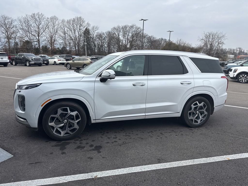 2022 Hyundai Palisade Calligraphy Hyper White Calligraphy FWD 8-Speed Automatic with SHIFTRONIC V6 12 Speakers, 3.648 Axle Ratio, 3rd row seats: split-bench, 4-Wheel Disc Brakes, ABS brakes, Air Conditioning, Alloy wheels, AM/FM radio: SiriusXM, Apple CarPlay & Android Auto, Auto High-beam Headlights, Auto-dimming Rear-View mirror, Auto-leveling suspension, Automatic temperature control, Brake assist, Bumper Applique, Bumpers: body-color, Cargo Block, Cargo Net, Cargo Package, Cargo Tray, Carpeted Floor Mats, Compass, Delay-off headlights, Driver door bin, Driver vanity mirror, Dual front impact airbags, Dual front side impact airbags, Electronic Stability Control, Emergency communication system: Blue Link Connected Car Service (3-year complimentary subscription), First Aid Kit, Four wheel independent suspension, Front anti-roll bar, Front Bucket Seats, Front Center Armrest, Front dual zone A/C, Front reading lights, Fully automatic headlights, Garage door transmitter: HomeLink, harman/kardon® Speakers, Heads-Up Display, Heated & Ventilated Front Bucket Seats, Heated door mirrors, Heated front seats, Heated rear seats, Heated steering wheel, Illuminated entry, Knee airbag, Low tire pressure warning, Memory seat, Mudguards, Navigation System, Occupant sensing airbag, Option Group 01, Outside temperature display, Overhead airbag, Overhead console, Panic alarm, Passenger door bin, Passenger vanity mirror, Power door mirrors, Power driver seat, Power Liftgate, Power moonroof, Power passenger seat, Power steering, Power windows, Premium Nappa Leather Seat Trim, Radio data system, Radio: AM/FM/MP3 Premium Audio System, Rain sensing wipers, Rear air conditioning, Rear anti-roll bar, Rear audio controls, Rear reading lights, Rear window defroster, Rear window wiper, Reclining 3rd row seat, Remote keyless entry, Security system, Speed control, Speed-sensing steering, Split folding rear seat, Spoiler, Steering wheel mounted audio controls, Tachometer, Telescoping steering wheel, Tilt steering wheel, Tow Hitch, Traction control, Trip computer, Turn signal indicator mirrors, Variably intermittent wipers, Ventilated front seats, Ventilated rear seats, Wheel Locks, Wheels: 20" x 7.5J Calligraphy Exclusive Alloy.