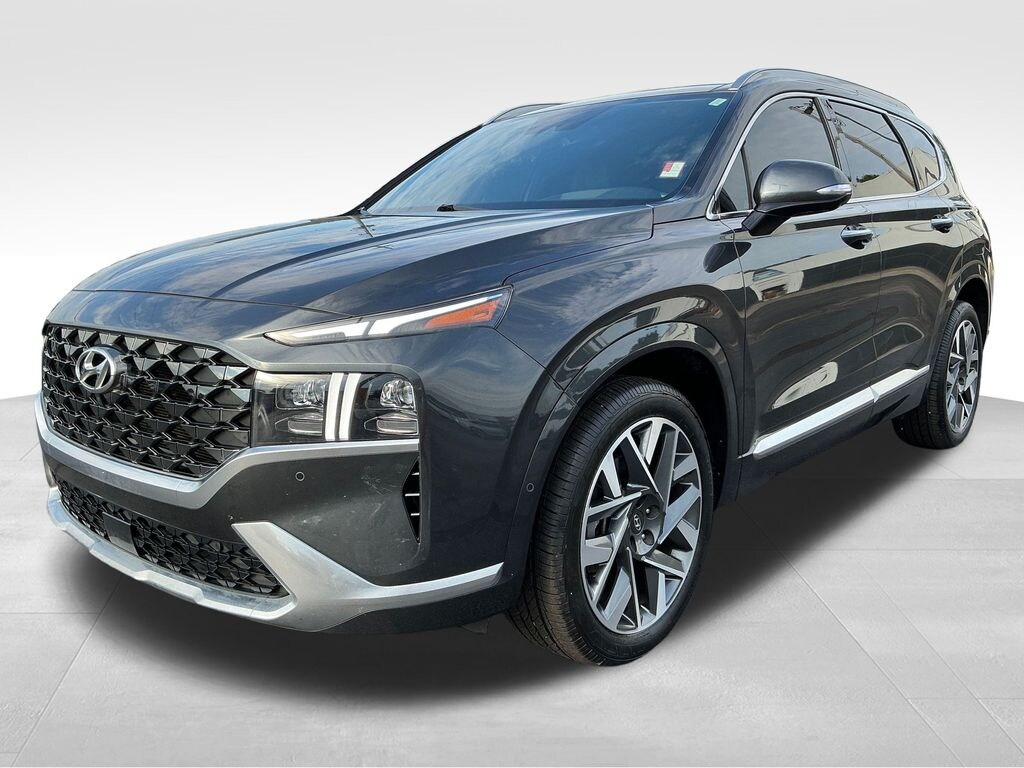 2022 Hyundai Santa Fe Calligraphy Portofino Gray Calligraphy FWD Shiftronic 2.5L I4 Black Leather, 12 Speakers, 4-Wheel Disc Brakes, ABS brakes, Air Conditioning, Alloy wheels, AM/FM radio: SiriusXM, Apple CarPlay & Android Auto, Auto High-beam Headlights, Auto-dimming Rear-View mirror, Automatic temperature control, Axle Ratio: 3.316, Brake assist, Bumpers: body-color, Carpeted Floor Mats, Delay-off headlights, Driver door bin, Driver vanity mirror, Dual front impact airbags, Dual front side impact airbags, Electronic Stability Control, Emergency communication system, Four wheel independent suspension, Front anti-roll bar, Front Bucket Seats, Front Center Armrest, Front dual zone A/C, Front reading lights, Fully automatic headlights, Garage door transmitter: HomeLink, harman/kardon® Speakers, Heads-Up Display, Heated & Ventilated Front Bucket Seats, Heated door mirrors, Heated front seats, Heated rear seats, Heated steering wheel, Illuminated entry, Leather steering wheel, Low tire pressure warning, Memory seat, Navigation System, Occupant sensing airbag, Option Group 01, Outside temperature display, Overhead airbag, Overhead console, Panic alarm, Passenger door bin, Passenger vanity mirror, Power door mirrors, Power driver seat, Power Liftgate, Power moonroof, Power passenger seat, Power steering, Power windows, Quilted Premium Nappa Leather Seat Trim, Radio: AM/FM Harman Kardon Display Audio, Rain sensing wipers, Rear anti-roll bar, Rear seat center armrest, Rear window defroster, Rear window wiper, Remote keyless entry, Security system, Speed control, Speed-sensing steering, Split folding rear seat, Spoiler, Steering wheel mounted audio controls, Tachometer, Telescoping steering wheel, Tilt steering wheel, Traction control, Trip computer, Turn signal indicator mirrors, Variably intermittent wipers, Ventilated front seats, Wheels: 20" x 8.0J Alloy, Black Leather.