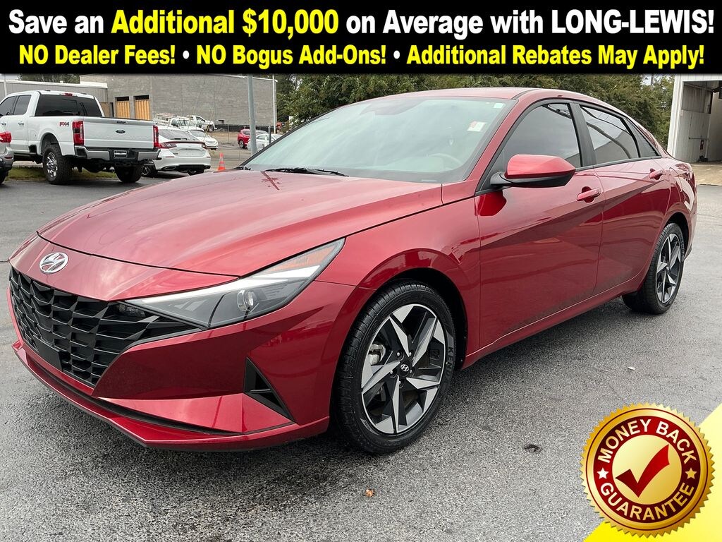 2023 Hyundai Elantra SEL Ultimate Red SEL FWD CVT I4 16" x 6.5J Alloy Wheels, 2nd Row USB Charge Port, 4-Wheel Disc Brakes, 6 Speakers, ABS brakes, Air Conditioning, Alloy wheels, AM/FM radio: SiriusXM, Apple CarPlay & Android Auto, Auto High-beam Headlights, Automatic temperature control, Brake assist, Bumpers: body-color, Cargo Net, Carpeted Floor Mats, Cloth Seat Trim, Convenience Package, Delay-off headlights, Driver door bin, Driver vanity mirror, Dual front impact airbags, Dual front side impact airbags, Electronic Parking Brake, Electronic Stability Control, Emergency communication system: Blue Link Connected Car Service (3-year complimentary subscription), Exterior Parking Camera Rear, First Aid Kit, Forward Collision Avoidance Assist, Front anti-roll bar, Front Bucket Seats, Front Center Armrest, Front dual zone A/C, Front reading lights, Front wheel independent suspension, Full 10.25" LCD TFT Cluster, Fully automatic headlights, Heated Front Seats, Heated Outside Mirrors, Illuminated entry, Leather-Wrapped Steering Wheel, LED Interior Lights, Low tire pressure warning, Occupant sensing airbag, Option Group 02, Outside temperature display, Overhead airbag, Overhead console, Panic alarm, Passenger door bin, Passenger vanity mirror, Power door mirrors, Power steering, Power windows, Radio: AM/FM/HD/SiriusXM Audio System, Radio: AM/FM/HD/SiriusXM Display Audio, Rear window defroster, Remote keyless entry, Reversible Cargo Tray, Security system, Smart Cruise Control w/Stop & Go, Speed control, Speed-sensing steering, Steering wheel mounted audio controls, Tachometer, Telescoping steering wheel, Tilt steering wheel, Traction control, Trip computer, Variably intermittent wipers, Wheels: 17" x 7.0J Machine Finish Alloy, Wireless Charging Pad.