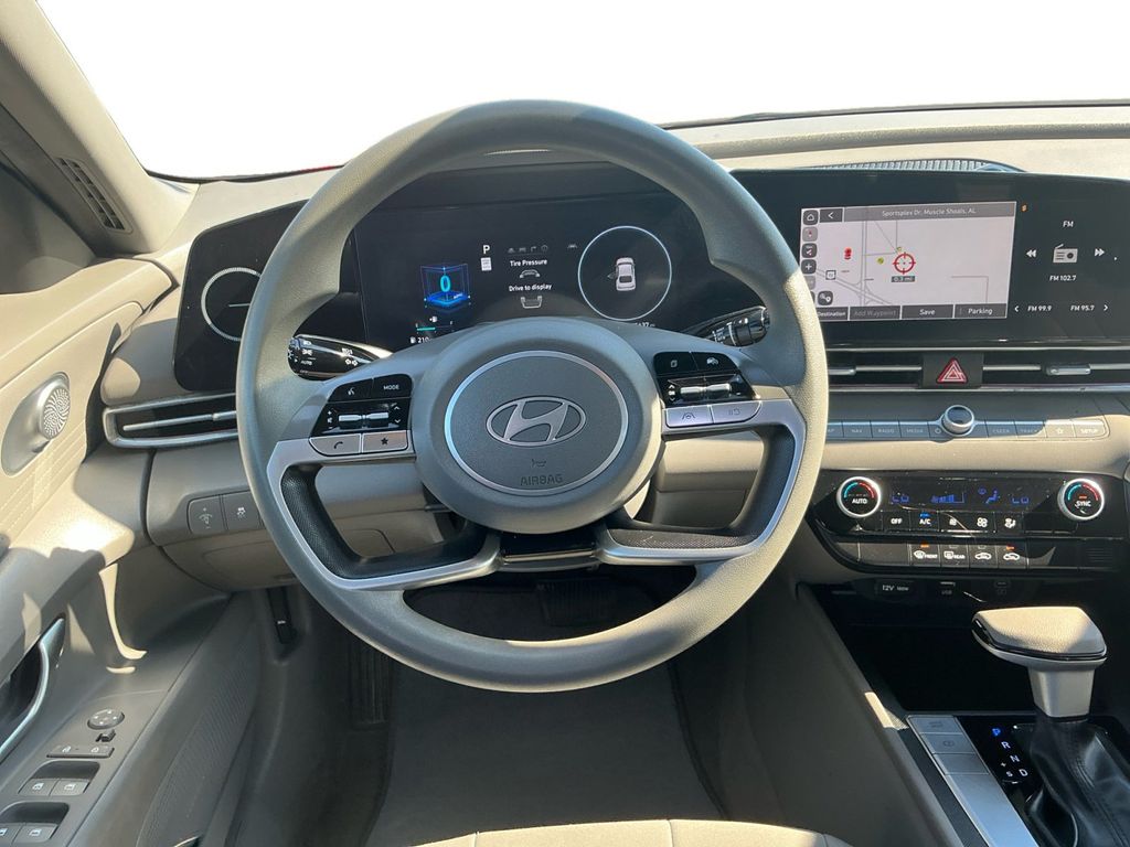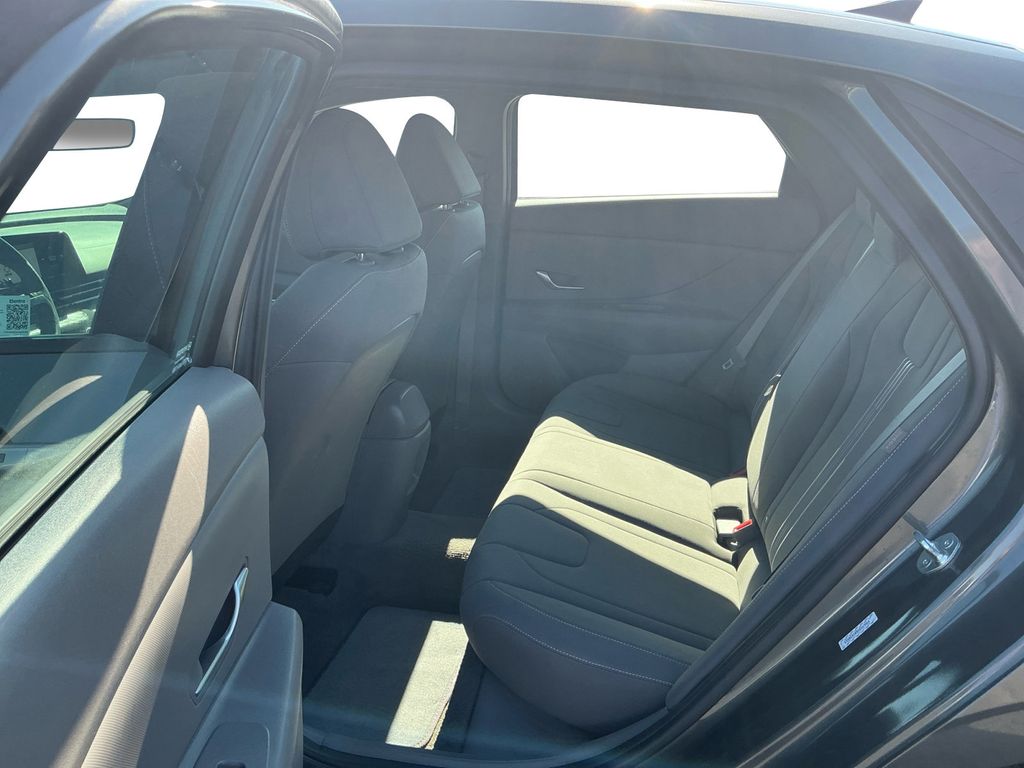 2024 Hyundai Elantra SEL Amazon Gray SEL FWD CVT I4 16" x 6.5J Alloy Wheels, 4-Wheel Disc Brakes, 6 Speakers, ABS brakes, Air Conditioning, Alloy wheels, AM/FM radio: SiriusXM, Apple CarPlay & Android Auto, Auto High-beam Headlights, Automatic temperature control, Brake assist, Bumpers: body-color, Cloth Seat Trim, Delay-off headlights, Driver door bin, Driver vanity mirror, Dual front impact airbags, Dual front side impact airbags, Electronic Stability Control, Emergency communication system: Bluelink+, Exterior Parking Camera Rear, Front anti-roll bar, Front Bucket Seats, Front Center Armrest, Front dual zone A/C, Front reading lights, Front wheel independent suspension, Fully automatic headlights, Illuminated entry, Low tire pressure warning, Navigation System, Occupant sensing airbag, Option Group 01, Outside temperature display, Overhead airbag, Overhead console, Panic alarm, Passenger door bin, Passenger vanity mirror, Power door mirrors, Power steering, Power windows, Radio: AM/FM/HD/SiriusXM Display Audio, Rear side impact airbag, Rear window defroster, Remote keyless entry, Security system, Speed control, Speed-sensing steering, Steering wheel mounted audio controls, Tachometer, Telescoping steering wheel, Tilt steering wheel, Traction control, Trip computer, Variably intermittent wipers.
