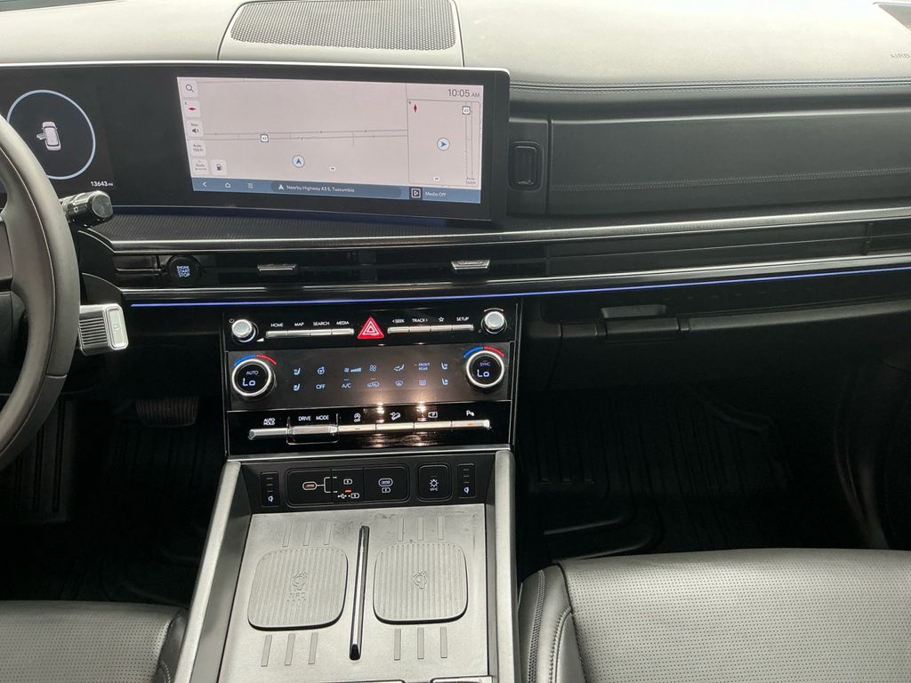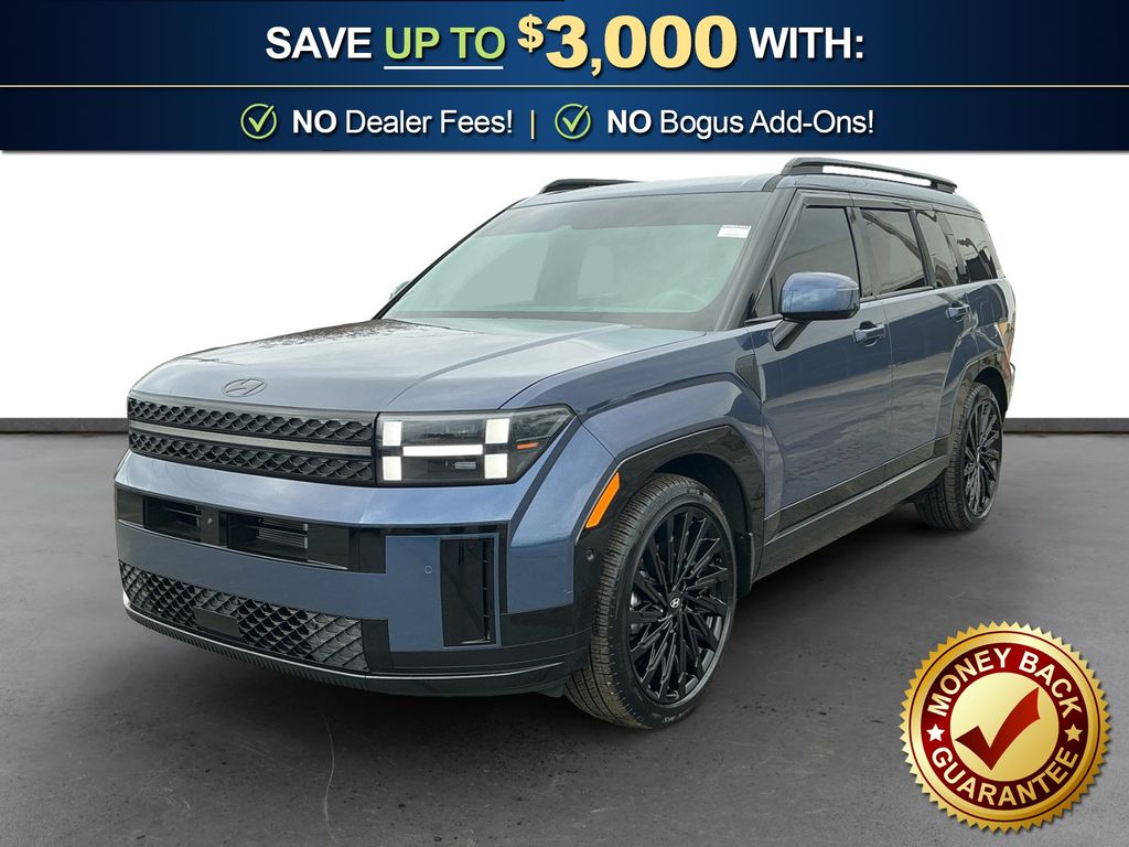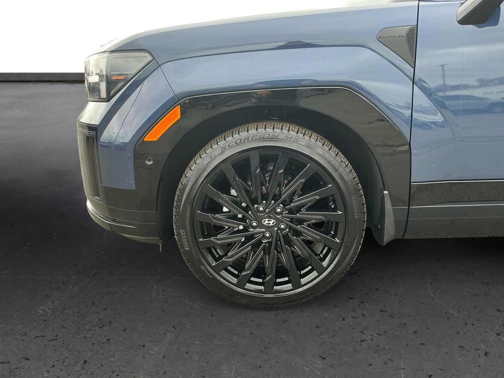 2025 Hyundai Santa Fe Calligraphy Atlantis Blue Calligraphy FWD Shiftronic 2.5L I4 Black Leather, 12 Speakers, 3rd row seats: bench, 4-Wheel Disc Brakes, ABS brakes, Air Conditioning, Alloy wheels, AM/FM radio: SiriusXM, Apple CarPlay & Android Auto, Auto High-beam Headlights, Auto-dimming Rear-View mirror, Automatic temperature control, Brake assist, Bumpers: body-color, Cargo Cover, Cargo Net, Carpeted Floor Mats, Delay-off headlights, Driver door bin, Driver vanity mirror, Dual front impact airbags, Dual front side impact airbags, Electronic Stability Control, Emergency communication system, Exterior Parking Camera Rear, First Aid Kit, Four wheel independent suspension, Front anti-roll bar, Front Bucket Seats, Front Center Armrest, Front dual zone A/C, Front reading lights, Fully automatic headlights, Garage door transmitter: HomeLink, Heads-Up Display, Heated & Ventilated Front Bucket Seats, Heated door mirrors, Heated front seats, Heated rear seats, Heated steering wheel, Illuminated entry, Knee airbag, Leather steering wheel, Low tire pressure warning, Memory seat, Mudguards, Navigation System, Occupant sensing airbag, Option Group 01, Outside temperature display, Overhead airbag, Overhead console, Panic alarm, Passenger door bin, Passenger vanity mirror, Power door mirrors, Power driver seat, Power Liftgate, Power moonroof, Power passenger seat, Power steering, Power windows, Premium Nappa Leather Seat Trim, Radio: AM/FM/HD Bose Premium Audio System, Rain sensing wipers, Rear anti-roll bar, Rear side impact airbag, Rear window defroster, Rear window wiper, Remote keyless entry, Roadside Assistance Kit, Security system, Speed control, Speed-sensing steering, Split folding rear seat, Spoiler, Steering wheel mounted audio controls, Tachometer, Telescoping steering wheel, Tilt steering wheel, Traction control, Trip computer, Turn signal indicator mirrors, Variably intermittent wipers, Ventilated front seats, Wheels: 21" x 8.5J Unique Dark Finish Alloy, Black Leather.