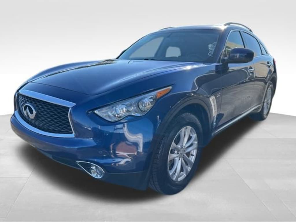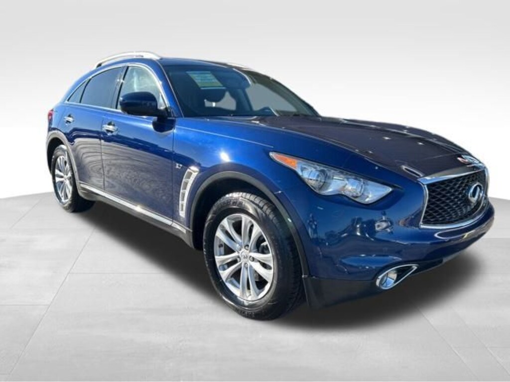 2017 INFINITI QX70 Base Iridium Blue RWD 7-Speed Automatic 3.7L V6 11 Speakers, 3.357 Axle Ratio, 4-Wheel Disc Brakes, ABS brakes, Activation Disclaimer, Air Conditioning, Alloy wheels, Aluminum Roof Rails, AM/FM radio: SiriusXM, Anti-whiplash front head restraints, Around View Monitor w/Front & Rear Sonar System, Auto-dimming Rear-View mirror, Automatic temperature control, Block heater, Bodyside moldings, Brake assist, Bumpers: body-color, CD player, Compass, Delay-off headlights, Driver door bin, Driver vanity mirror, Dual front impact airbags, Dual front side impact airbags, Dual Occupant Memory System, Electronic Stability Control, Entry & Exit Assist System, Four wheel independent suspension, Front anti-roll bar, Front Bucket Seats, Front Center Armrest w/Storage, Front dual zone A/C, Front fog lights, Front reading lights, Fully automatic headlights, Garage door transmitter: HomeLink, Heated door mirrors, Heated Front Bucket Seats, Heated front seats, High intensity discharge headlights: Bi-Xenon, Illuminated entry, Leather Shift Knob, Leather steering wheel, Leather-Appointed Seat Trim, Literature Kit, Low tire pressure warning, Occupant sensing airbag, Outside Mirrors w/Reverse Tilt-Down Feature, Outside temperature display, Overhead airbag, Overhead console, Panic alarm, Passenger door bin, Passenger vanity mirror, Power door mirrors, Power driver seat, Power Liftgate, Power moonroof, Power passenger seat, Power steering, Power Tilt/Telescopic Steering Column, Power windows, Premium Package, Radio data system, Radio: AM/FM/CD/MP3 Playback Capability, Radio: INFINITI Navigation System, Rear anti-roll bar, Rear reading lights, Rear seat center armrest, Rear window defroster, Rear window wiper, Remote keyless entry, Security system, Speed control, Speed-sensing steering, Speed-Sensitive Wipers, Split folding rear seat, Spoiler, Stainless Steel Rear Bumper Protector (B94), Steering wheel mounted audio controls, Tachometer, Telescoping steering wheel, Tilt steering wheel, Traction control, Trip computer, Variably intermittent wipers, Wheels: 18" x 8.0" Split 5-Spoke Aluminum Alloy.