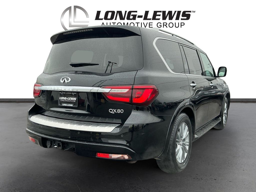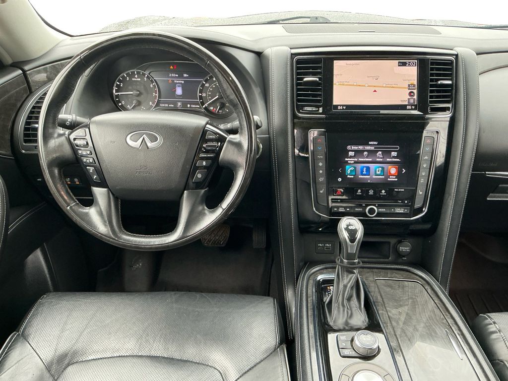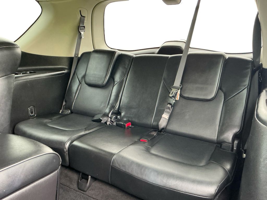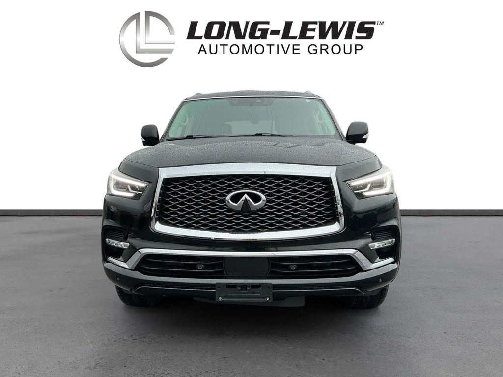 2021 INFINITI QX80 LUXE Black Obsidian LUXE RWD 7-Speed Automatic 5.6L V8 13 Speakers, 2.937 Axle Ratio, 3rd row seats: split-bench, 4-Wheel Disc Brakes, ABS brakes, Air Conditioning, Alloy wheels, AM/FM radio: SiriusXM, Anti-whiplash front head restraints, Apple CarPlay/Android Auto, Auto High-beam Headlights, Auto tilt-away steering wheel, Auto-dimming door mirrors, Auto-dimming Rear-View mirror, Auto-leveling suspension, Automatic temperature control, Brake assist, Bumpers: body-color, CD player, Compass, Delay-off headlights, Driver door bin, Driver vanity mirror, Dual front impact airbags, Dual front side impact airbags, DVD-Audio, Electronic Stability Control, Emergency communication system: INFINITI Connection, Four wheel independent suspension, Front anti-roll bar, Front Bucket Seats, Front Center Armrest, Front dual zone A/C, Front fog lights, Front reading lights, Fully automatic headlights, Garage door transmitter: HomeLink, Heated door mirrors, Heated Front Bucket Seats, Heated front seats, Heated steering wheel, Illuminated entry, Leather Shift Knob, Leather steering wheel, Leather-Appointed Seats, Literature Kit, Low tire pressure warning, Memory seat, Navigation system: INFINITI InTouch Navigation, Occupant sensing airbag, Outside temperature display, Overhead airbag, Overhead console, Panic alarm, Passenger door bin, Passenger vanity mirror, Power door mirrors, Power driver seat, Power Liftgate, Power moonroof, Power passenger seat, Power steering, Power windows, Radio data system, Radio: Bose Audio System w/13 Speakers, Rain sensing wipers, Rear air conditioning, Rear anti-roll bar, Rear audio controls, Rear reading lights, Rear seat center armrest, Rear window defroster, Rear window wiper, Reclining 3rd row seat, Remote keyless entry, Security system, Speed control, Speed-sensing steering, Split folding rear seat, Spoiler, Steering wheel memory, Steering wheel mounted audio controls, Tachometer, Telescoping steering wheel, Tilt steering wheel, Traction control, Trip computer, Turn signal indicator mirrors, Variably intermittent wipers, Voltmeter, Wheels: 20" x 8.0" Aluminum-Alloy.