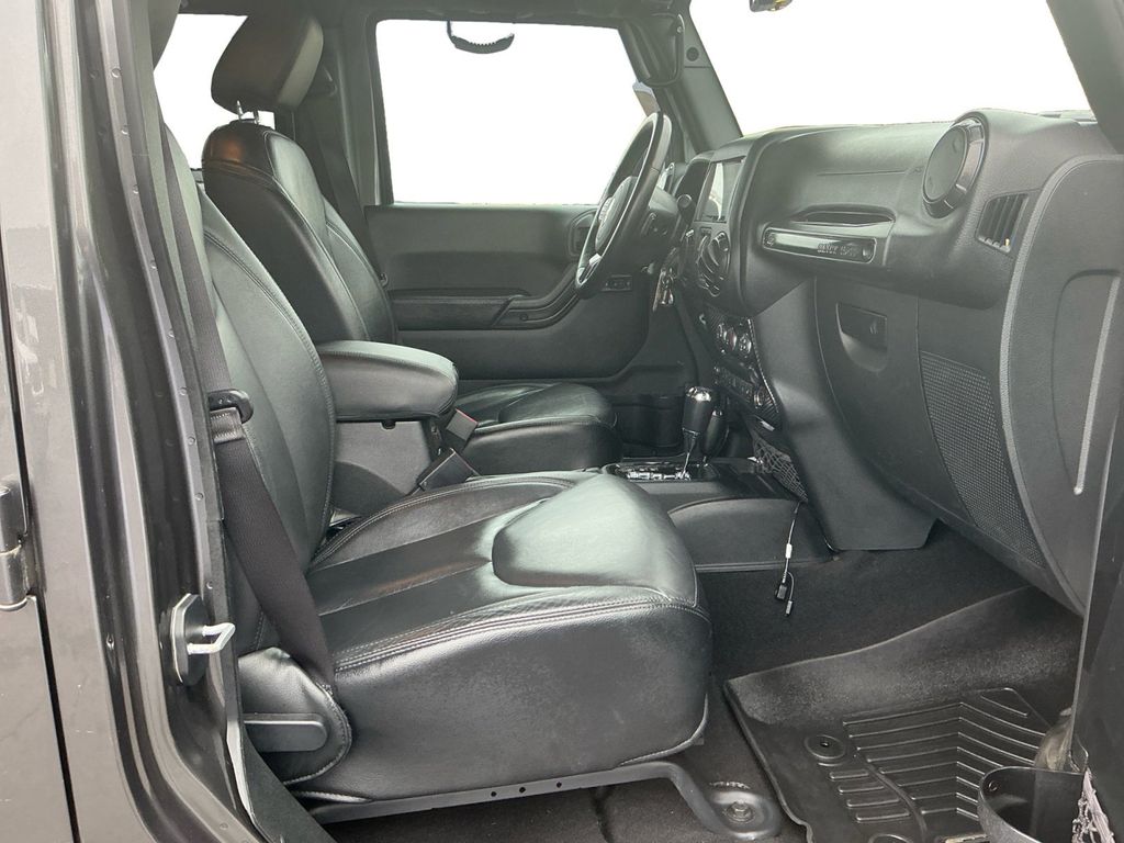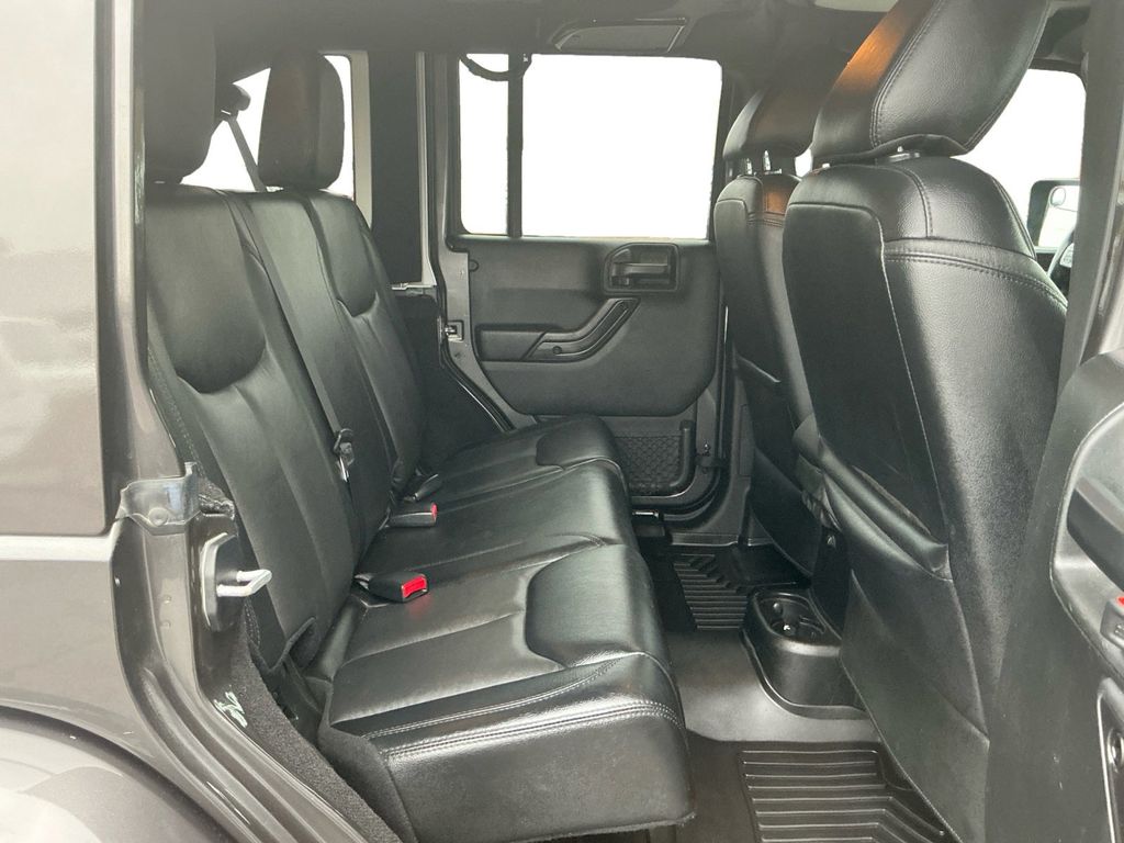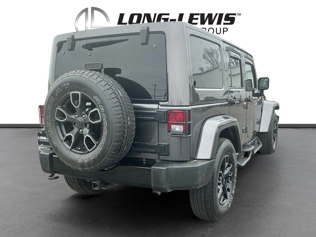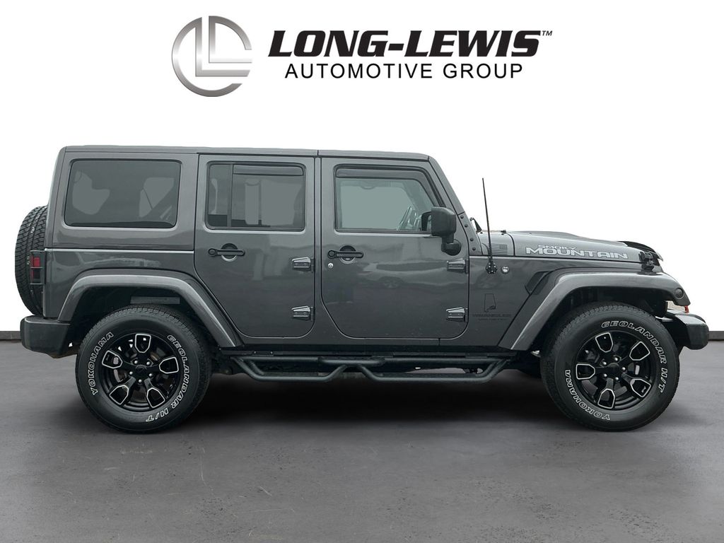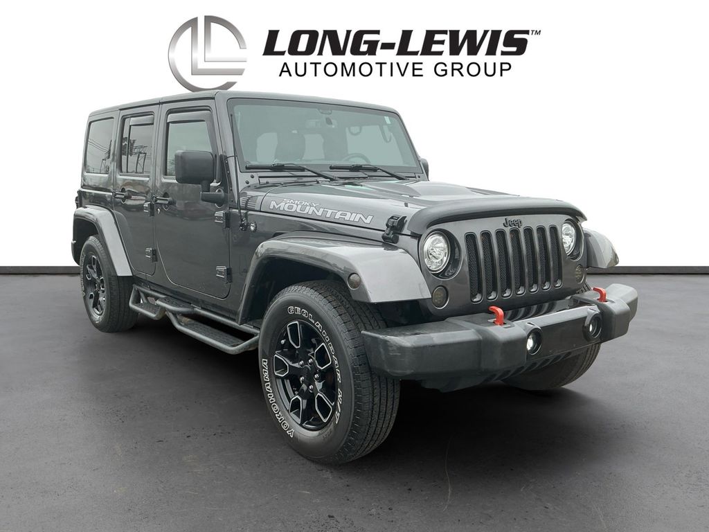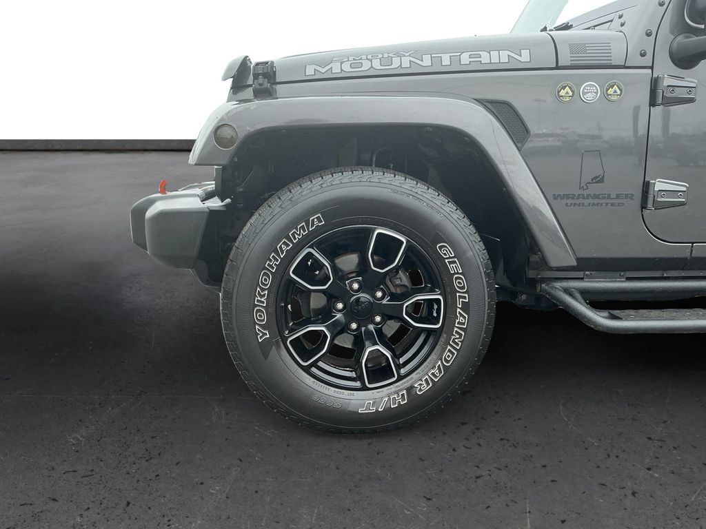 2017 Jeep Wrangler Unlimited Sahara Granite Crystal Metallic Clearcoat Unlimited Sahara 4WD 5-Speed Automatic 3.6L V6 24V VVT 18" x 7.5" Polished Satin Carbon Wheels, 3.21 Rear Axle Ratio, 4-Wheel Disc Brakes, 40GB Hard Drive w/28GB Available, 5-Year SiriusXM Travel Link Service, 6.5" Touchscreen Display, 8 Speakers, ABS brakes, Air Conditioning, Alloy wheels, AM/FM radio: SiriusXM, Audio Jack Input for Mobile Devices, Auto-dimming Rear-View mirror, Black 3-Piece Hard Top, Black Accent Stitching, Black Fuel Filler Door, Body Color 3-Piece Hard Top, Body Color Grille w/Black Accents, Brake assist, CD player, Cloth Seats w/Adjustable Head Restraints, Compass, Connectivity Group, Delete Sahara Badge, Delete Sunrider Soft Top, Driver door bin, Driver vanity mirror, Dual front impact airbags, Dual Top Group, Electronic Stability Control, Freedom Panel Storage Bag, Front anti-roll bar, Front Bucket Seats, Front Center Armrest w/Storage, Front fog lights, Front reading lights, Fully automatic headlights, Gloss Black Fascia Applique, Glossy Black Jeep Badge, GPS Navigation, Heated door mirrors, Heated Front Seats, Heavy Duty Suspension w/Gas Shocks (DISC), Hood w/Power Bulge, Illuminated entry, Integrated roll-over protection, JK Smoky Mountain Hood Decals, Leather steering wheel, Low Gloss Black Wrangler Decal, Low tire pressure warning, Manufacturer's Statement of Origin, Midnight Star Interior Accents, Millennium Fabric Sport Bar Cover, MOPAR Black Tail Lamp Guards, MOPAR Coat Hooks & Grab Handles, MOPAR Slush Mats, Occupant sensing airbag, Outside temperature display, Panic alarm, Passenger door bin, Passenger vanity mirror, Power door mirrors, Power steering, Power windows, Premium Black Sunrider Soft Top, Quick Order Package 24Y Smoky Mountain (DISC), Radio data system, Radio: 130, Radio: 430 Nav, Rear anti-roll bar, Rear Window Defroster, Rear Window Wiper/Washer, Remote keyless entry, Remote USB Port, Security system, SiriusXM Travel Link, Smoky Mountain Edition, Speed control, Split folding rear seat, Steering wheel mounted audio controls, Tachometer, Tilt steering wheel, Tire Pressure Monitoring Display, Traction control, Trip computer, Uconnect Voice Command w/Bluetooth, Variably intermittent wipers, Vehicle Information Center, Wheels: 18" x 7.5" High Gloss Blk Polished (DISC).
