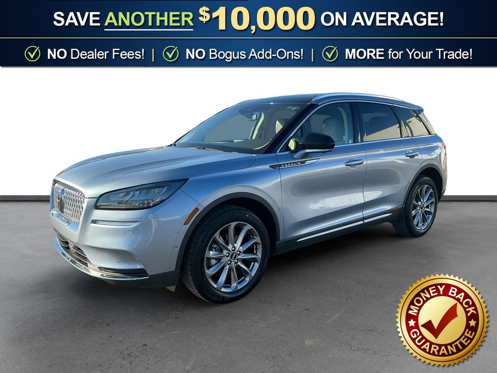 2022 Lincoln Corsair Standard Elite Blue Metallic Clearcoat Standard FWD 8-Speed Automatic 2.0L I4 10 Speakers, 18" Bright Machined Aluminum Wheels, 19" Premium Painted Aluminum Wheels, 3.81 Axle Ratio, 360-Degree Camera w/Front & Rear Camera Washer, 4-Wheel Disc Brakes, 60/40 EasyFold Rear Seat w/Power Seatback Release, ABS brakes, Active Park Assist 2.0, Air Conditioning, All-Weather Floor Liners w/Fr&Rr Carpet Floor Mats, Alloy wheels, AM/FM radio: SiriusXM, Ambient Lighting, Auto High-beam Headlights, Auto-dimming Rear-View mirror, Automatic temperature control, Brake assist, Bumpers: body-color, Compass, Convenience Package, Delay-off headlights, Driver door bin, Driver vanity mirror, Dual front impact airbags, Dual front side impact airbags, Electronic Stability Control, Elements Package, Emergency communication system: 911 Assist, Equipment Group 101A, Evasive Steering Assist (ESA), Four wheel independent suspension, Front anti-roll bar, Front Bucket Seats, Front Center Armrest, Front dual zone A/C, Front reading lights, Front/Side/Rear Parking Sensors, Fully automatic headlights, Heated door mirrors, Heated front seats, Heated Rear Seat, Heated Steering Wheel, Heated/Ventilated Driver & Front Passenger Seats, Illuminated entry, Intelligent Adaptive Cruise Control, Knee airbag, Lincoln Co-Pilot360 1.5 Plus, Lincoln Soft Touch Heated Comfort Seats, Low tire pressure warning, Memory seat, Micro-Perforated Lincoln Soft Touch Seats, Occupant sensing airbag, Outside temperature display, Overhead airbag, Overhead console, Panic alarm, Panoramic Vista Roof w/Power Shade, Passenger door bin, Passenger vanity mirror, Power door mirrors, Power driver seat, Power Liftgate, Power passenger seat, Power steering, Power windows, Premium Leather-Trimmed Comfort Seats, Premium Package, Radio data system, Radio: Lincoln Premium Audio System w/MP3, Rain Sensing Wipers, Rear anti-roll bar, Rear Parking Sensors, Rear reading lights, Rear seat center armrest, Rear window defroster, Rear window wiper, Remote keyless entry, Reverse Brake Assist, Roof rack: rails only, Security system, SiriusXM Radio, Speed control, Speed-sensing steering, Speed-Sensitive Wipers, Split folding rear seat, Spoiler, Steering wheel mounted A/C controls, Steering wheel mounted audio controls, SYNC 3 Communications & Entertainment System, Tachometer, Telescoping steering wheel, Tilt steering wheel, Traction control, Trip computer, Universal Garage Door Opener, Variably intermittent wipers, Ventura Leather-Wrapped Steering Wheel, Voice-Activated Touchscreen Navigation System, Wheels: 18" Warm Painted Alloy, Windshield Wiper De-Icer.