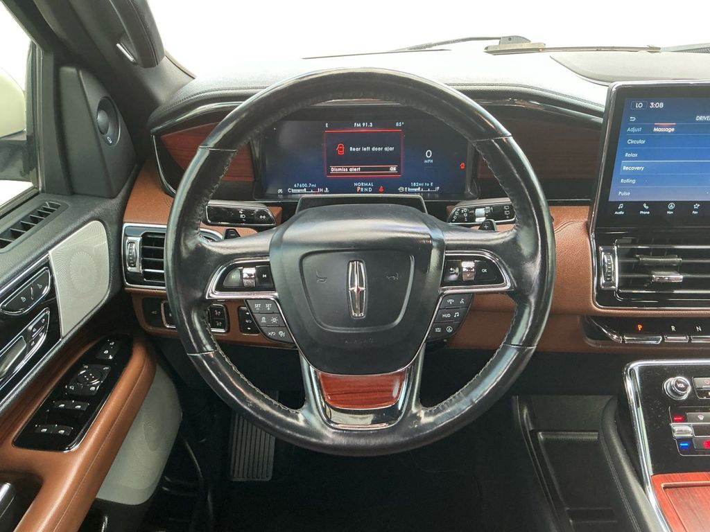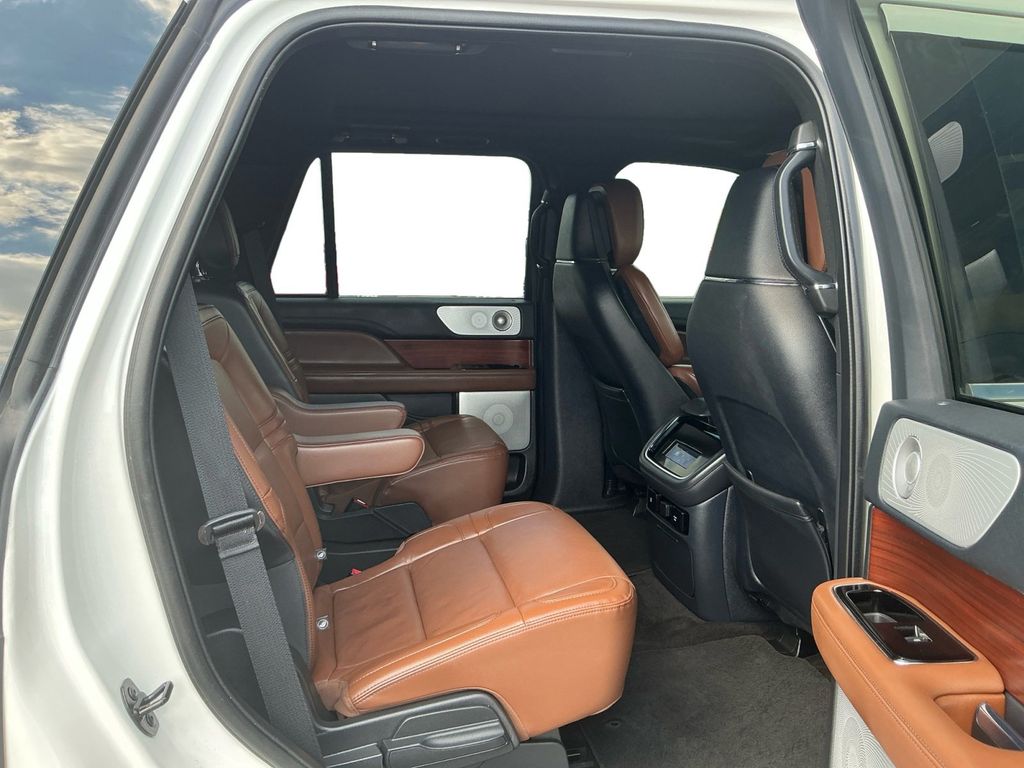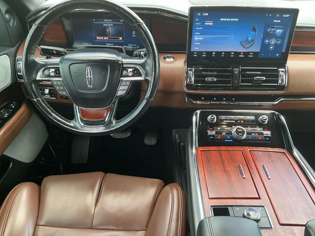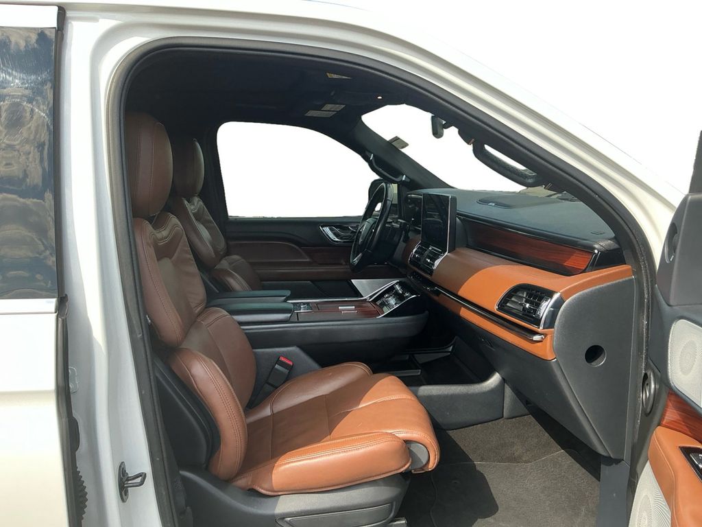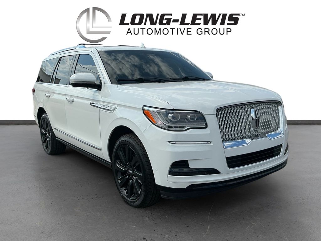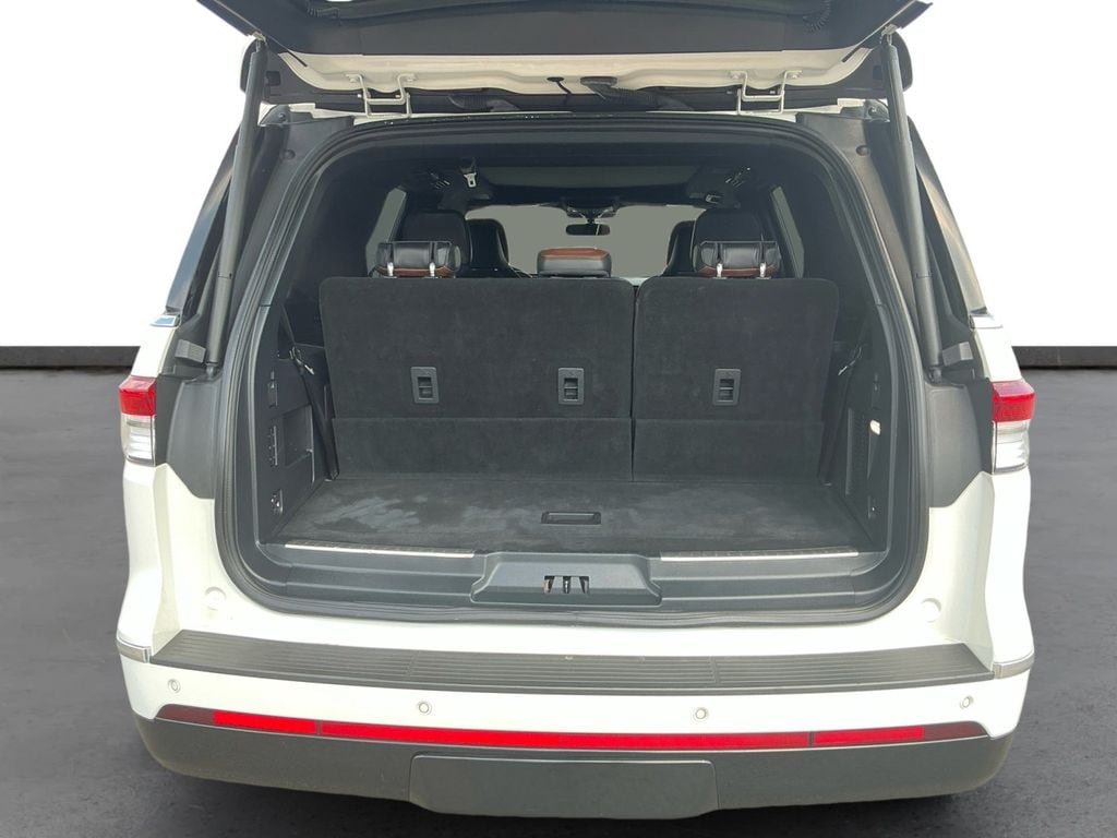 2022 Lincoln Navigator Reserve Pristine White Metallic Tri-Coat Reserve 4WD 10-Speed Automatic V6 4WD, Roast Leather, 14 Speakers, 3.73 Axle Ratio, 3rd row seats: split-bench, 4-Wheel Disc Brakes, ABS brakes, Active Park Assist 2.0 Prep Kit, Adaptive suspension, Adjustable pedals, Air Conditioning, Alloy wheels, AM/FM radio: SiriusXM with 360L, Audio memory, Auto High-beam Headlights, Auto Start-Stop Technology, Auto tilt-away steering wheel, Auto-dimming door mirrors, Auto-dimming Rear-View mirror, Auto-leveling suspension, Automatic temperature control, Body-Color Exterior Mirror Finish, Bodyside moldings, Brake assist, Bumpers: body-color, Chrome Roof Rack w/Black Crossbars, Compass, Delay-off headlights, Driver door bin, Driver vanity mirror, Driver's Seat Mounted Armrest, Dual front impact airbags, Dual front side impact airbags, Electronic Stability Control, Emergency communication system: 911 Assist, Equipment Group 201A Reserve I, Exterior Parking Camera Rear, Four wheel independent suspension, Front anti-roll bar, Front Bucket Seats, Front dual zone A/C, Front fog lights, Front reading lights, Fully automatic headlights, Garage door transmitter, Genuine wood dashboard insert, Genuine wood door panel insert, Hands-Free Liftgate Delete, Head restraints memory, Heads-Up Display, Heated door mirrors, Heated front seats, Heated rear seats, Heated steering wheel, HVAC memory, Illuminated 1st & 2nd Row Seat Belts, Illuminated entry, Leather steering wheel, Lincoln Lit Star in Grille, Low tire pressure warning, Luxury Package, Memory seat, Monochromatic Lincoln Badge, Monochromatic Lincoln Grille, Monochromatic Package, Navigation system: Connected Navigation (3-year trial), Occupant sensing airbag, Outside temperature display, Overhead airbag, Overhead console, Panic alarm, Passenger door bin, Passenger seat mounted armrest, Passenger vanity mirror, Pedal memory, Perfect Position Seats (30-Way) w/Active Motion, Power adjustable rear head restraints, Power door mirrors, Power driver seat, Power Liftgate, Power moonroof: Panoramic Vista Roof, Power passenger seat, Power steering, Power windows, Prem Lthr Auto Htd/Ventiltd Perfect Position Seats, Radio data system, Radio: Revel AM/FM/HD/MP3 Audio System, Rain sensing wipers, Rear air conditioning, Rear anti-roll bar, Rear audio controls, Rear reading lights, Rear window defroster, Rear window wiper, Reclining 3rd row seat, Remote keyless entry, Revel Ultima 3D Audio System w/28 Speakers, Security system, SiriusXM w/360L, Speed control, Speed-sensing steering, Speed-Sensitive Wipers, Split folding rear seat, Spoiler, Steering wheel memory, Steering wheel mounted audio controls, SYNC 4 Communications & Entertainment System, Tachometer, Telescoping steering wheel, Tilt steering wheel, Traction control, Trip computer, Turn signal indicator mirrors, Variably intermittent wipers, Ventilated front seats, Ventilated rear seats, Voice-Activated Touchscreen Navigation System, Wheels: 22" Black Aluminum, Wheels: 22" Bright Machined Aluminum, 4WD, Roast Leather.