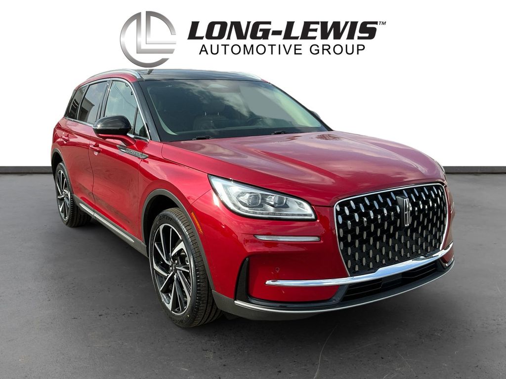 2023 Lincoln Corsair Reserve Certified. Red Carpet Metallic Tinted Clearcoat Reserve FWD 8-Speed Automatic 2.0L Turbocharged Lincoln Certified, 10 Speakers, 19" Bright Machined Aluminum Wheels, 3.81 Axle Ratio, 360-Degree Camera, 4-Wheel Disc Brakes, 60/40 EasyFold Rear Seat w/Power Seatback Release, ABS brakes, Air Conditioning, Alloy wheels, AM/FM radio: SiriusXM, Auto High-beam Headlights, Auto-dimming Rear-View mirror, Automatic temperature control, Brake assist, Bumpers: body-color, Compass, Delay-off headlights, Driver door bin, Driver vanity mirror, Dual front impact airbags, Dual front side impact airbags, Electronic Stability Control, Emergency communication system: SYNC 4 911 Assist, Equipment Group 201A, Four wheel independent suspension, Frameless Auto Dimming Rearview Mirror, Front anti-roll bar, Front Bucket Seats, Front Center Armrest, Front dual zone A/C, Front reading lights, Front/Side/Rear Parking Sensors, Fully automatic headlights, Hands-Free Liftgate, Heated door mirrors, Heated front seats, Heated Sideview Mirrors, Heated Steering Wheel, Heated/Ventilated Driver & Front Passenger Seats, Illuminated entry, Knee airbag, Leather steering wheel, Lincoln Premium Audio System Subwoofer Delete, Low tire pressure warning, Memory seat, Navigation system: Connected Navigation (3-year trial), Occupant sensing airbag, Outside temperature display, Overhead airbag, Overhead console, Panic alarm, Panoramic Vista Roof w/Power Shade, Passenger door bin, Passenger vanity mirror, Phone As A Key (PAAK), Power door mirrors, Power driver seat, Power Liftgate, Power passenger seat, Power steering, Power Tilt/Telescoping Steering Column w/Memory, Power windows, Premium Leather Heated Comfort Seats, Radio data system, Radio: Lincoln Premium Audio System w/MP3, Rain Sensing Wipers, Rear anti-roll bar, Rear Parking Sensors, Rear reading lights, Rear seat center armrest, Rear window defroster, Rear window wiper, Remote keyless entry, Reverse Brake Assist, Roof rack: rails only, Security system, SiriusXM Radio, Speed control, Speed-sensing steering, Speed-Sensitive Wipers, Split folding rear seat, Spoiler, Steering wheel mounted A/C controls, Steering wheel mounted audio controls, SYNC 4 Communications & Entertainment System, Tachometer, Telescoping steering wheel, Tilt steering wheel, Traction control, Trip computer, Universal Garage Door Opener, Variably intermittent wipers, Wheels: 20" Bright Machined Aluminum, Windshield Wiper De-Icer, Wireless Charging Pad.