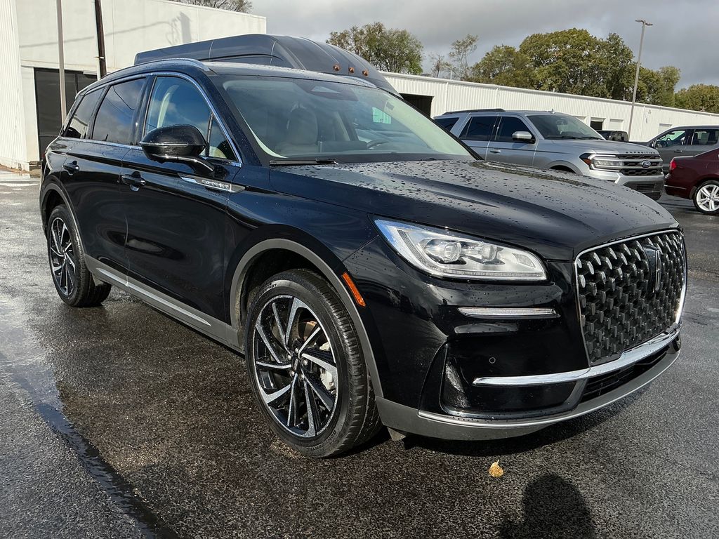 2024 Lincoln Corsair Reserve Certified. Infinite Black Metallic Clearcoat Reserve FWD 8-Speed Automatic 2.0L I4 Lincoln Certified, 19" Bright Machined Aluminum Wheels, 2 Additional USB Ports in Rear of Center Console, 3.81 Axle Ratio, 360-Degree Camera, 4-Wheel Disc Brakes, 60/40 EasyFold Rear Seat w/Power Seatback Release, 9 Speakers, ABS brakes, Air Conditioning, Alexa Built-In, Alloy wheels, AM/FM radio: SiriusXM, Apple CarPlay/Android Auto, Auto High-beam Headlights, Auto-dimming Rear-View mirror, Automatic temperature control, Brake assist, Bumpers: body-color, Compass, Delay-off headlights, Driver door bin, Driver vanity mirror, Dual front impact airbags, Dual front side impact airbags, Electronic Stability Control, Emergency communication system: 911 Assist, Equipment Group 201A, Four wheel independent suspension, Frameless Auto Dimming Rearview Mirror, Front anti-roll bar, Front Bucket Seats, Front Center Armrest, Front dual zone A/C, Front reading lights, Front/Side/Rear Parking Sensors, Fully automatic headlights, Hands-Free Liftgate, Heated door mirrors, Heated front seats, Heated Sideview Mirrors, Heated Steering Wheel, Heated/Ventilated Driver & Front Passenger Seats, Illuminated entry, Knee airbag, Lane Departure Warning System, Leather steering wheel, Low tire pressure warning, Memory seat, Navigation system: Connected Navigation (3-year trial), Occupant sensing airbag, Outside temperature display, Overhead airbag, Overhead console, Panic alarm, Passenger door bin, Passenger vanity mirror, Phone As A Key (PAAK), Power door mirrors, Power driver seat, Power Liftgate, Power passenger seat, Power steering, Power Tilt/Telescoping Steering Column w/Memory, Power windows, Premium Leather-Trimmed Heated Captain's Chairs, Radio data system, Radio: Lincoln Premium Audio System w/MP3, Rain Sensing Wipers, Rear anti-roll bar, Rear Parking Sensors, Rear reading lights, Rear seat center armrest, Rear window defroster, Rear window wiper, Remote keyless entry, Reverse Brake Assist, Roof rack: rails only, Security system, SiriusXM Radio, Speed control, Speed-sensing steering, Speed-Sensitive Wipers, Split folding rear seat, Spoiler, Steering wheel mounted A/C controls, Steering wheel mounted audio controls, SYNC 4 Communications & Entertainment System, Tachometer, Telescoping steering wheel, Tilt steering wheel, Traction control, Trip computer, Universal Garage Door Opener, Variably intermittent wipers, Wheels: 20" Bright Machined Aluminum, Windshield Wiper De-Icer, Wireless Charging Pad.